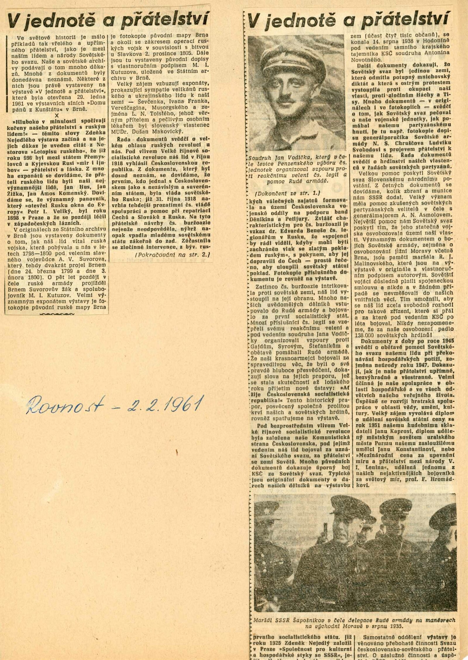 pozvánka, scénář výstavy (Čestmír Amort, Jozef Hrozienčik), seznam vystavených předmětů, fotografie (z vernisáže, z výstavy v Bratislavě), provozní korespondence, rozpočet, recenze v tisku