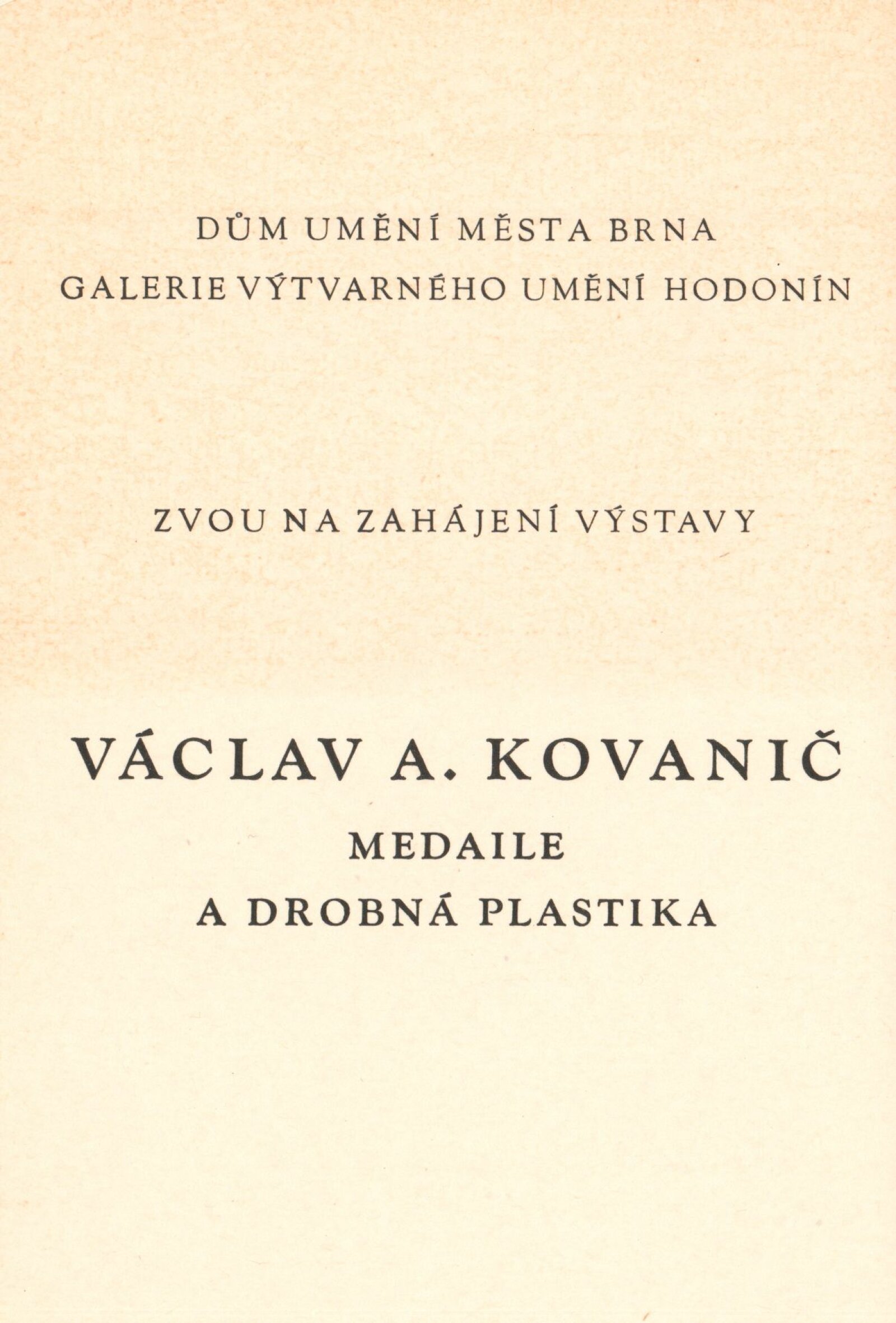 pozvánka, katalog, seznam prací s pojistnými cenami, provozní korespondence, smlouva o zápůjčce, žádost o povolení výstavy, reverzy, recenze v tisku, pozvánka GVU Hodonín, katalog Kabinetu umění Brno