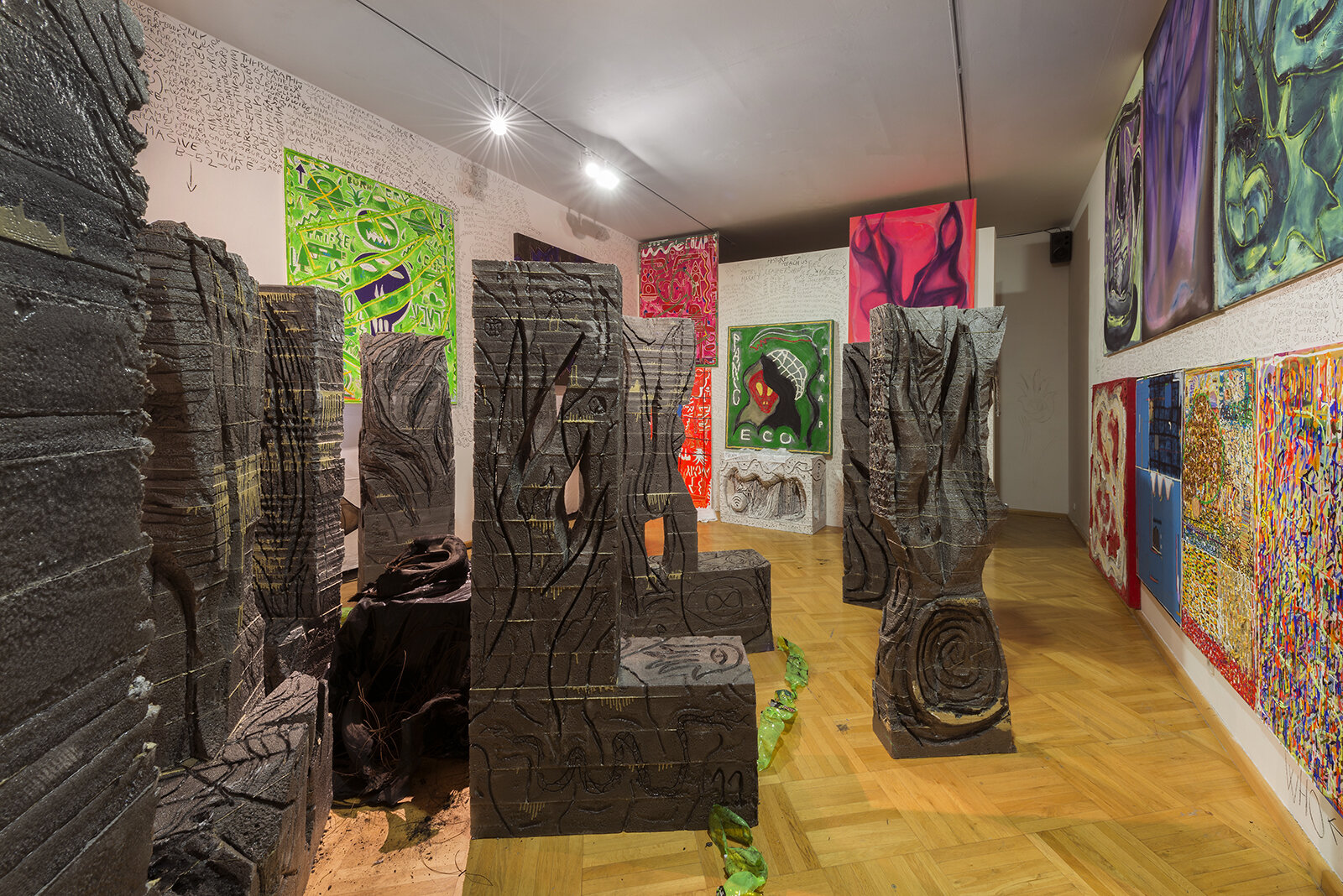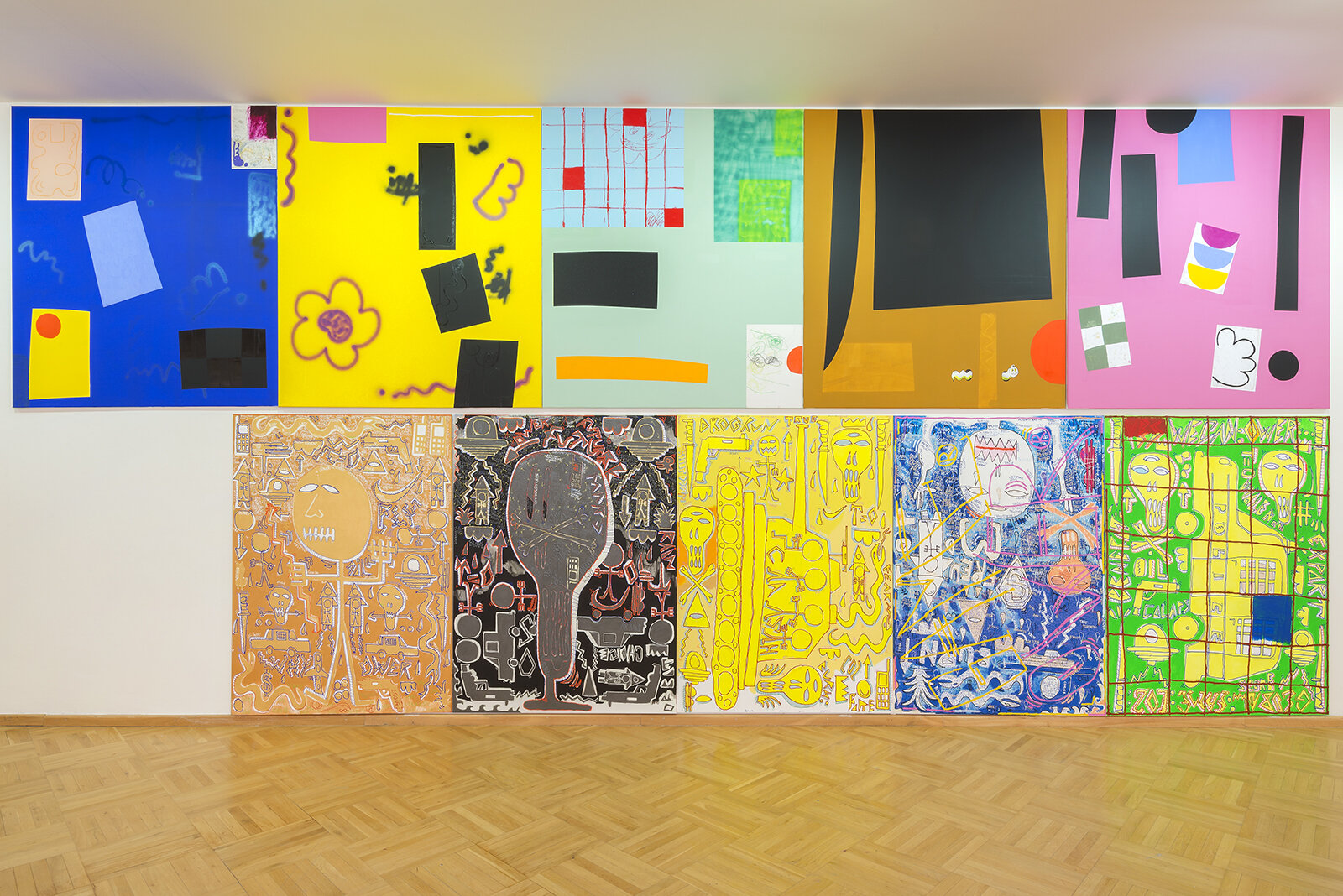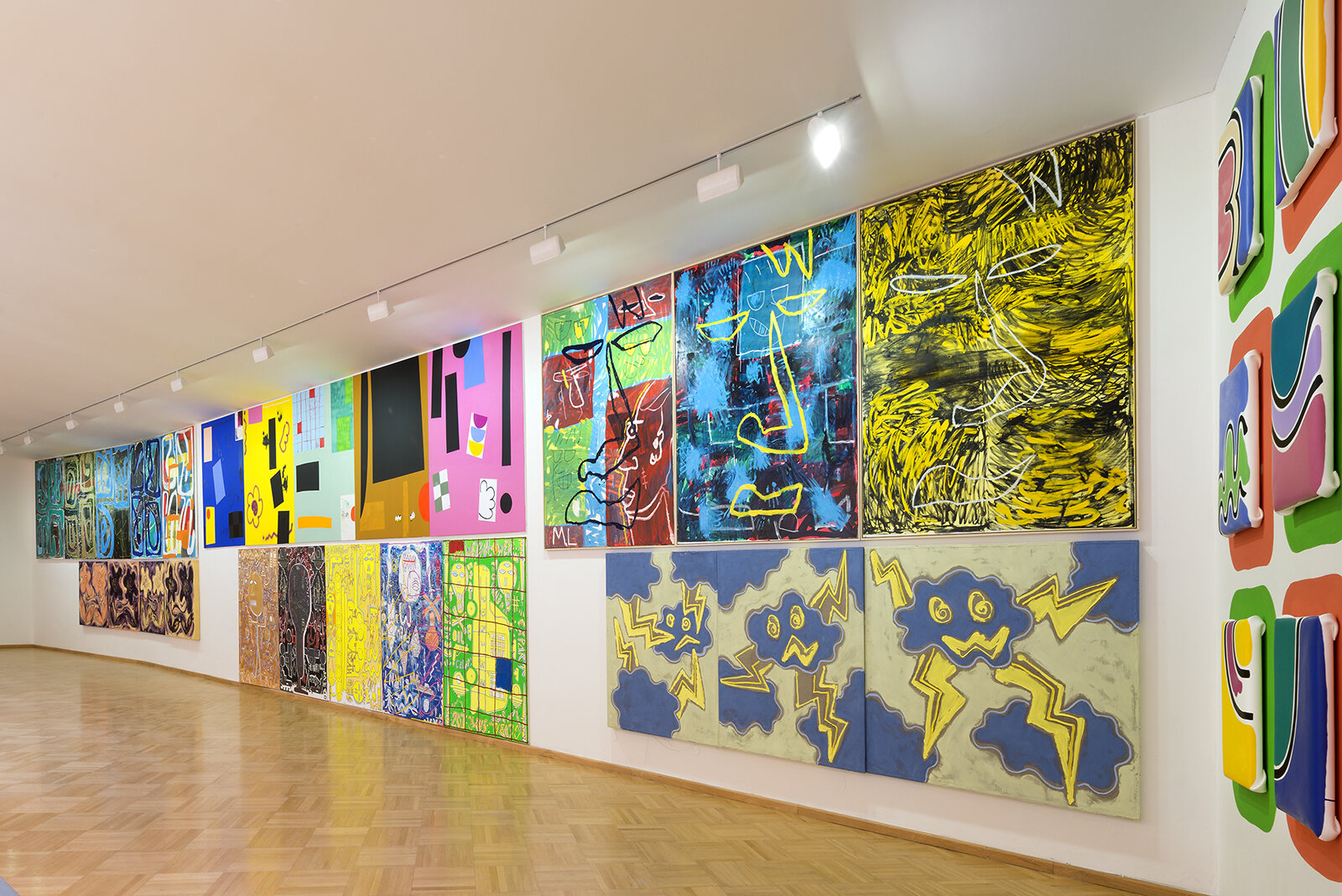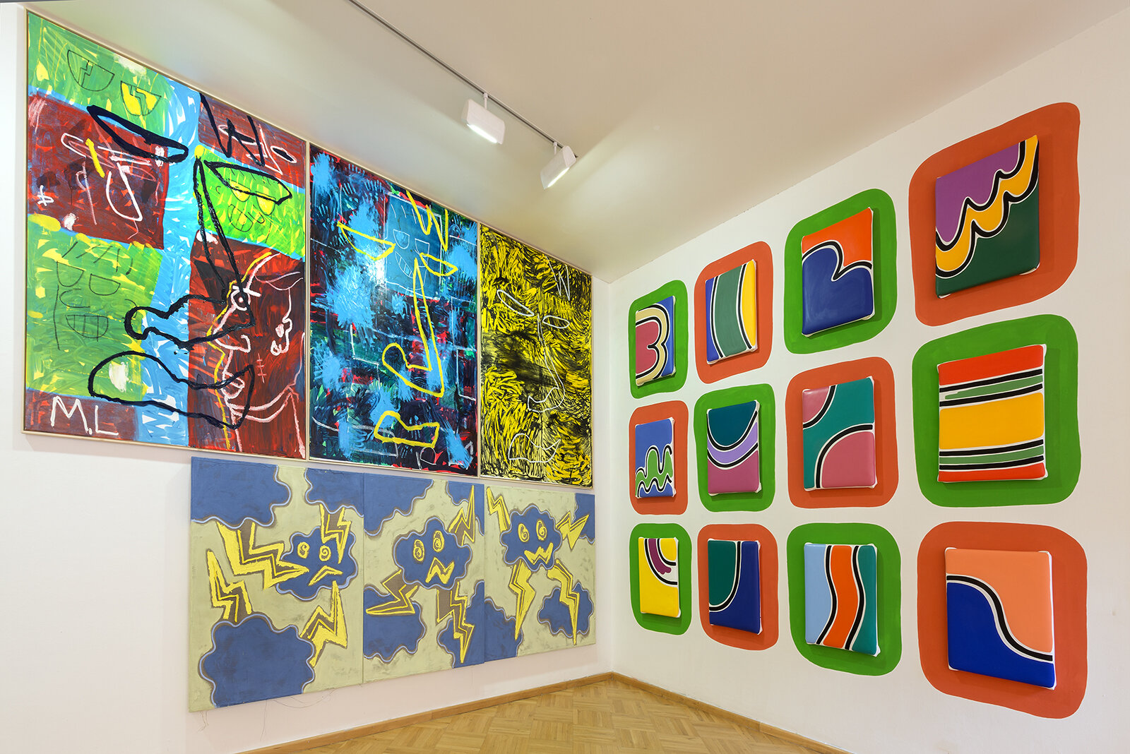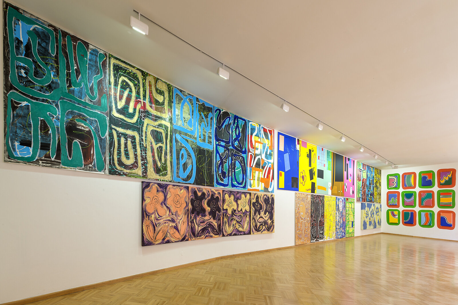 The VDIFF exhibition will present fourteen artists from the emerging generation embodying fourteen individualistic and confident approaches to the medium of painting. Vdiff (visual diff) is a term from the field of computer programming denoting a method of file control using visual comparison. Selected as a title it should evoke the fact that the exhibition shows paintings at a time when computers and digital technology have become everyday reality and hence strongly influence how and what we perceive visually. The aim is to create a spectacular environment within the framework of which the paintings will spill over into spatial installations and create mutual visual confrontations and incite discussion over the similarities and differences of the participating artists. Rather than a show presenting individual artists it is a gesamtkunstwerk, a shared installation of painters, male and female, filling up the landscape. Abstraction meets quite naturally figurativeness, expressiveness faces order, monochrome rendering clashes with a wild colour palette. Additional frequent elements include bricolage, multiplications, mass production as a reflection on the consumer society, pop culture, media reality, and the all-embracing digital universe represented mainly by the internet.