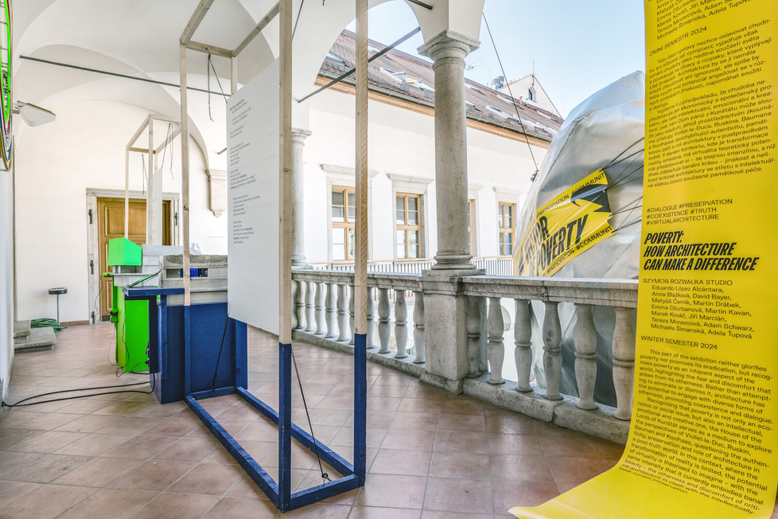 The exhibition focuses primarily on the alleviation of the effects of poverty. It presents projects and concepts that seek to create affordable and decent housing, revitalise neglected areas and promote social inclusion. It also shares a common theme with the exhibition Poverty, held from 17 January to 30 March 2025 at the Fine Arts Gallery in Havlíčkův Brod and the Horácká Gallery in Nové Město na Moravě, which deals with poverty in a broader social and historical context, with an emphasis on reflection in art from the Baroque to the present. The two exhibitions refer to each other because together they create a complex picture of the issue, from physical manifestations in architecture and urbanism to cultural and social aspects.