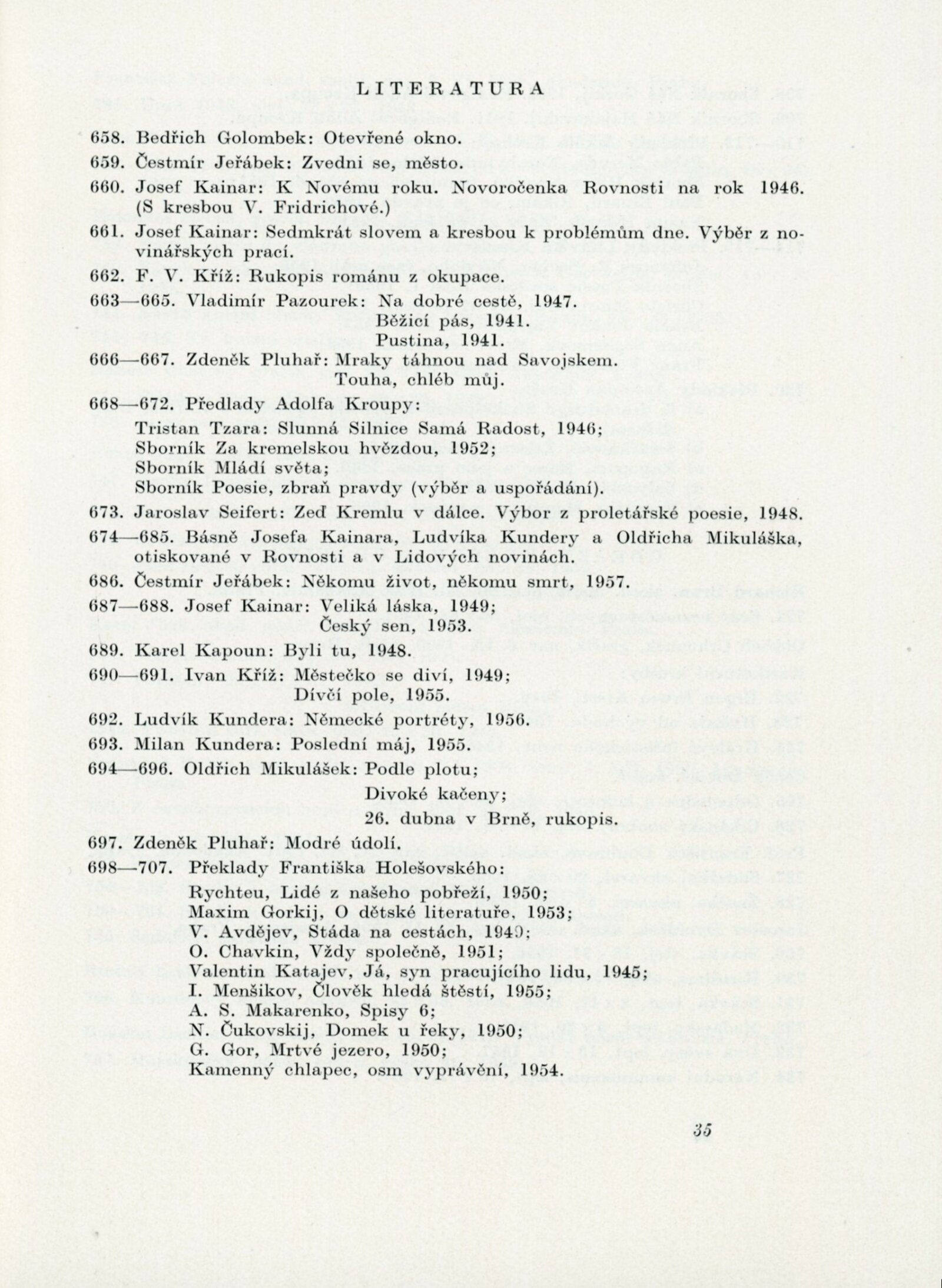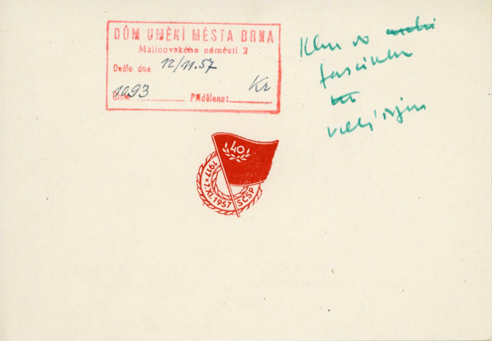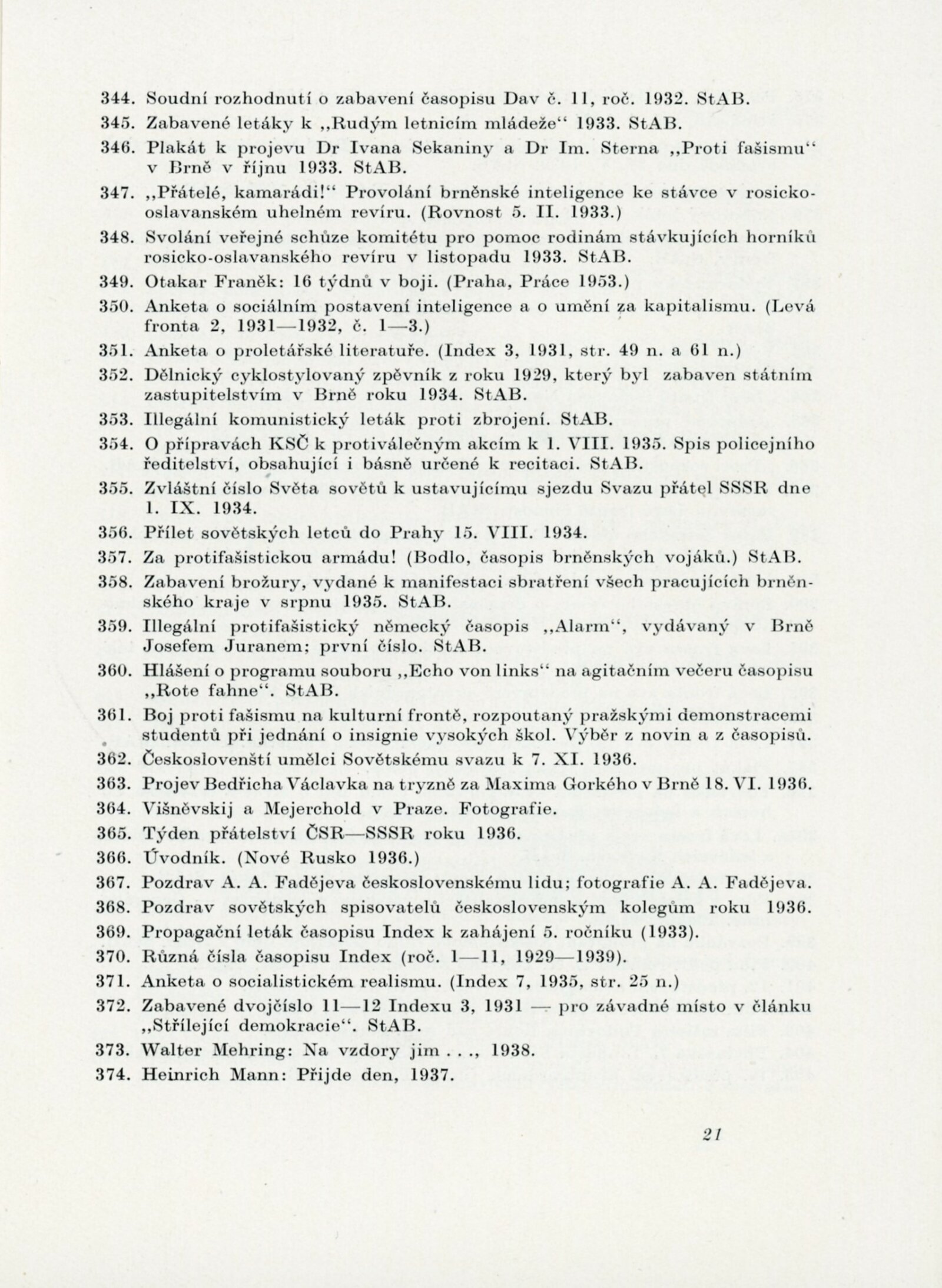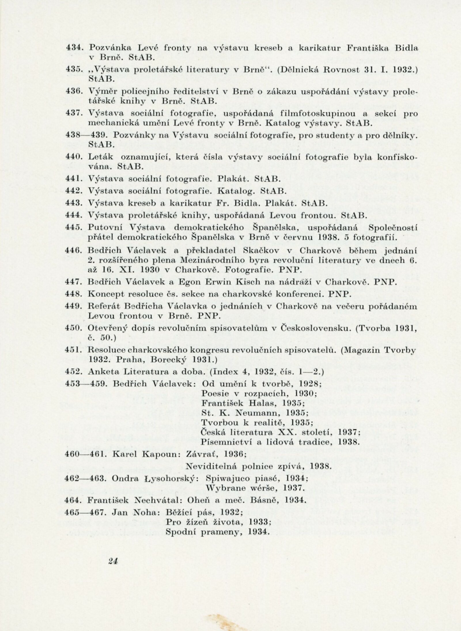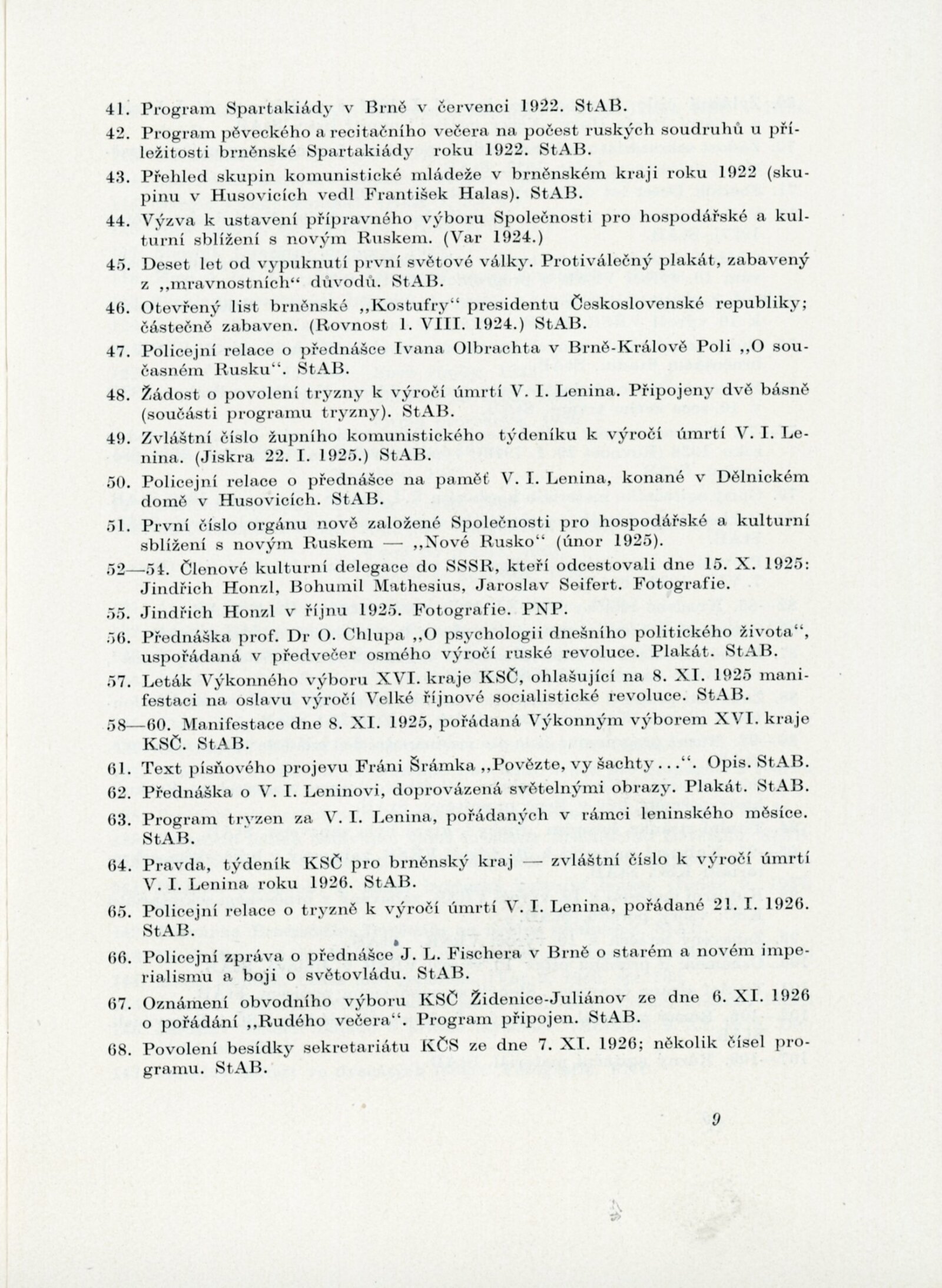 Velký Říjen inspirátor umění. Výstava k poctě 40. výročí Velké říjnové revoluce: Dům umění města Brna, 10. 11. – 8. 12. 1957 / Text: Karel Bundálek, V. Kopecký. – Brno: DUmB, 1957. – 41 s., DU 296. – MZK; MG