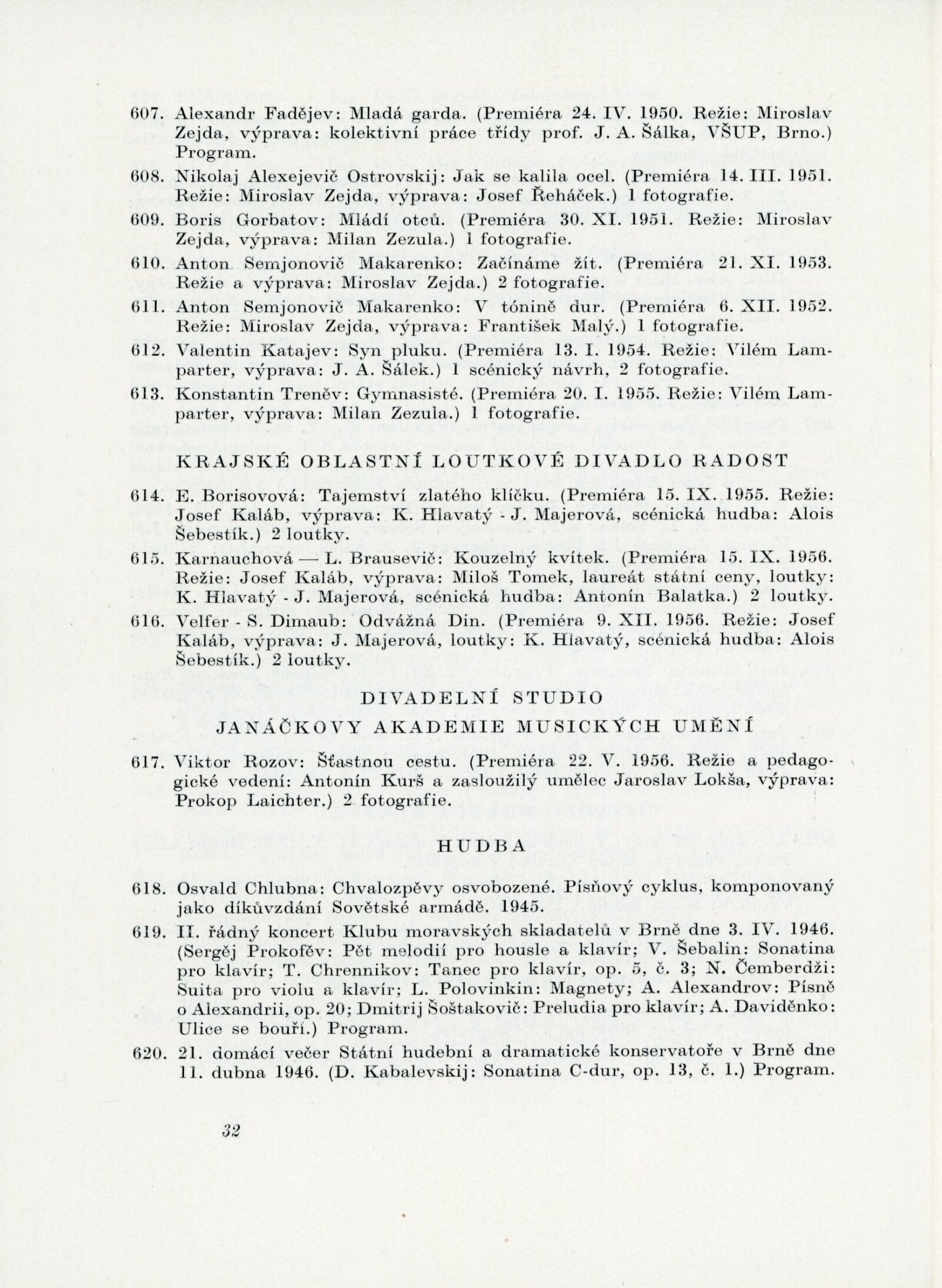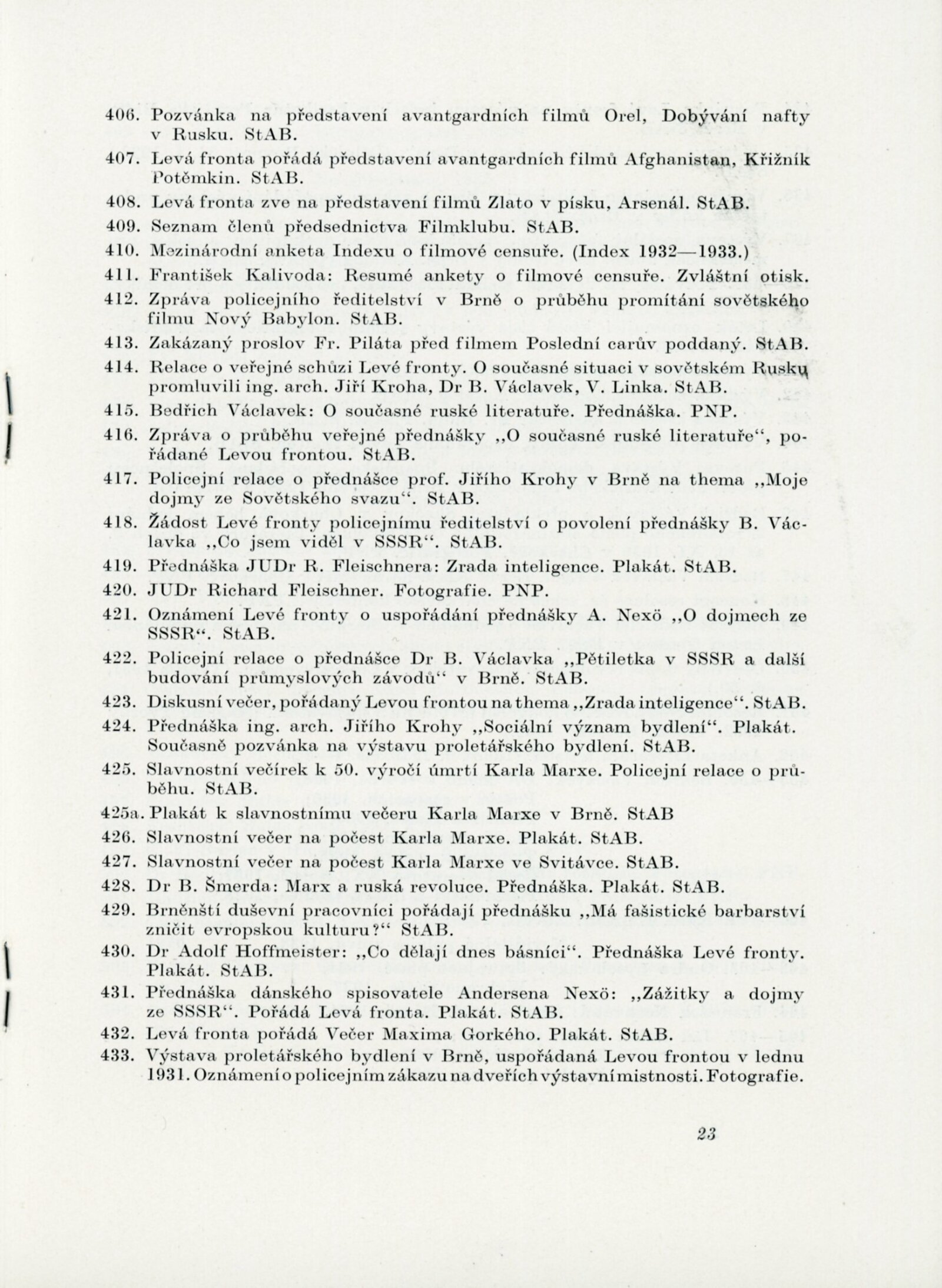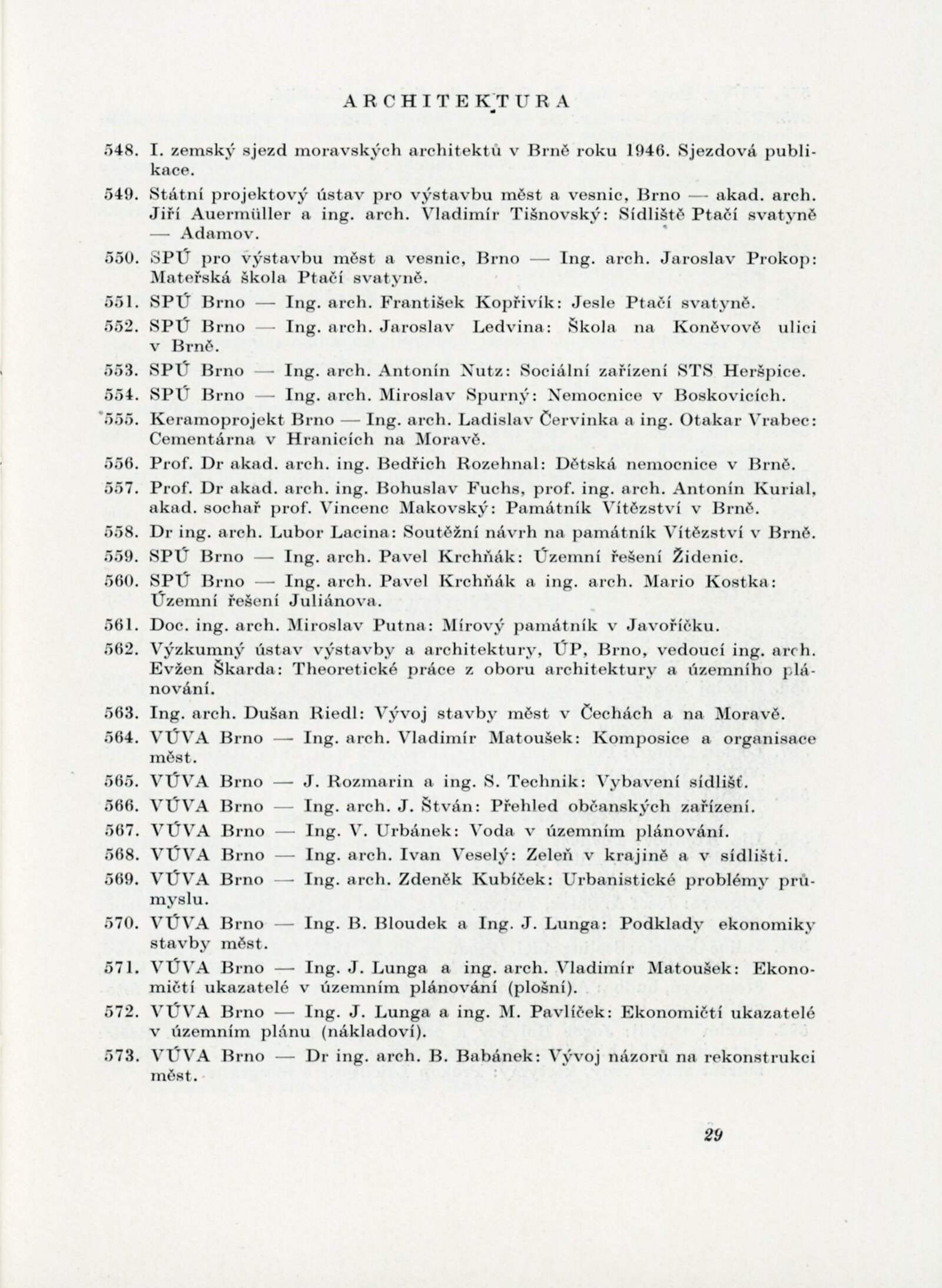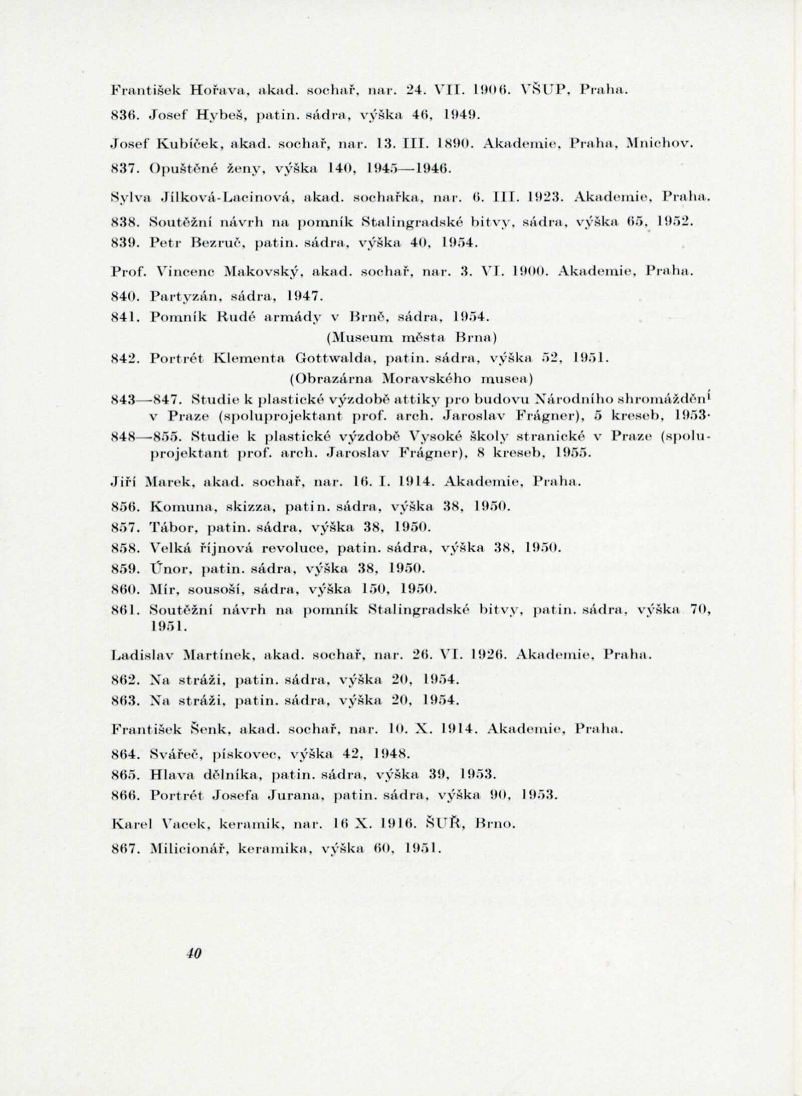 Helena Bochořáková, Petr Dillinger, Ferdiš Duša, Bohuslav Fuchs, Emil Hlavica, Jaroslav Král, Jiří Kroha, Josef Kubíček, Jindřich Kumpošt, Zdeněk Michálek, Eduard Milén, Emil Artur Pittermann-Longen, Josef Polášek, Rudolf Puchýř, Miroslav Putna, Bedřich Rozehnal, Karel Srp, František Süsser, Josef Zamazal