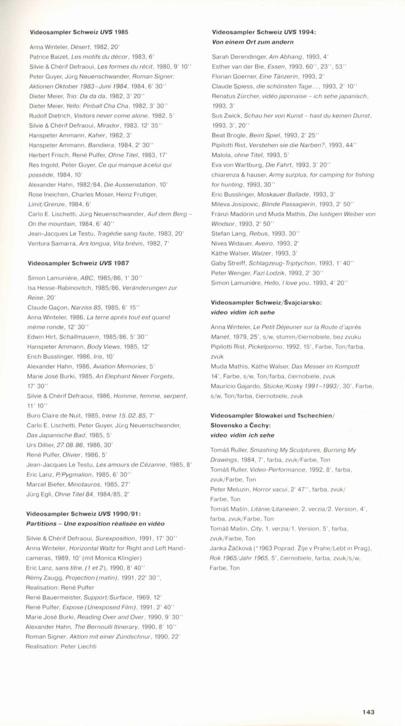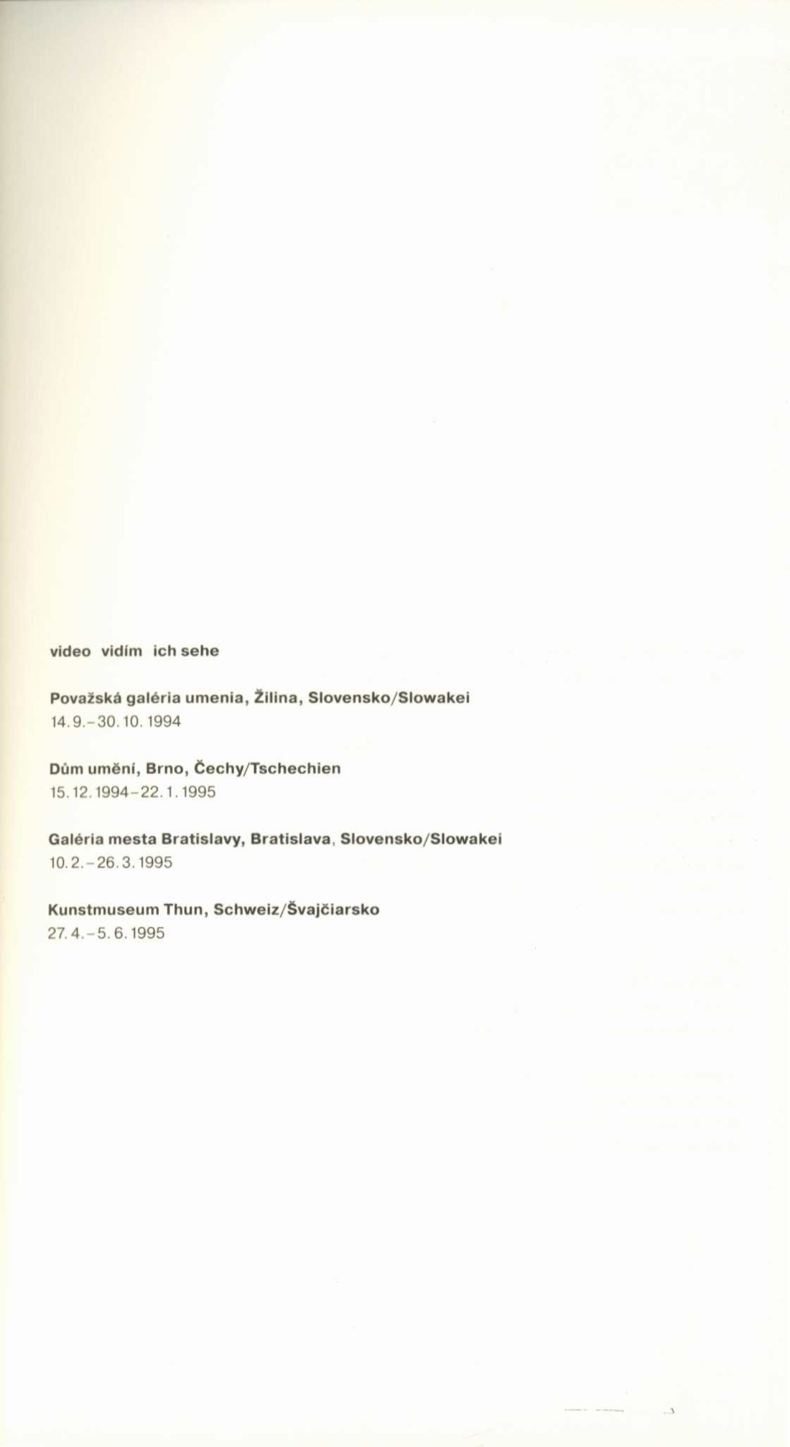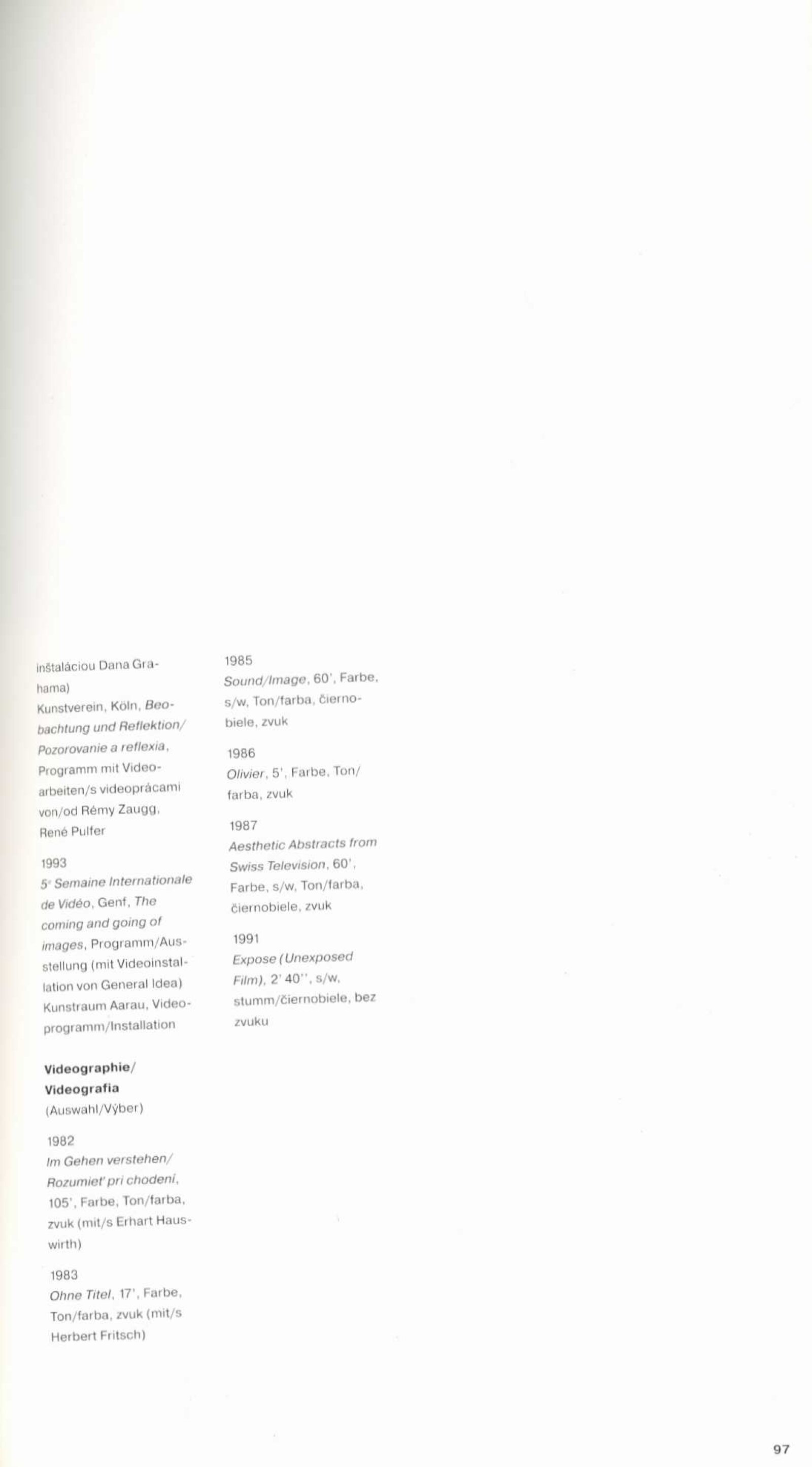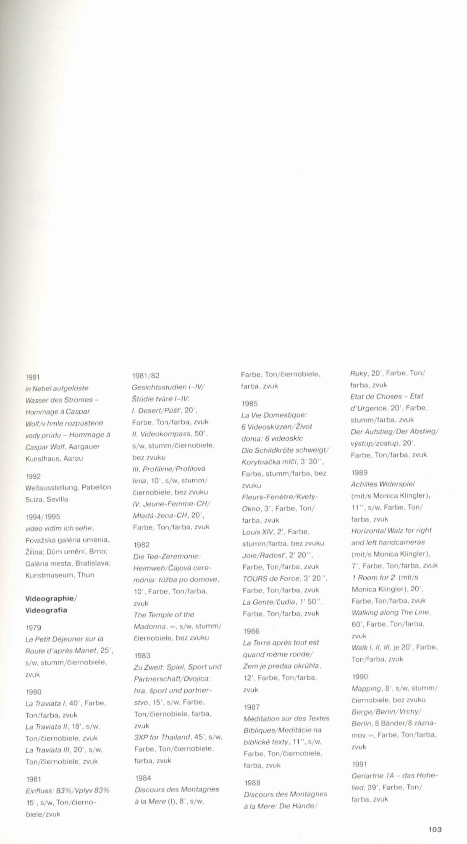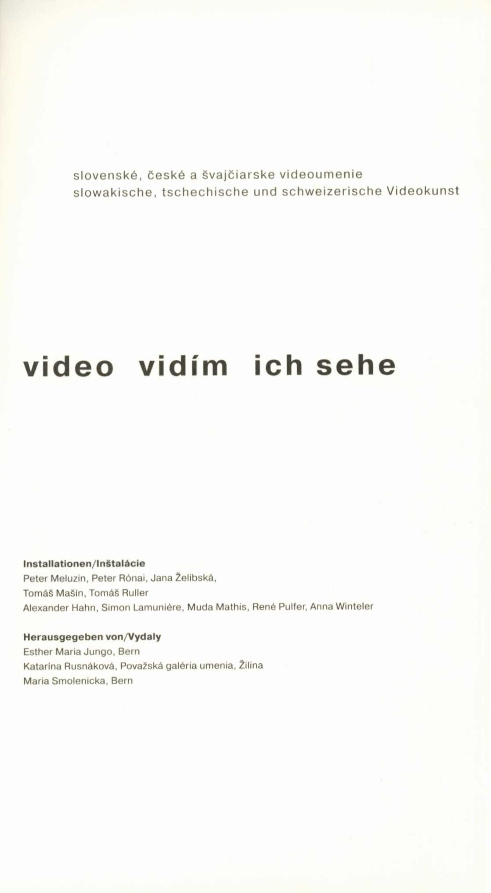 Video vidím ich sehe, slovenské, české a švajciarské videoumenie, eds. Esther Maria Jungo, Maria Smolenicka, Gerhard Blättler, Bern 1994, 145 s.