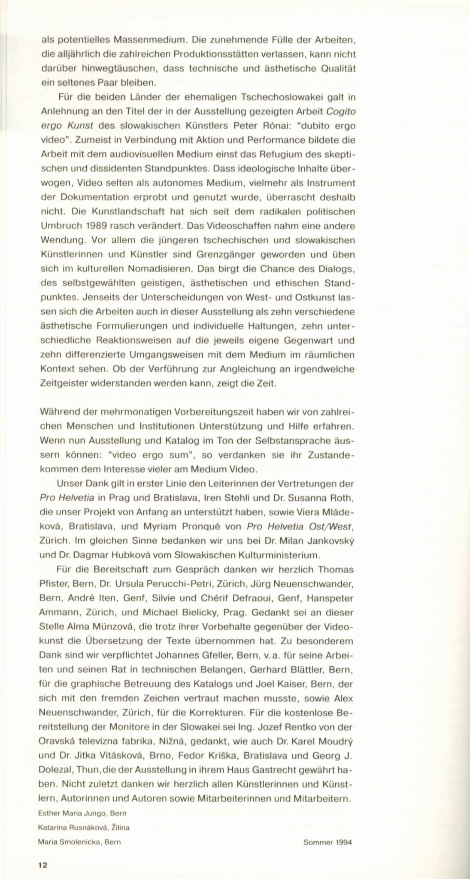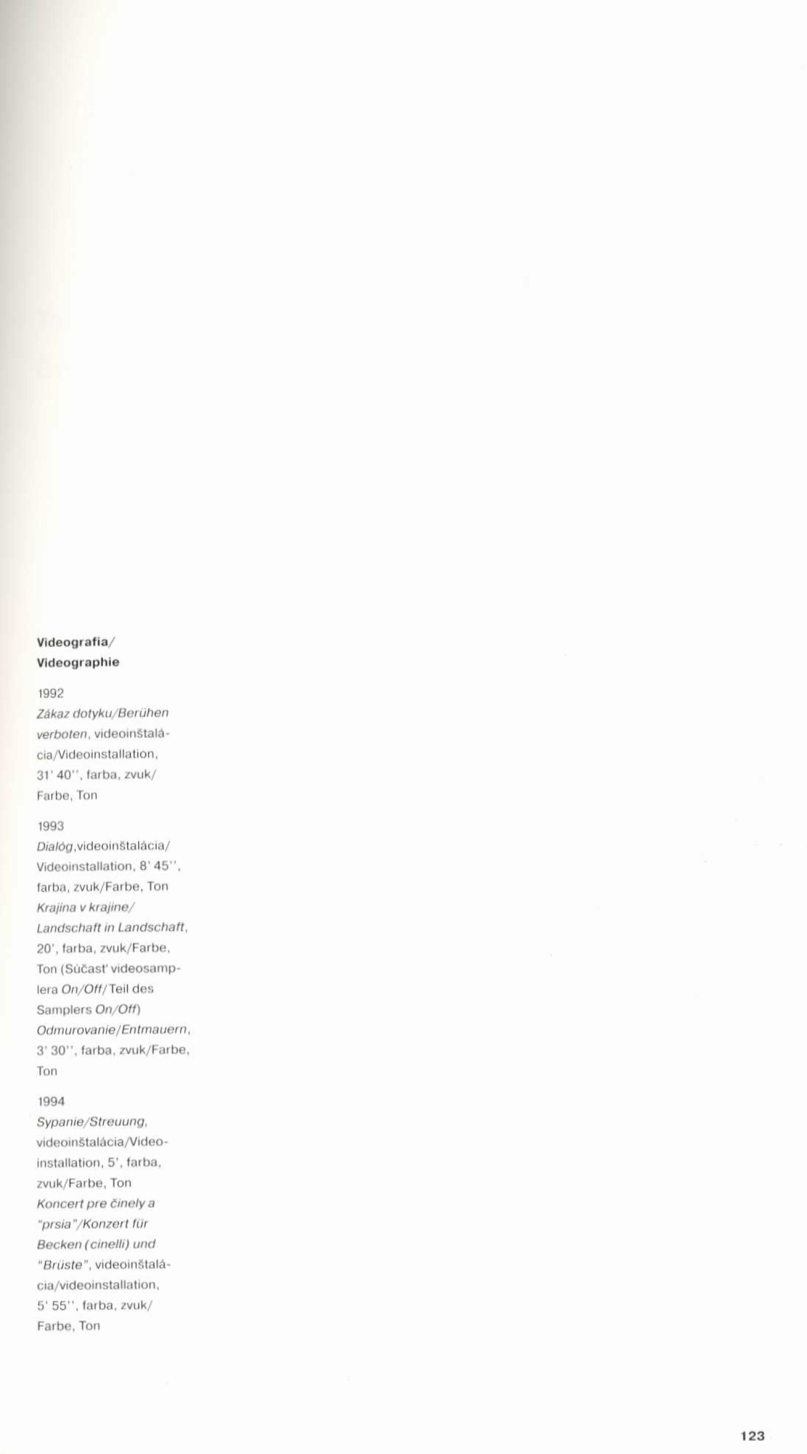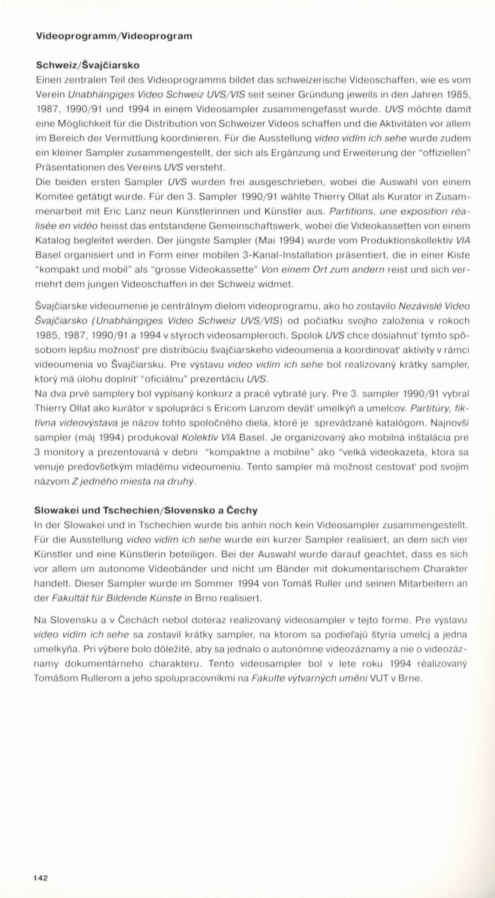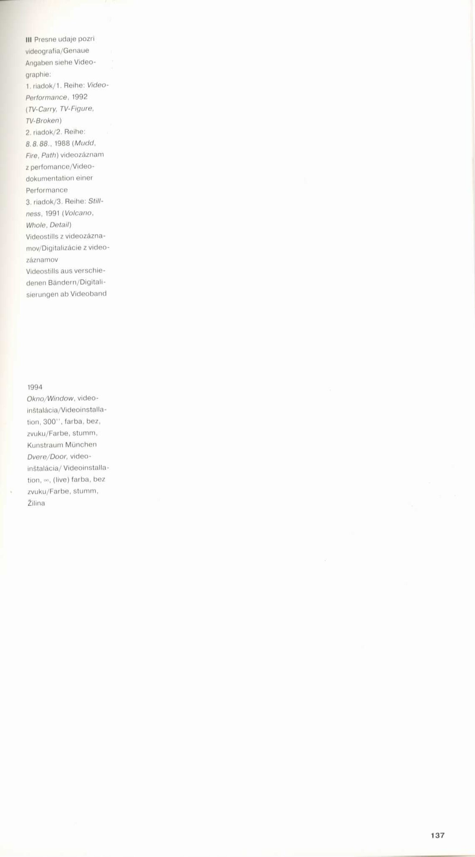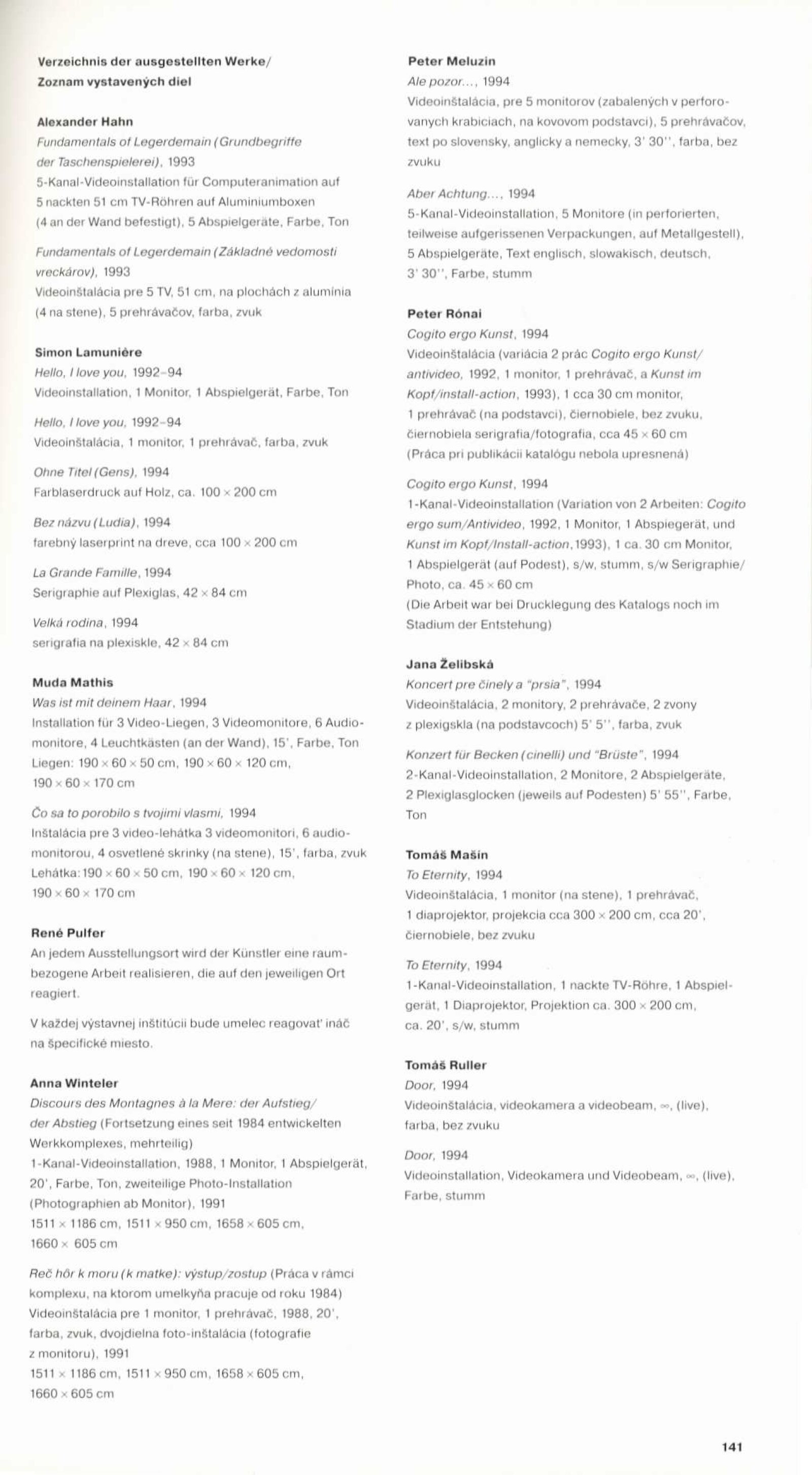 Video vidím ich sehe, slovenské, české a švajciarské videoumenie, eds. Esther Maria Jungo, Maria Smolenicka, Gerhard Blättler, Bern 1994, 145 s.