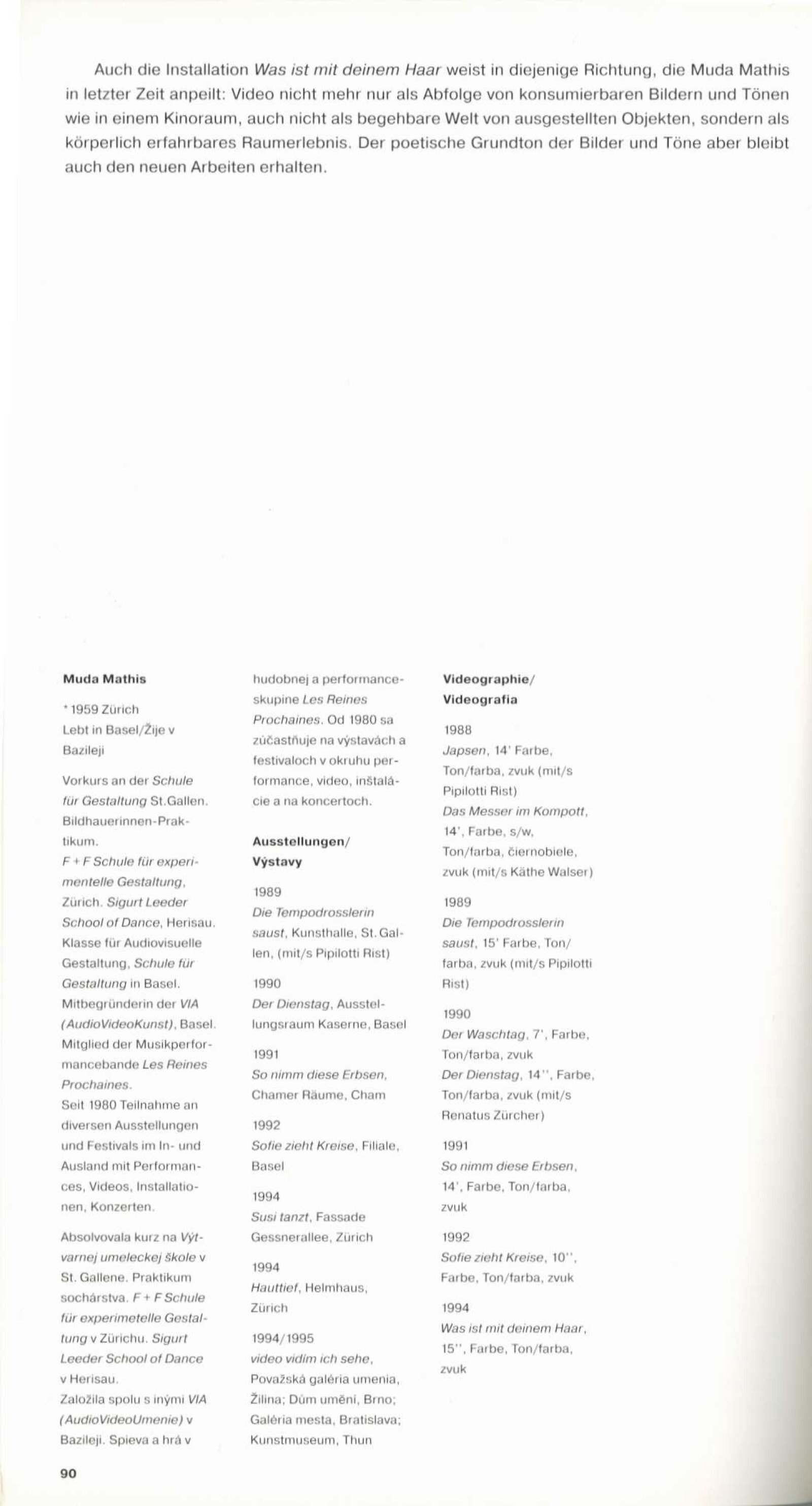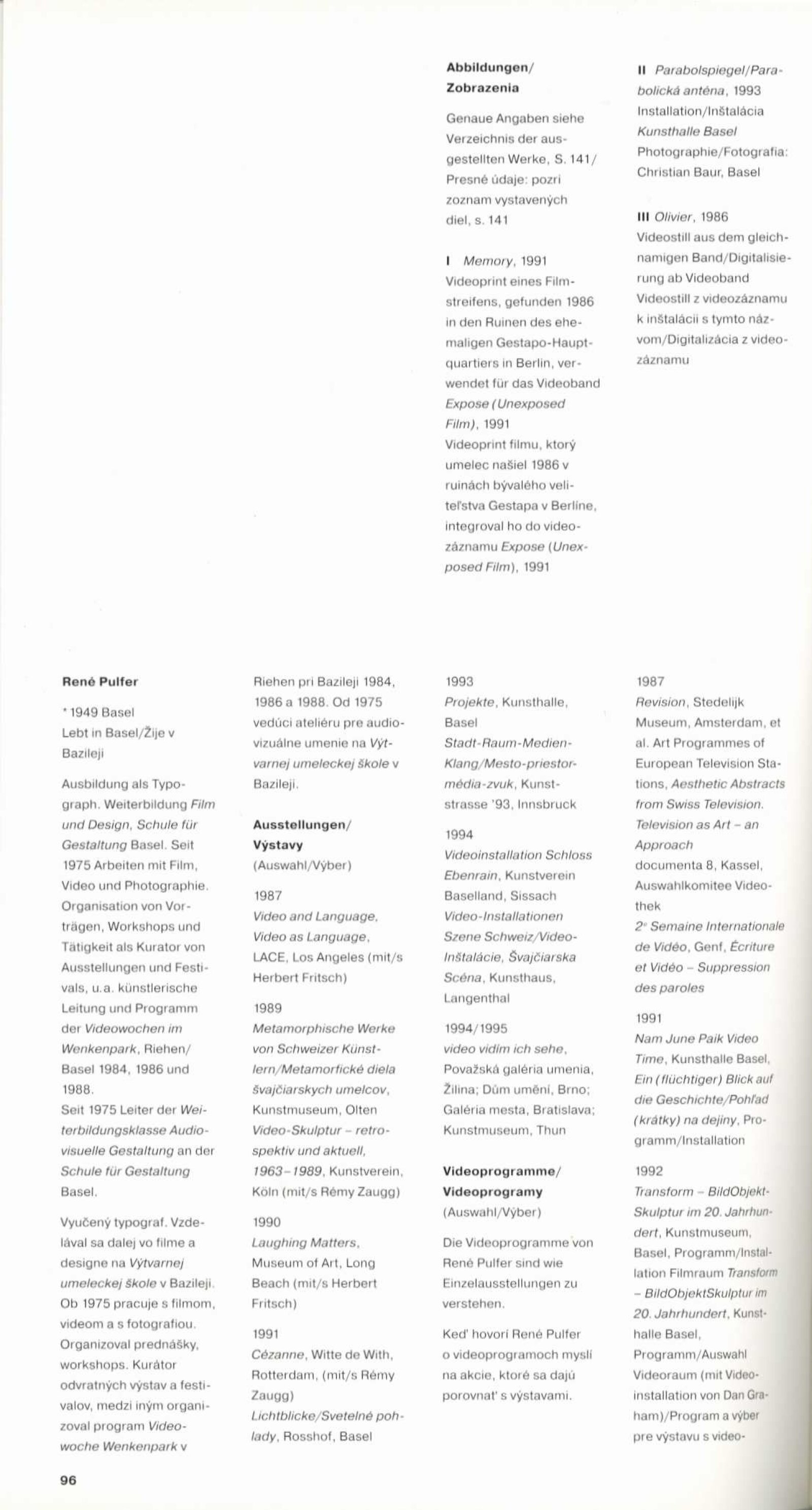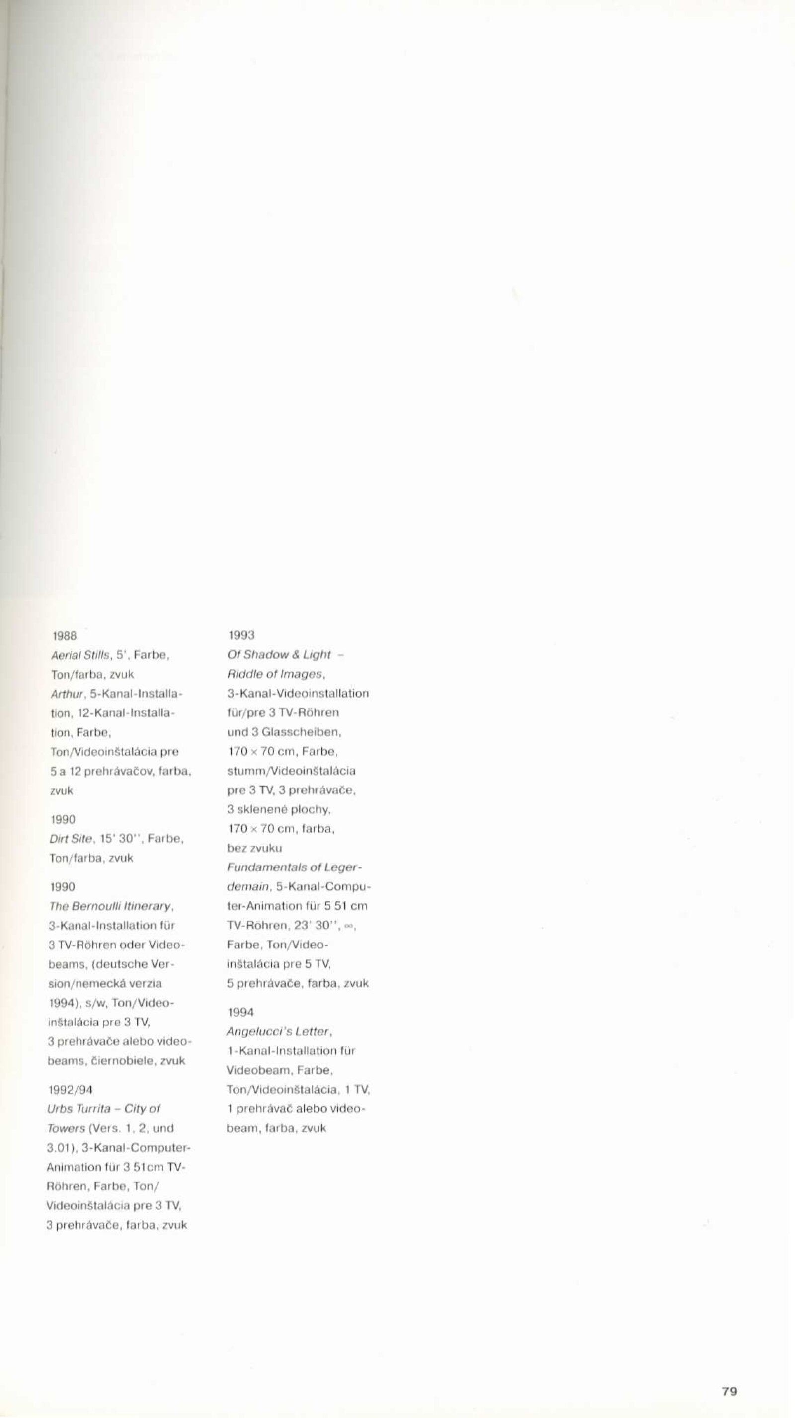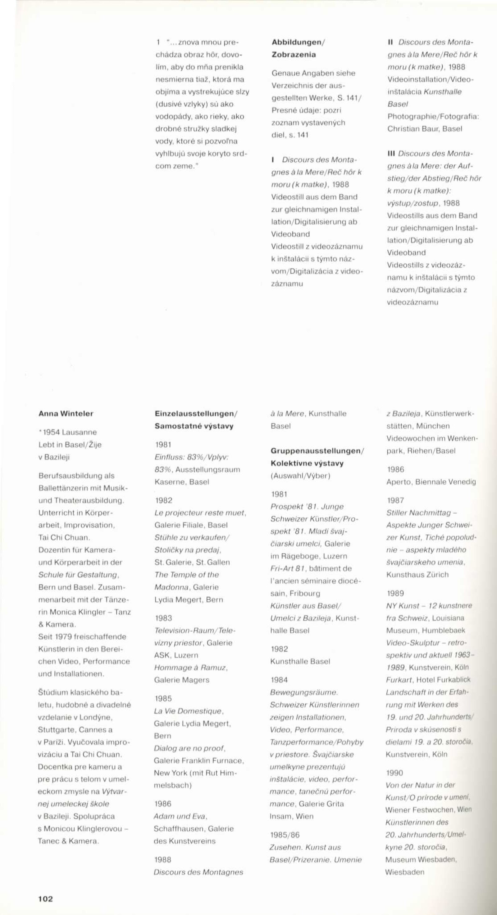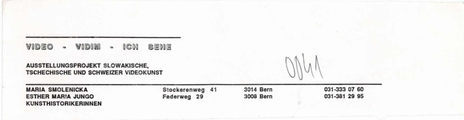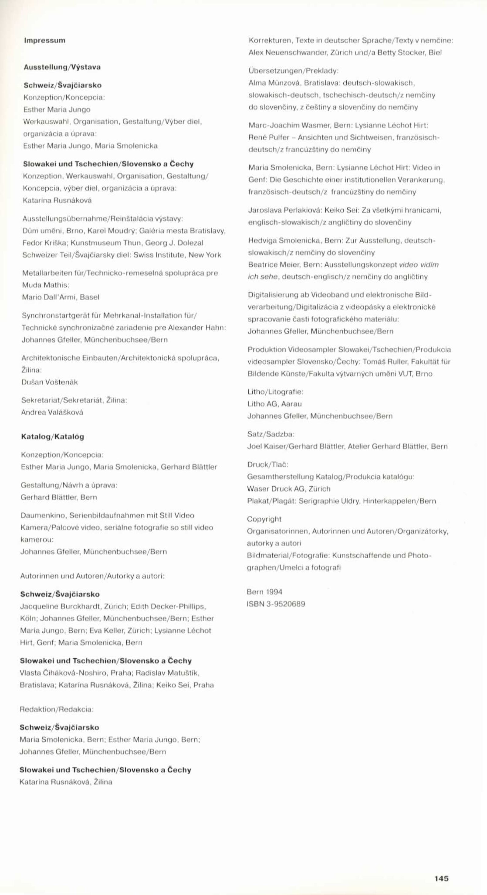 Video vidím ich sehe, slovenské, české a švajciarské videoumenie, eds. Esther Maria Jungo, Maria Smolenicka, Gerhard Blättler, Bern 1994, 145 s.