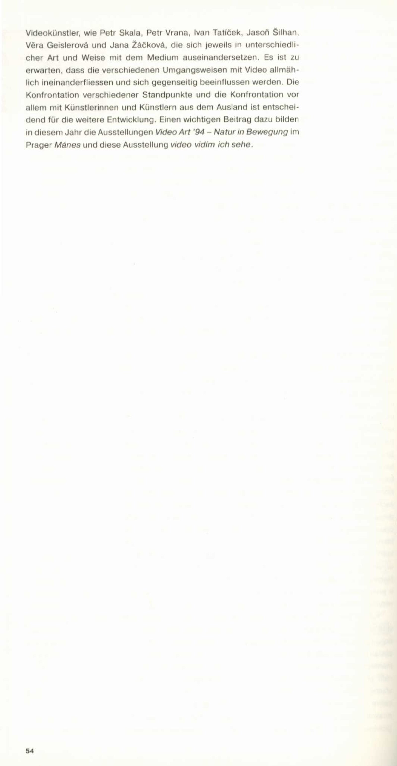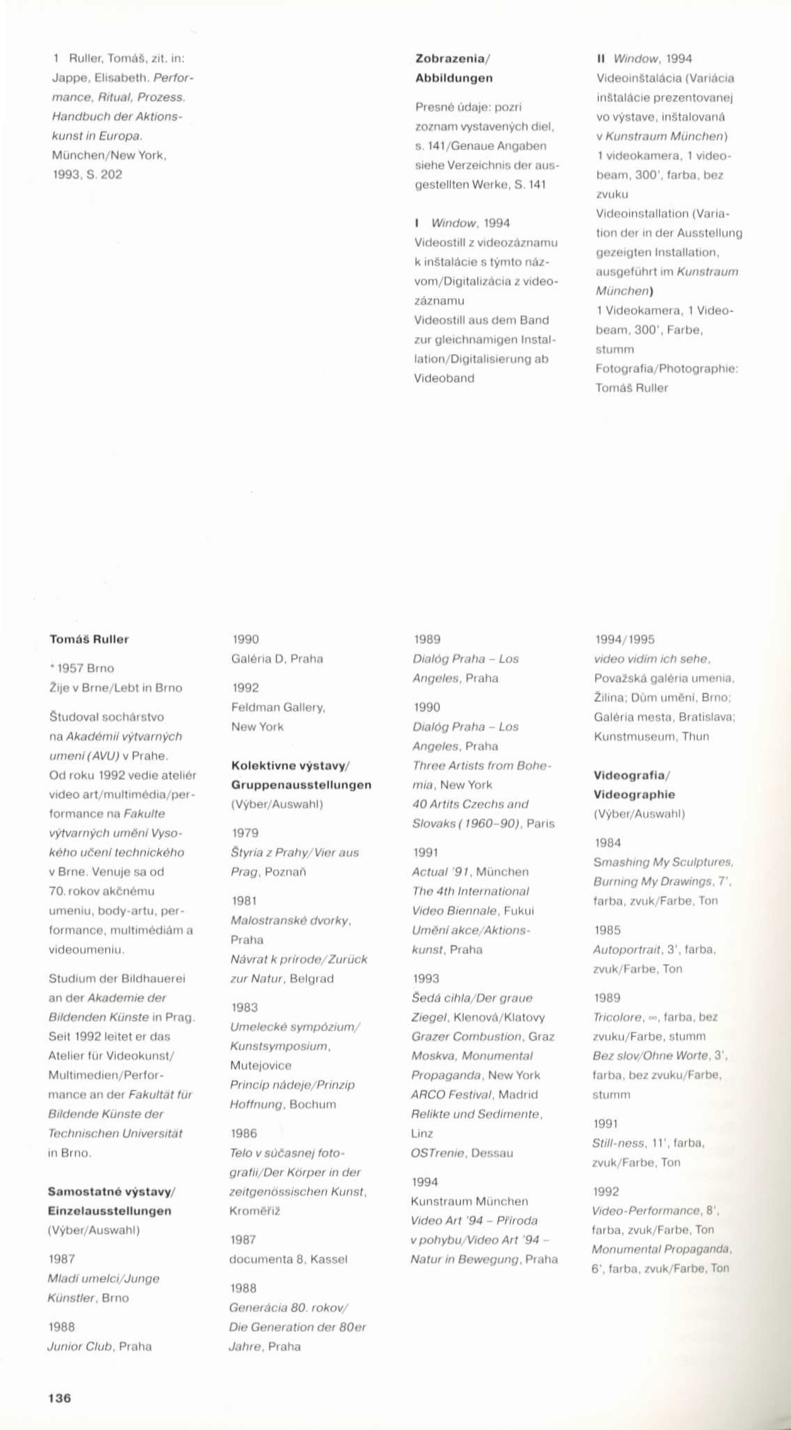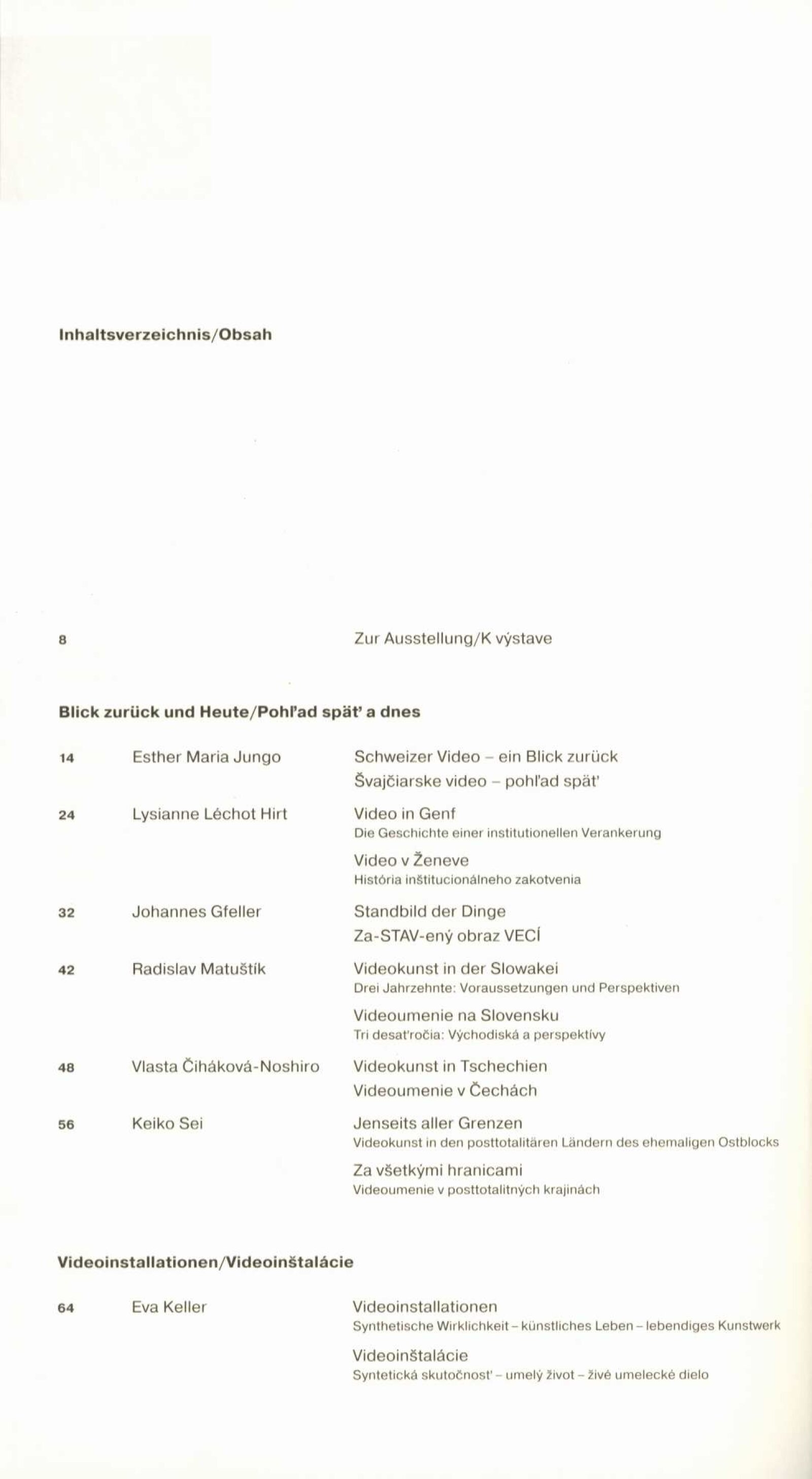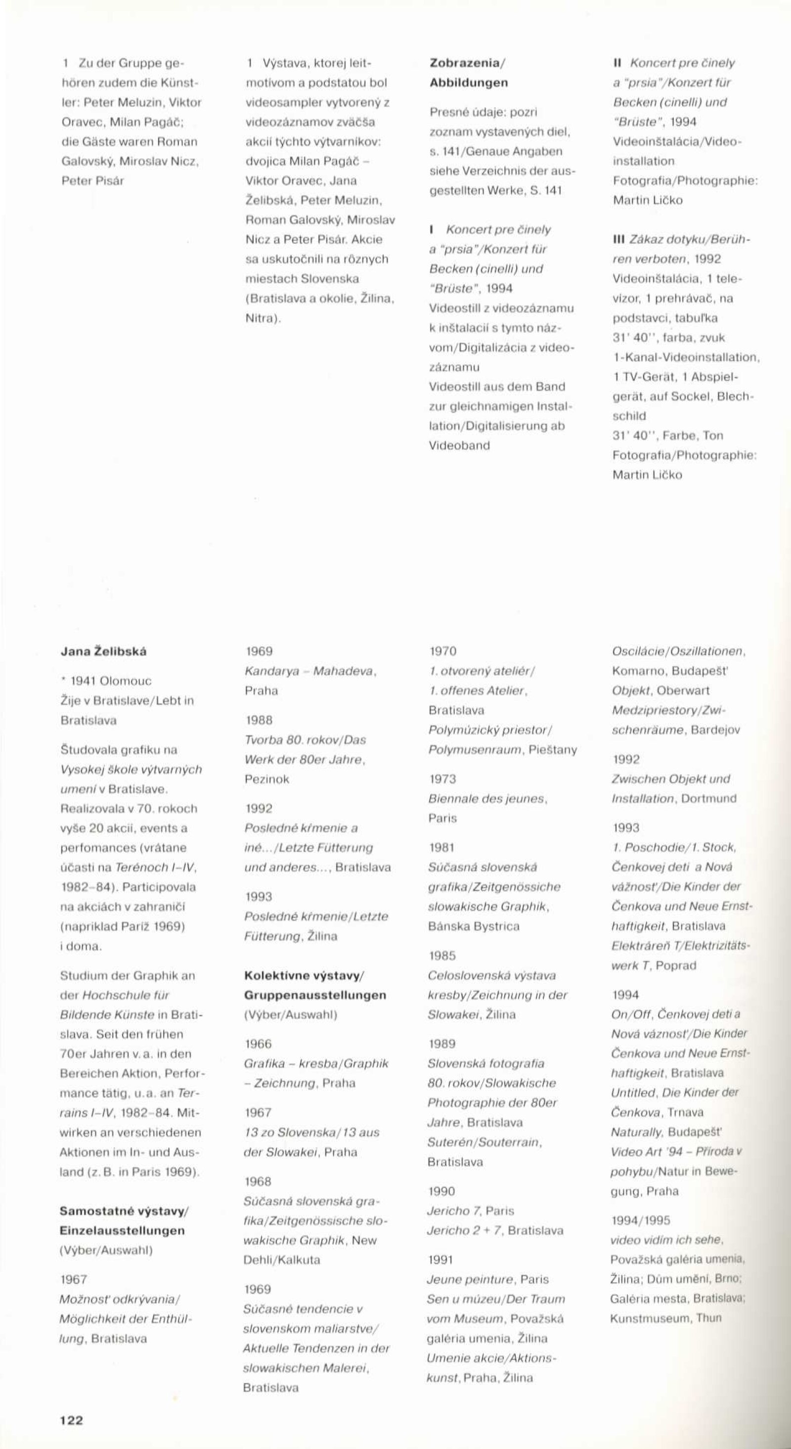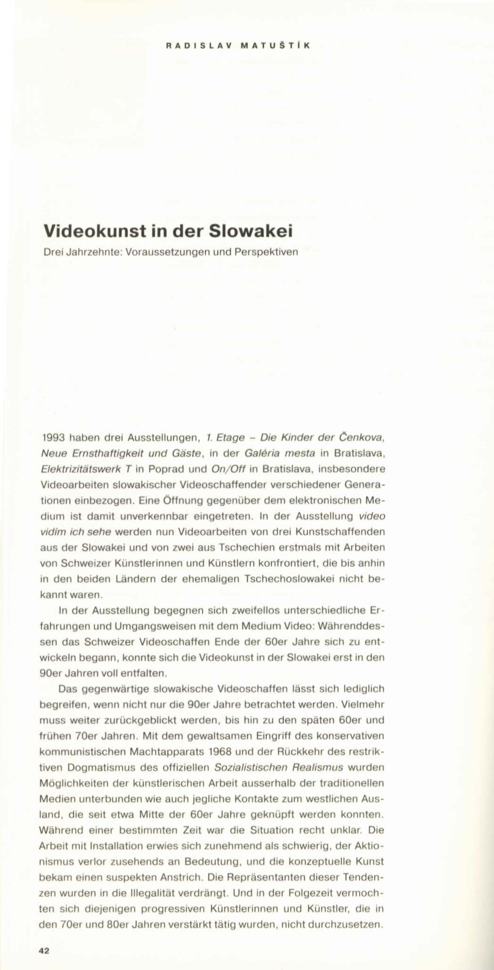 Video vidím ich sehe, slovenské, české a švajciarské videoumenie, eds. Esther Maria Jungo, Maria Smolenicka, Gerhard Blättler, Bern 1994, 145 s.