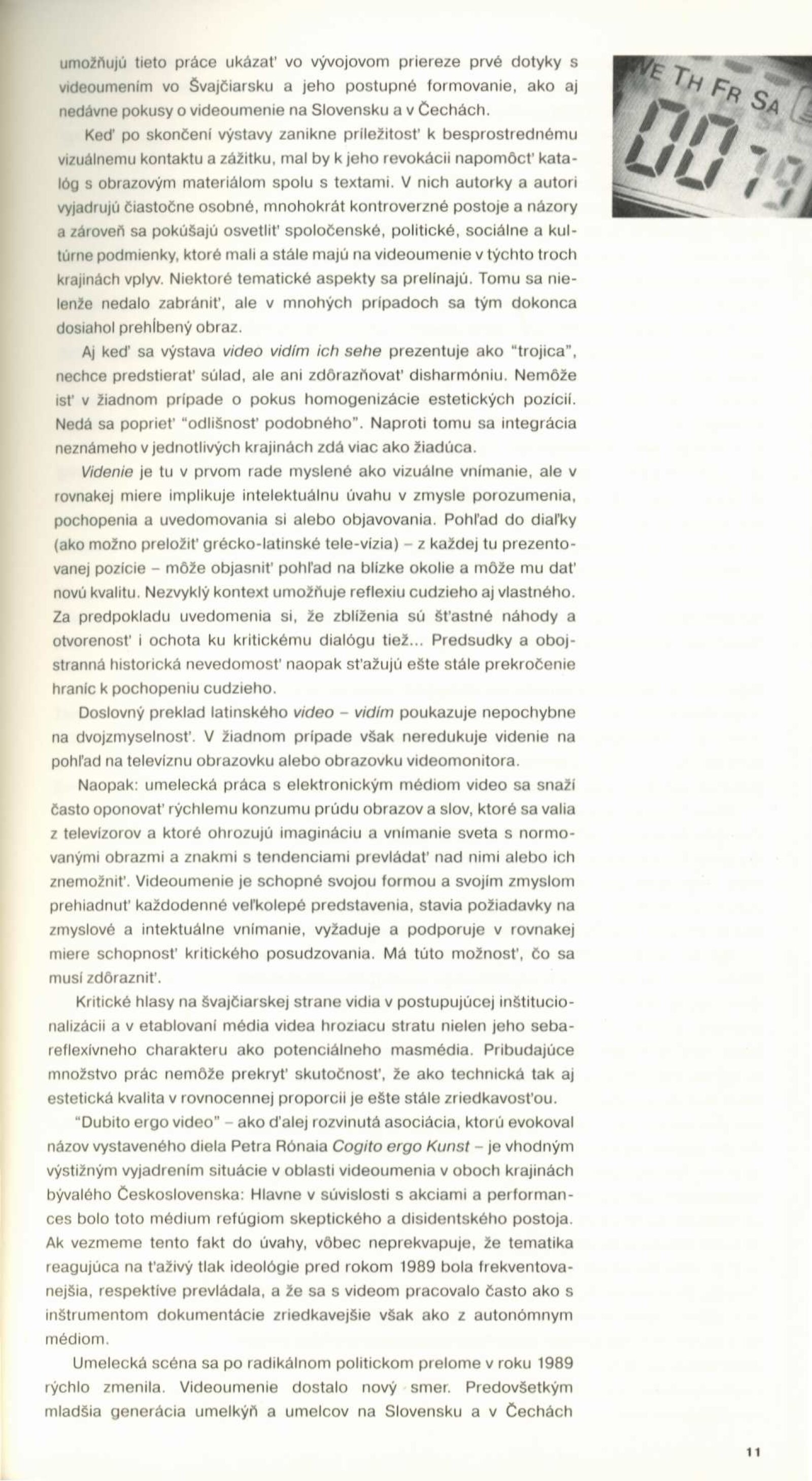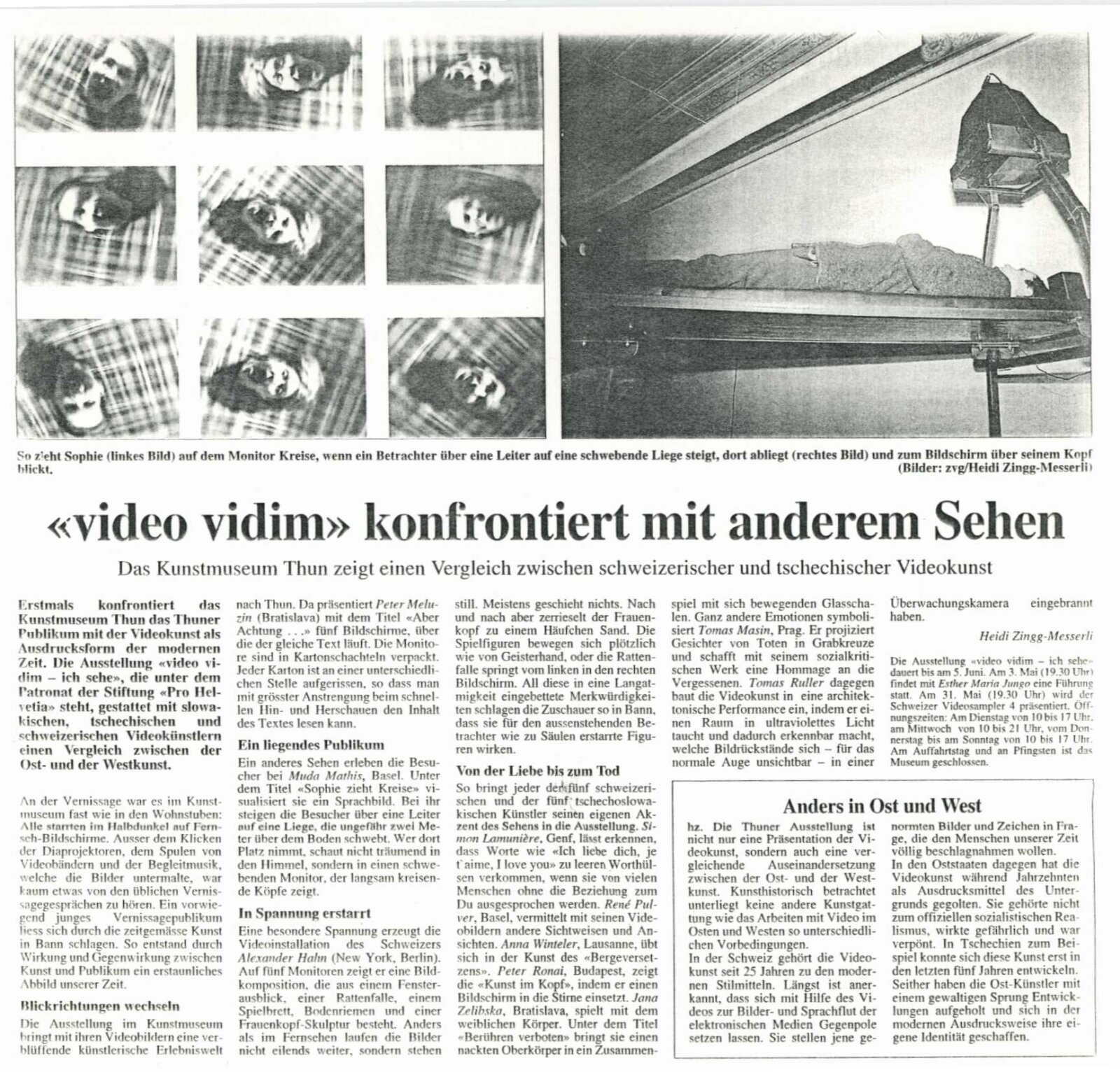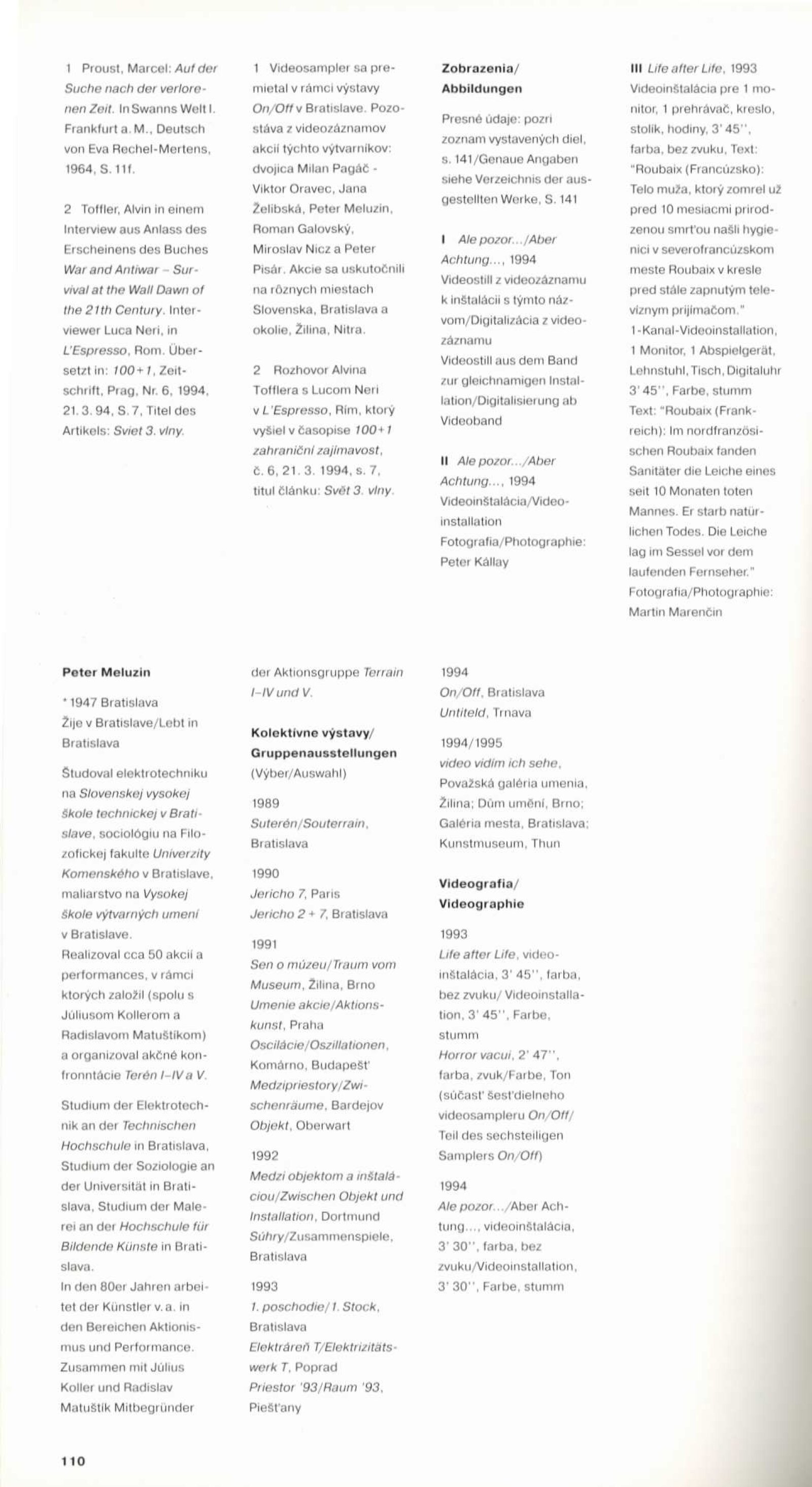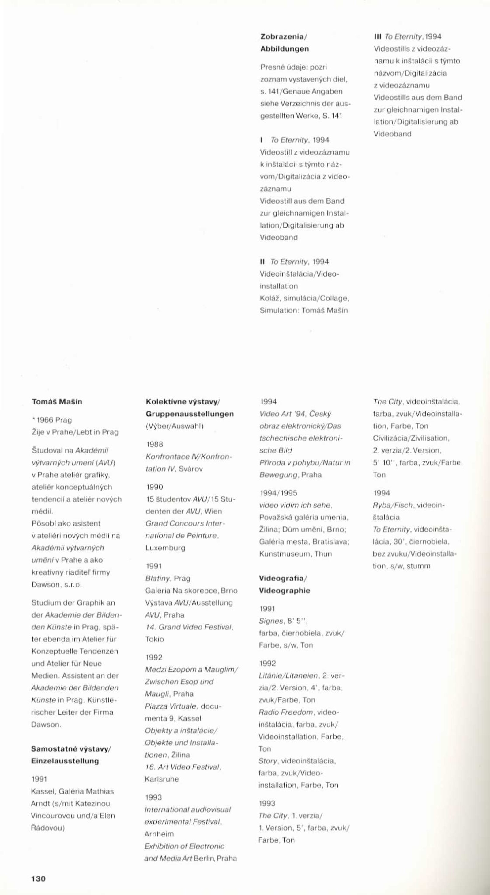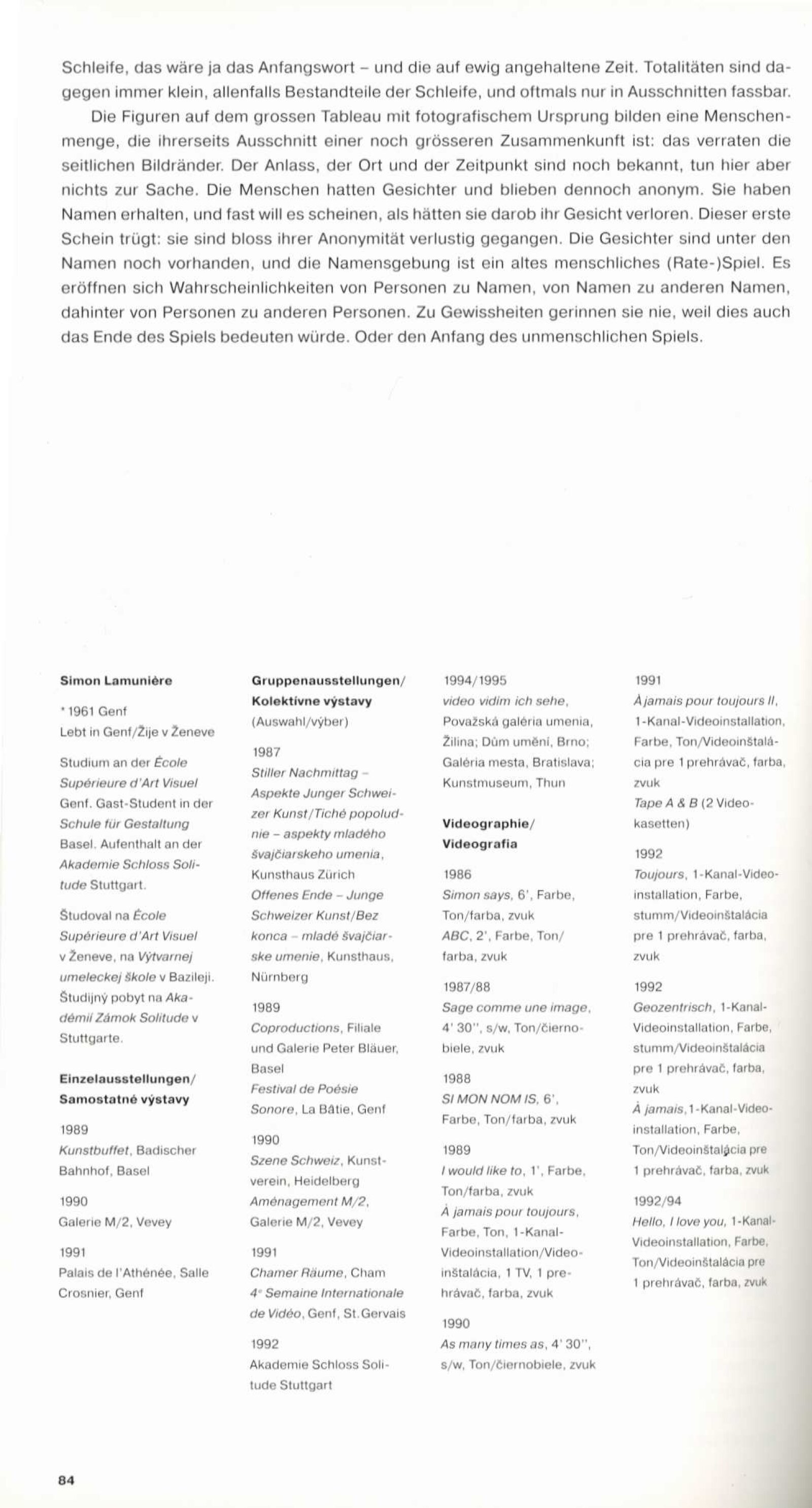 Video vidím ich sehe, slovenské, české a švajciarské videoumenie, eds. Esther Maria Jungo, Maria Smolenicka, Gerhard Blättler, Bern 1994, 145 s.