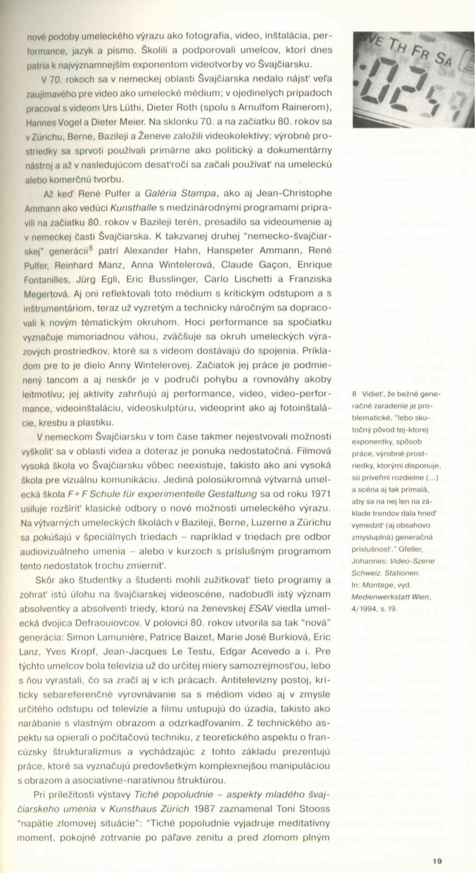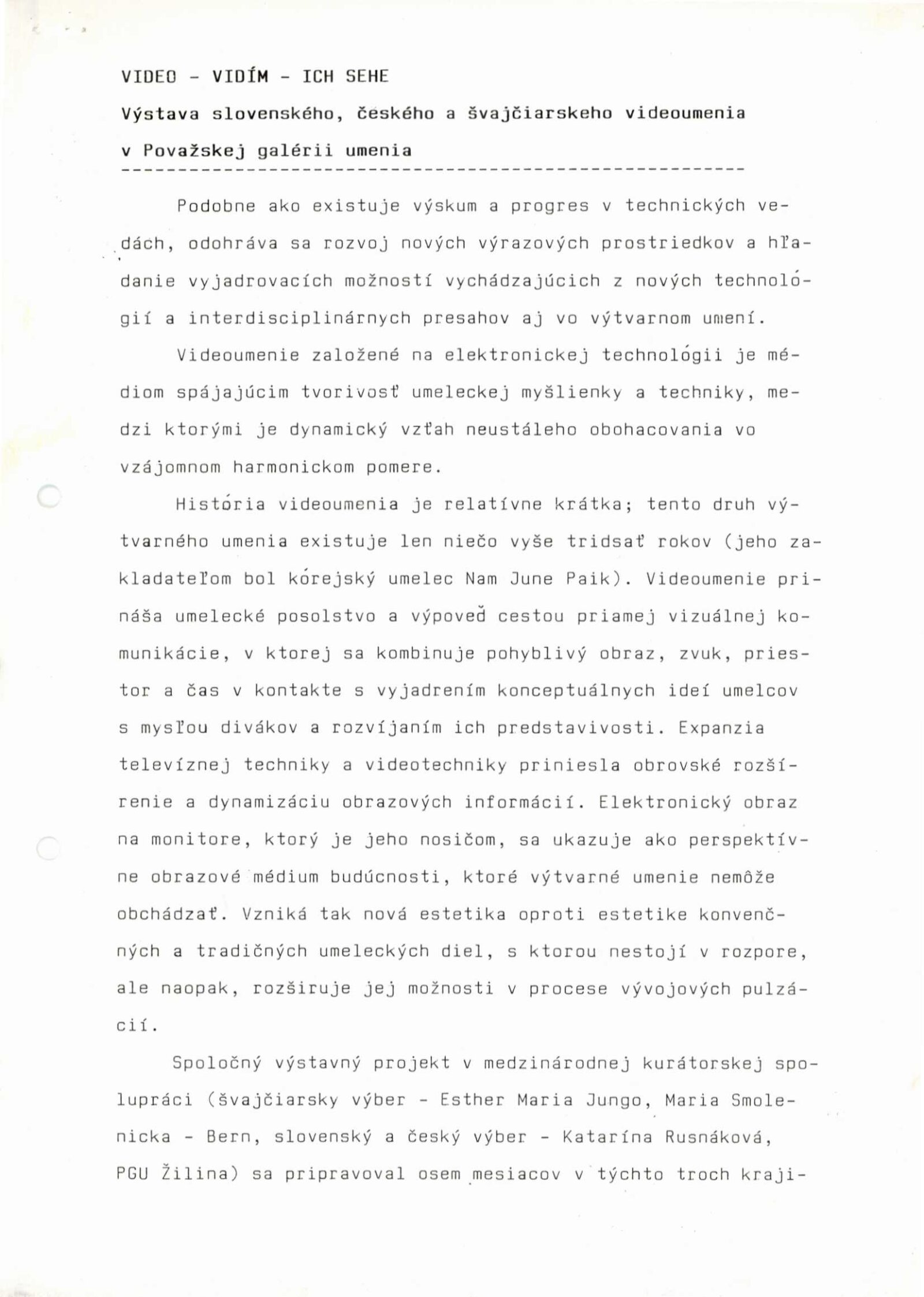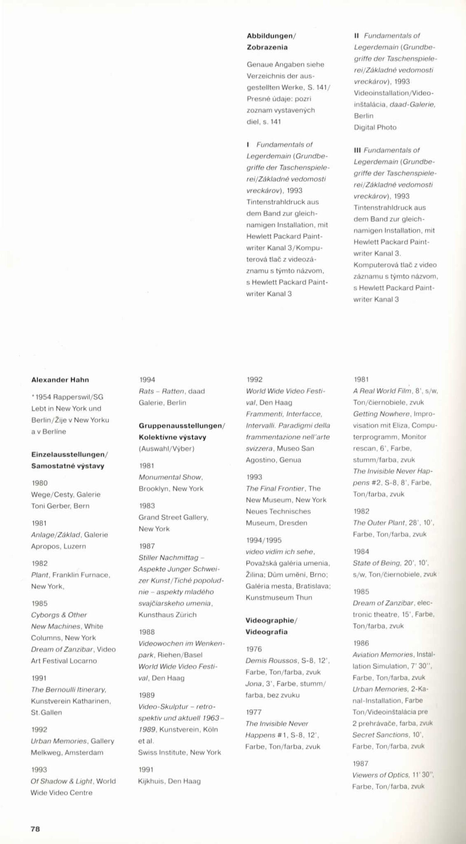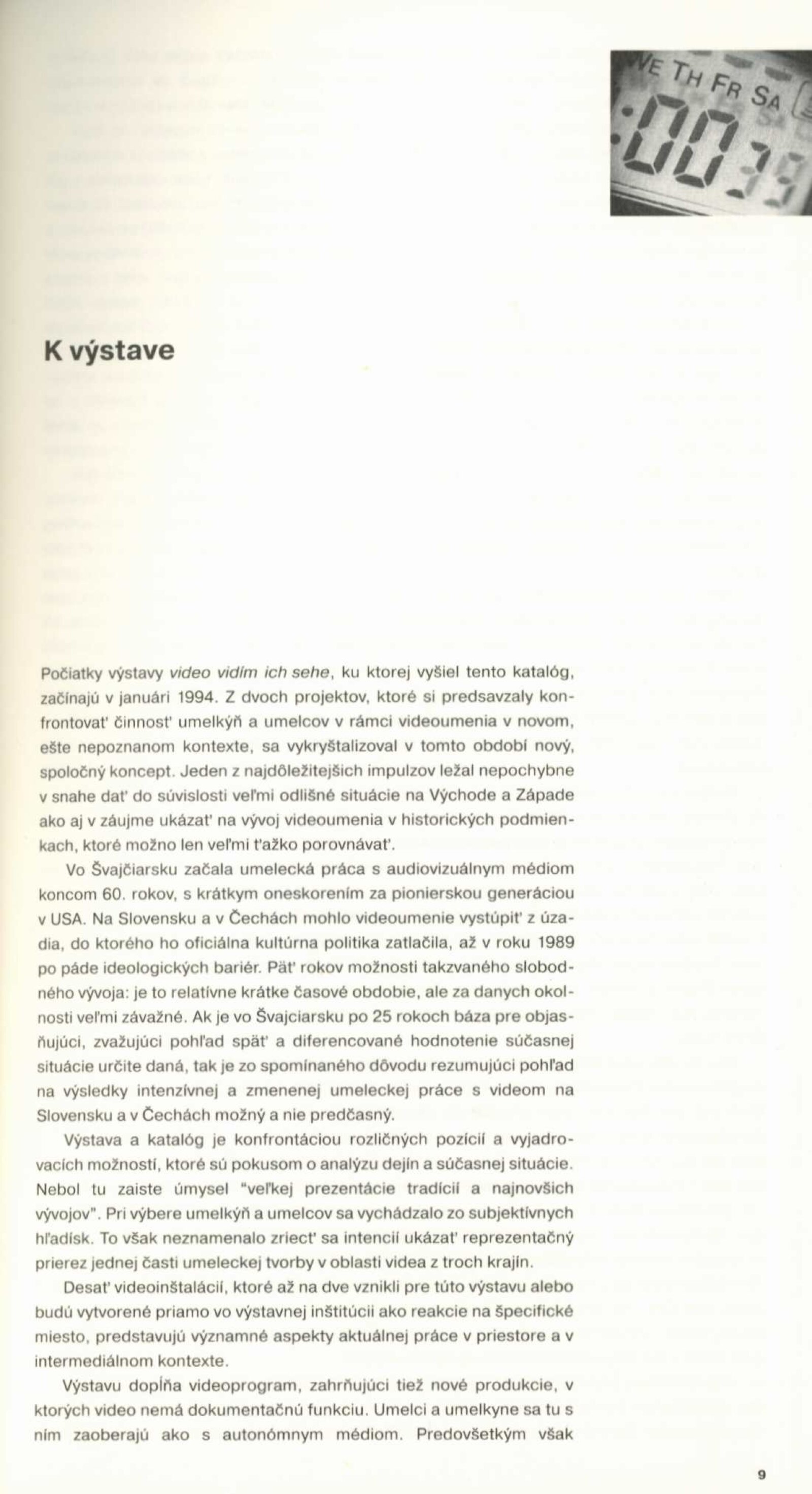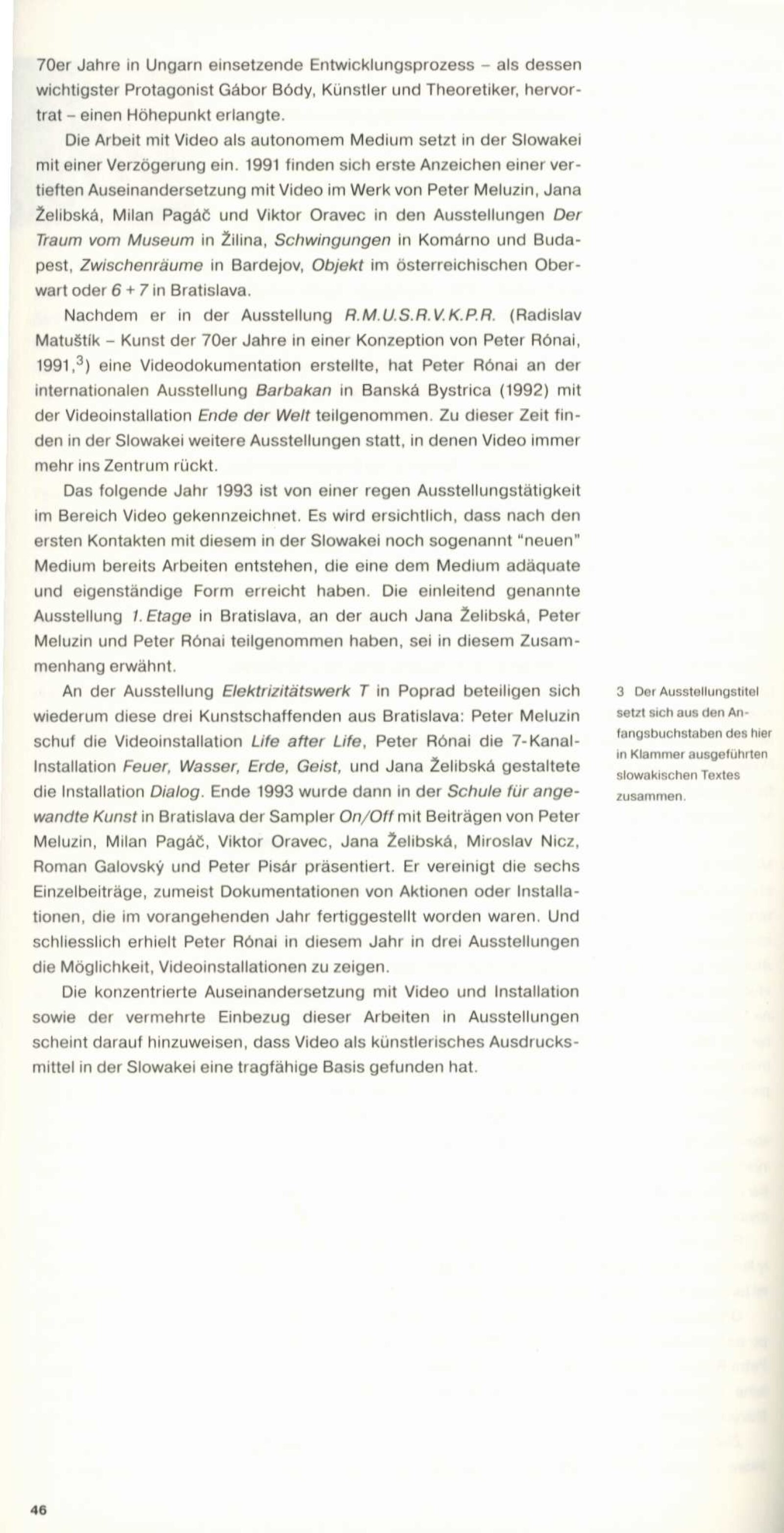 Video vidím ich sehe, slovenské, české a švajciarské videoumenie, eds. Esther Maria Jungo, Maria Smolenicka, Gerhard Blättler, Bern 1994, 145 s.