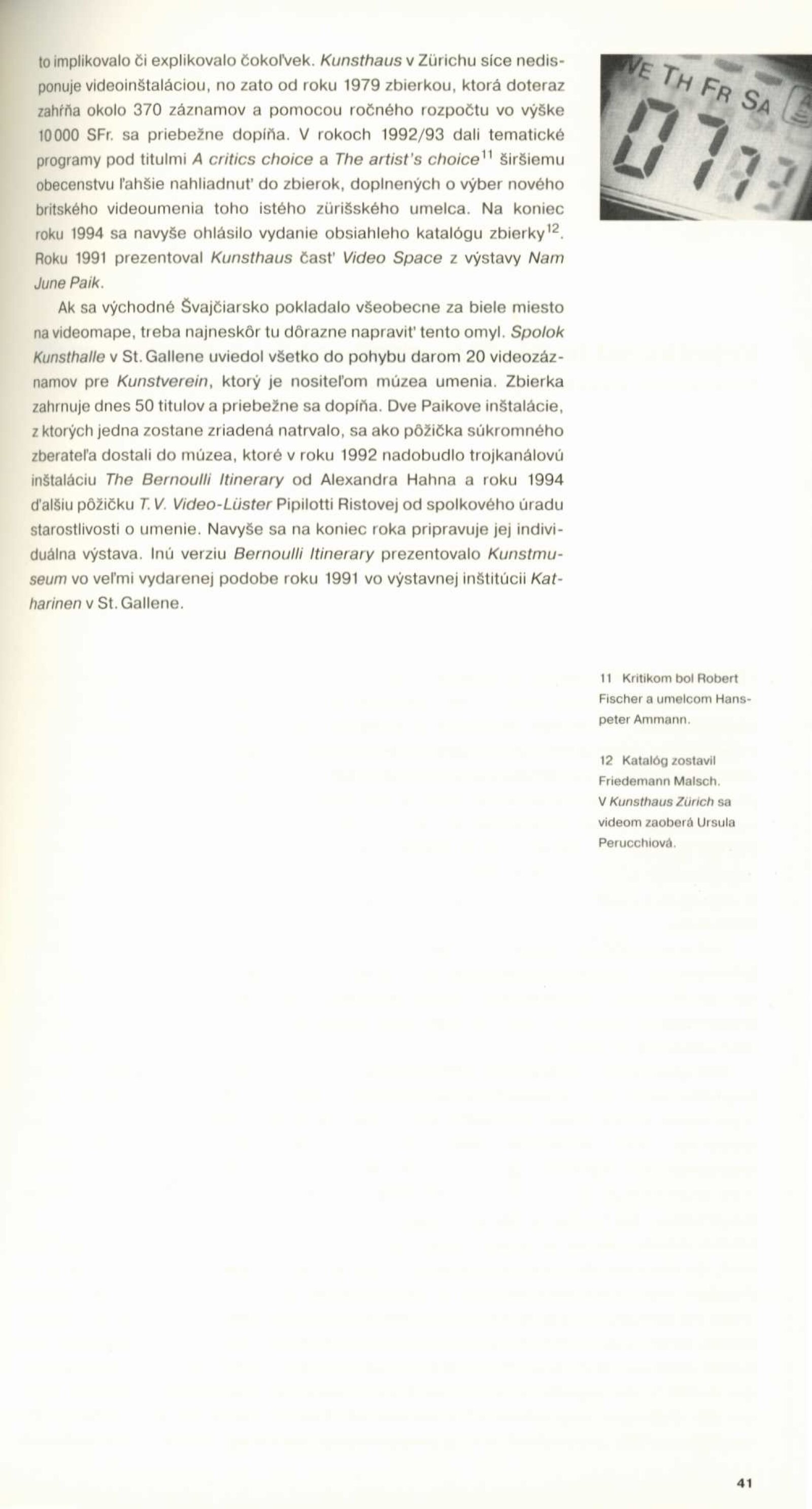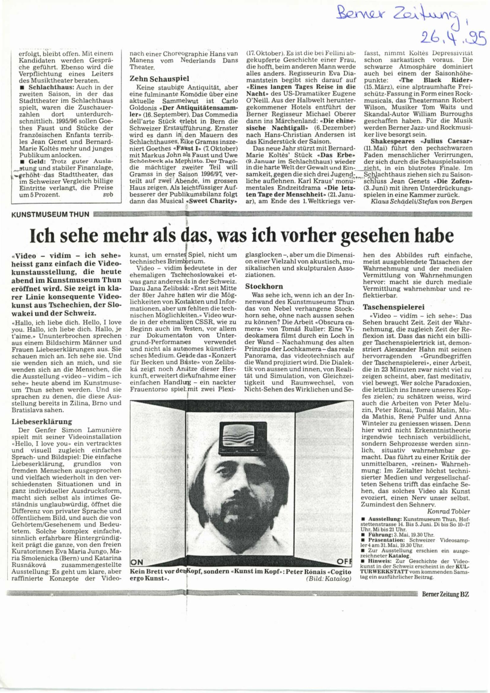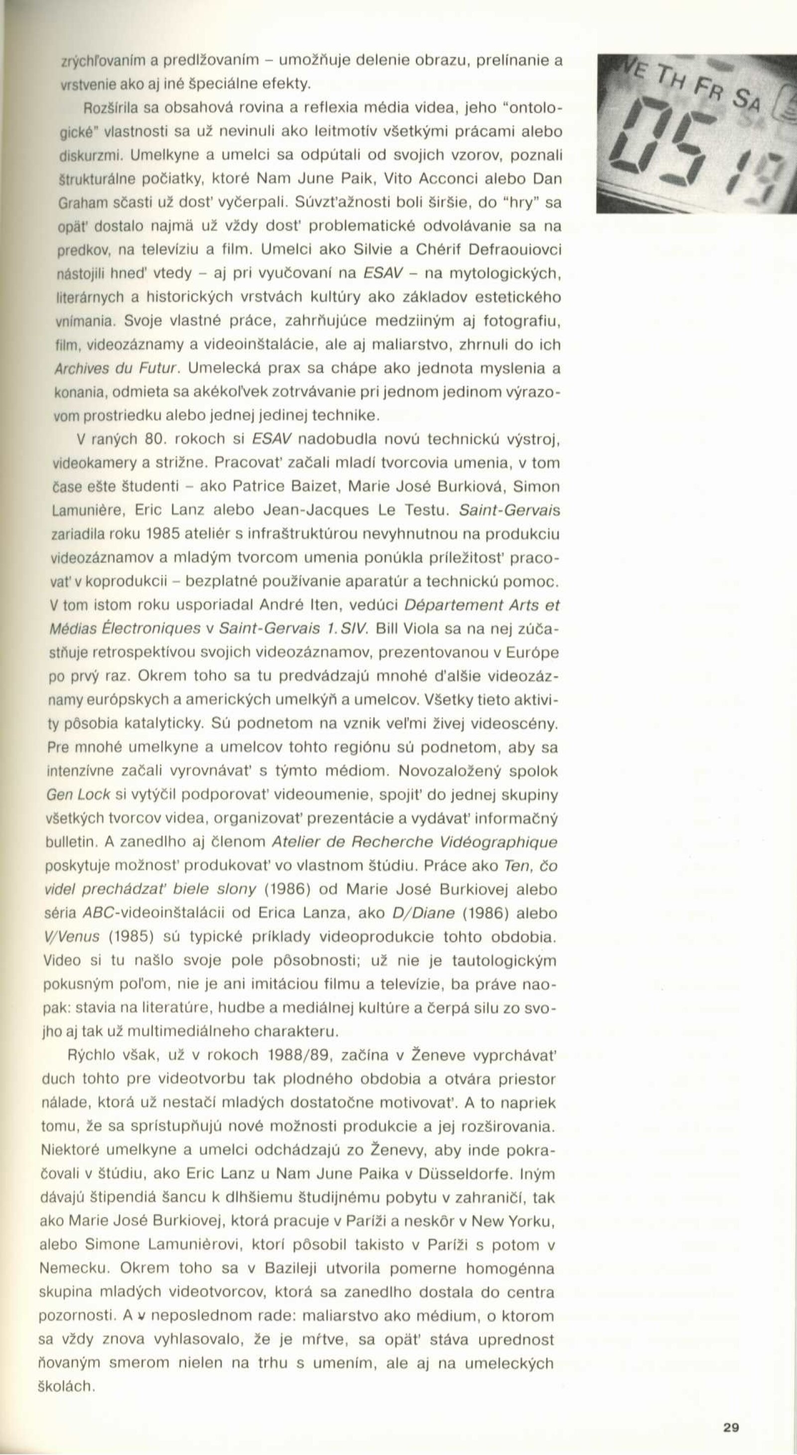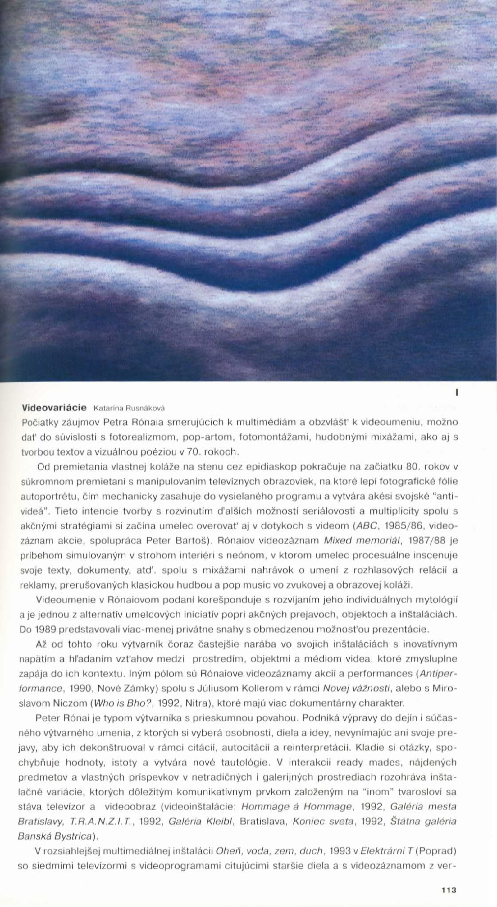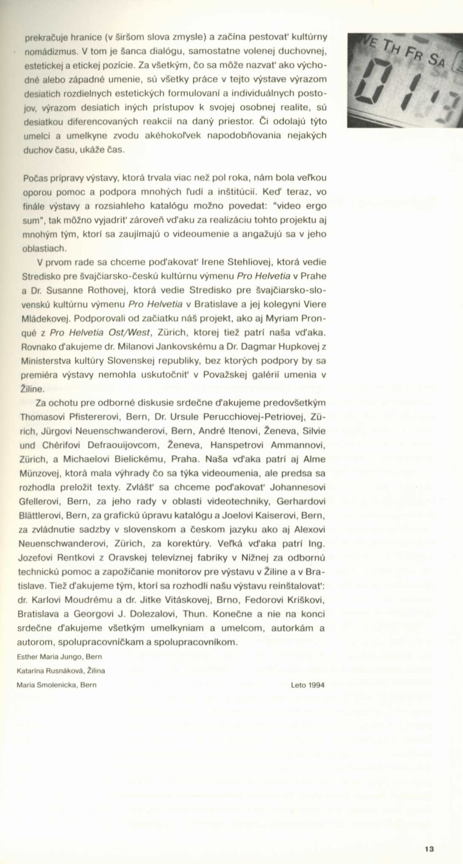 Video vidím ich sehe, slovenské, české a švajciarské videoumenie, eds. Esther Maria Jungo, Maria Smolenicka, Gerhard Blättler, Bern 1994, 145 s.