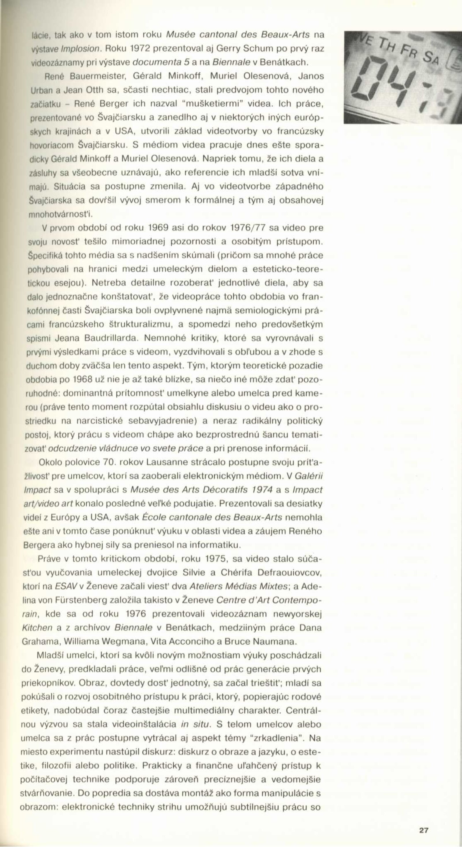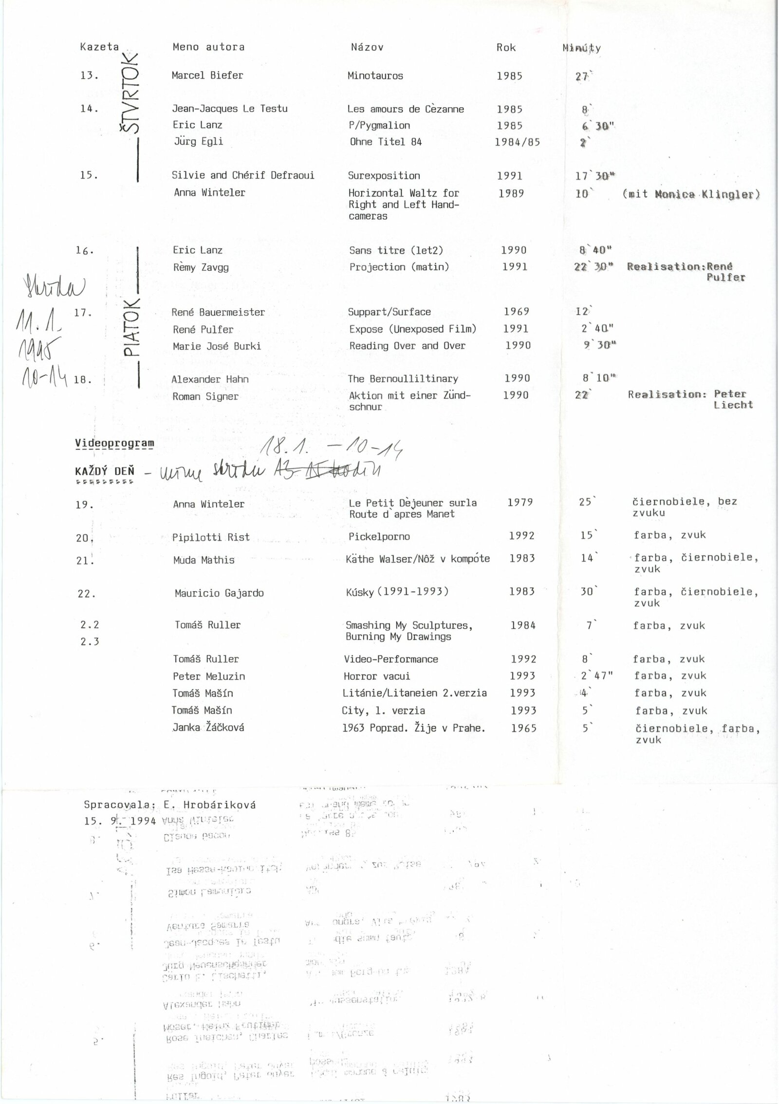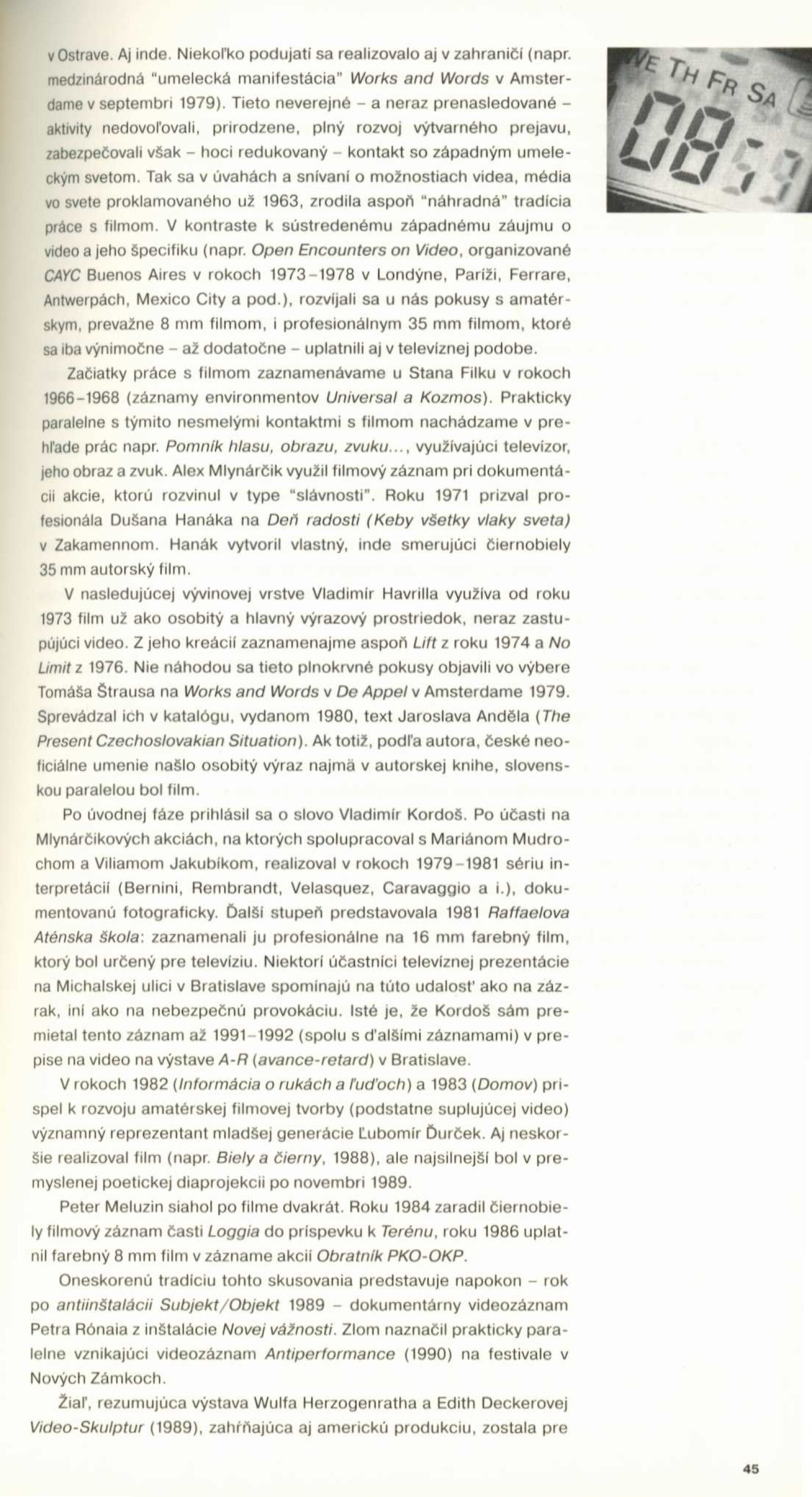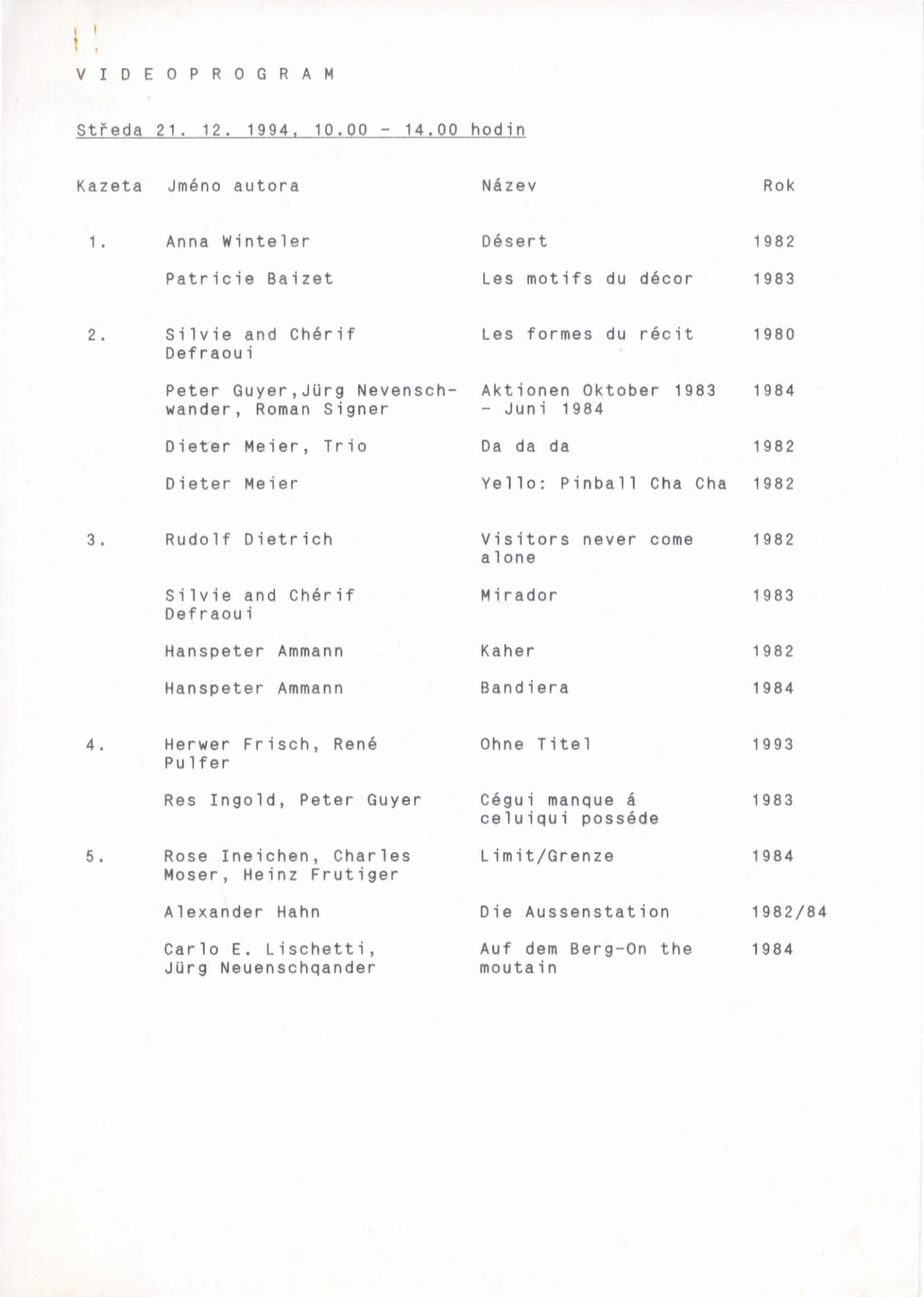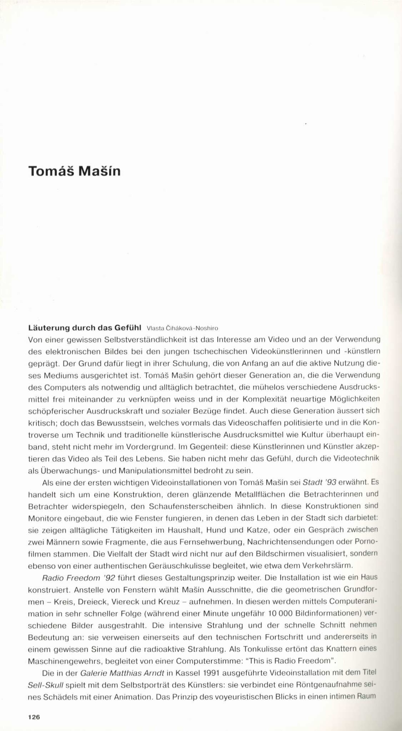 Video vidím ich sehe, slovenské, české a švajciarské videoumenie, eds. Esther Maria Jungo, Maria Smolenicka, Gerhard Blättler, Bern 1994, 145 s.