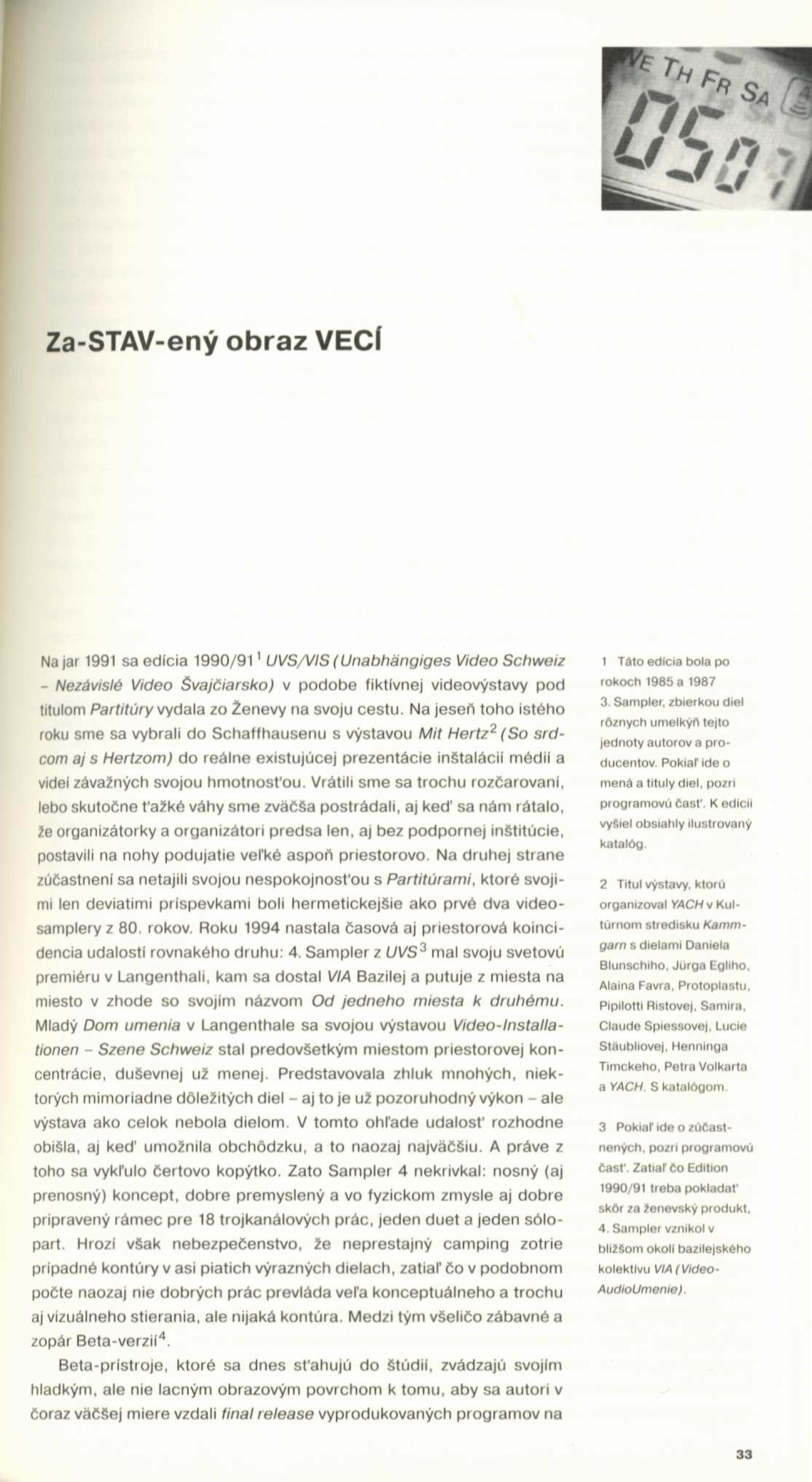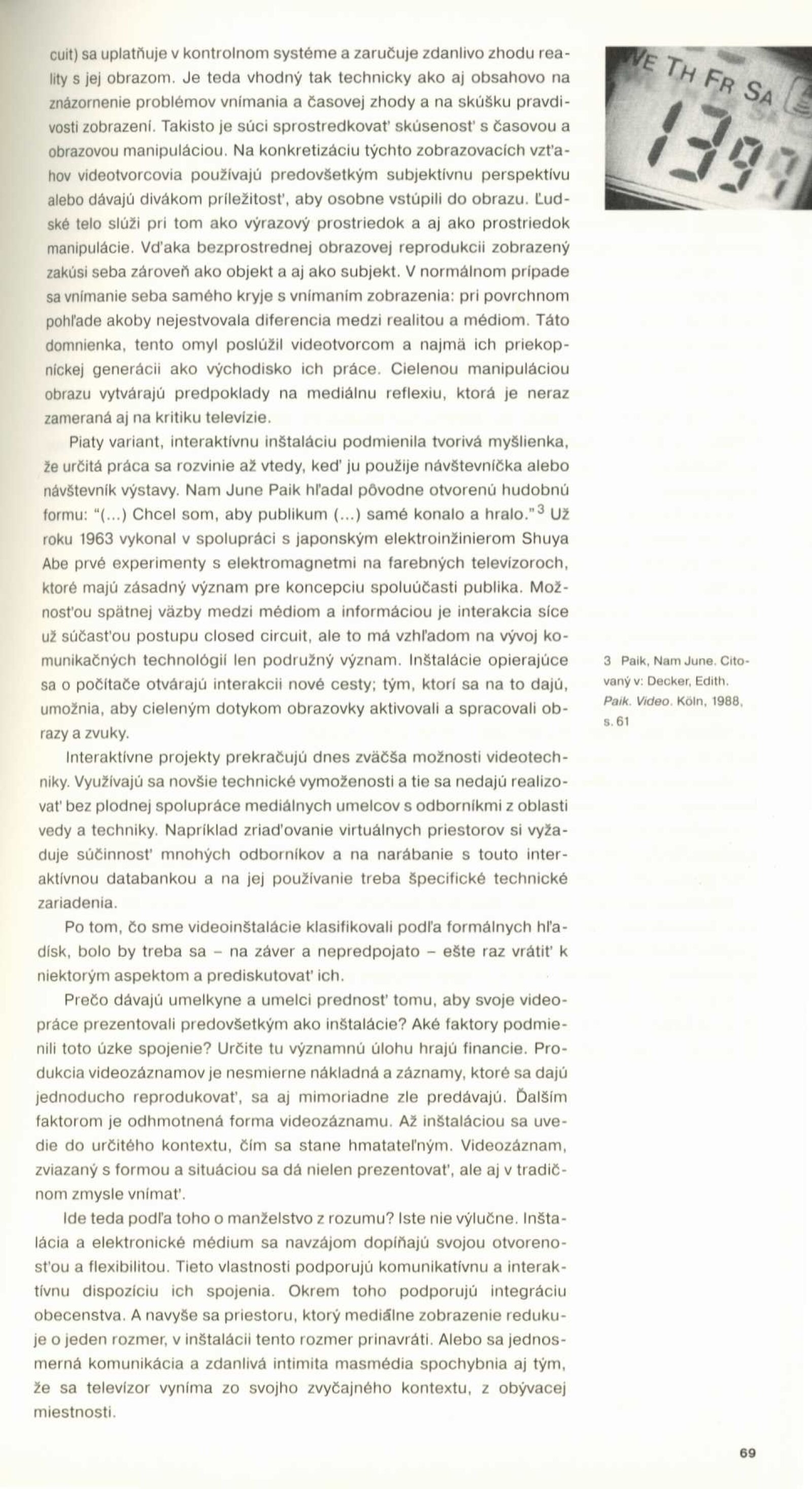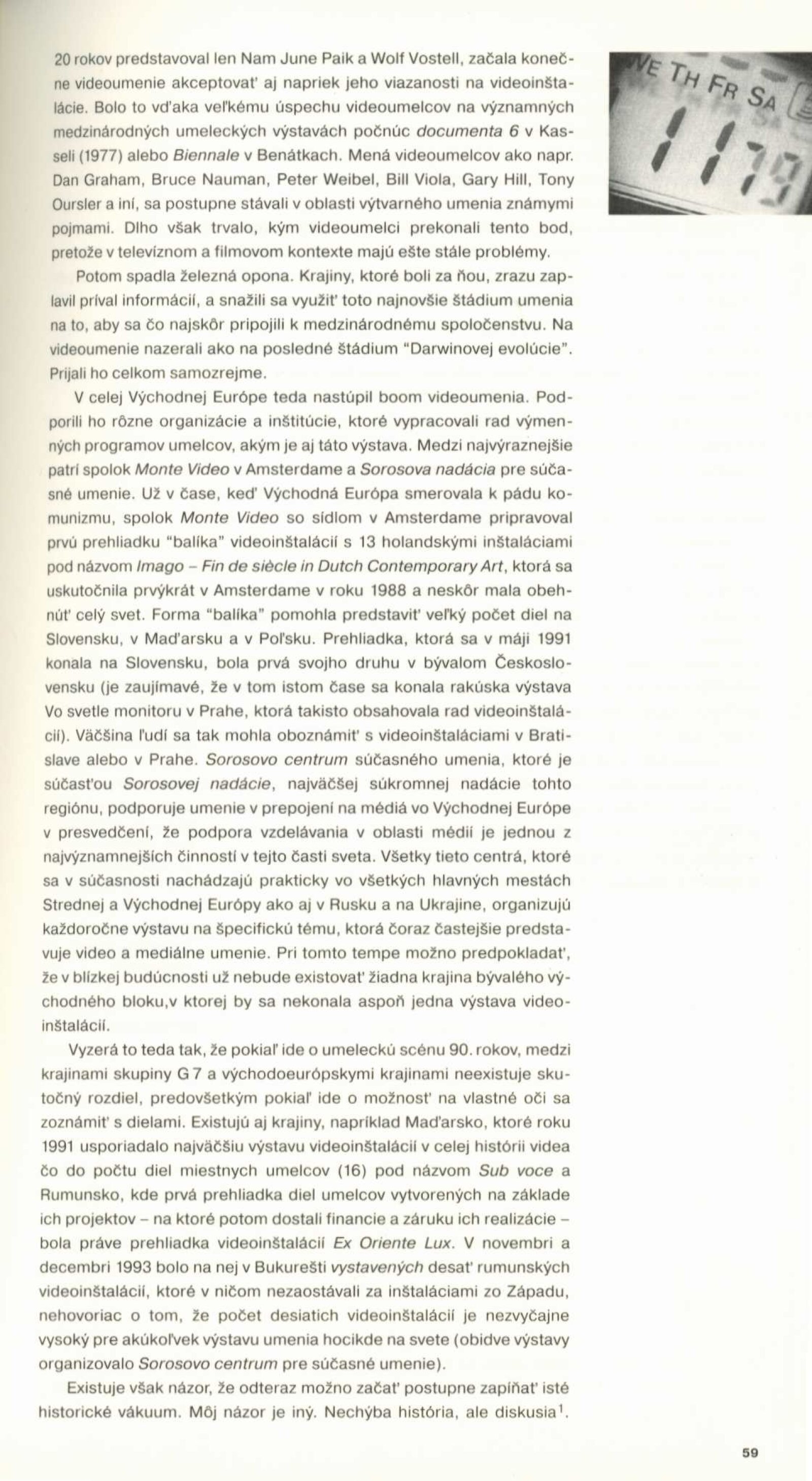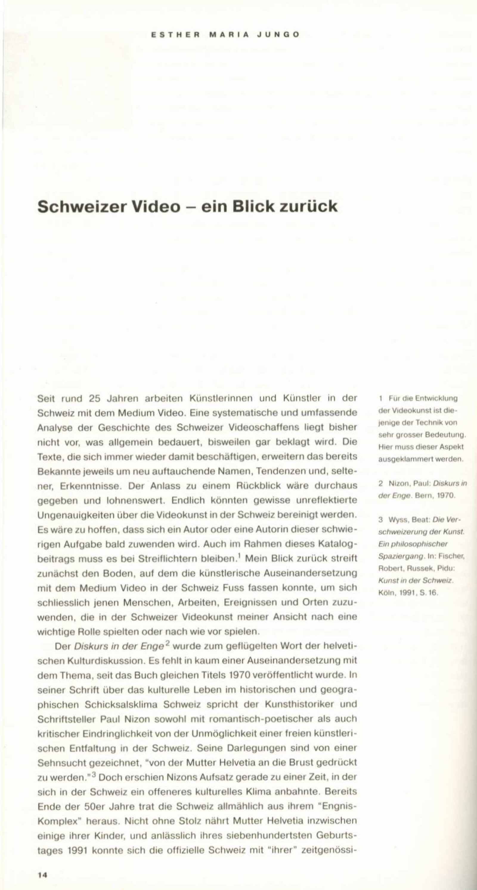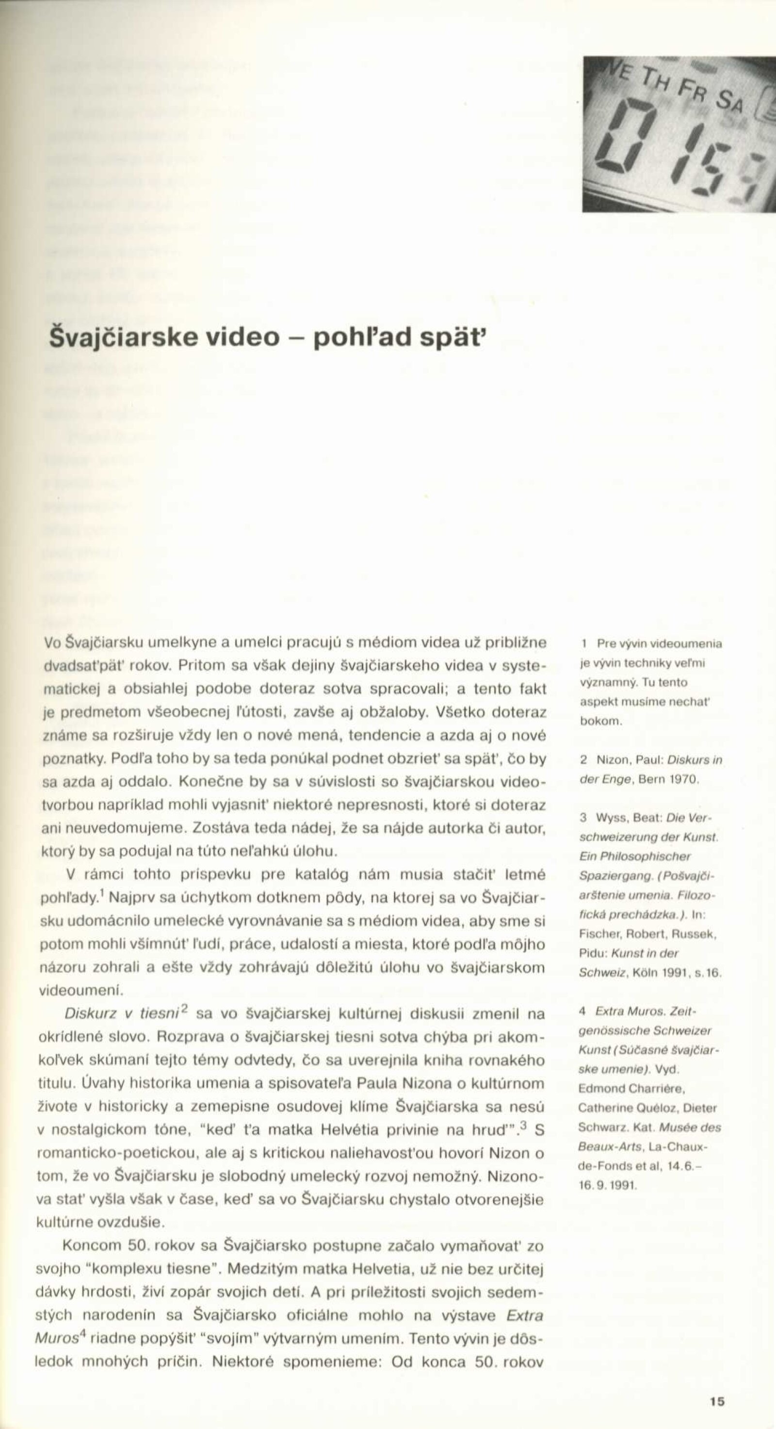 Video vidím ich sehe, slovenské, české a švajciarské videoumenie, eds. Esther Maria Jungo, Maria Smolenicka, Gerhard Blättler, Bern 1994, 145 s.