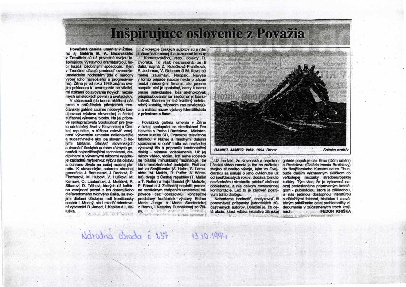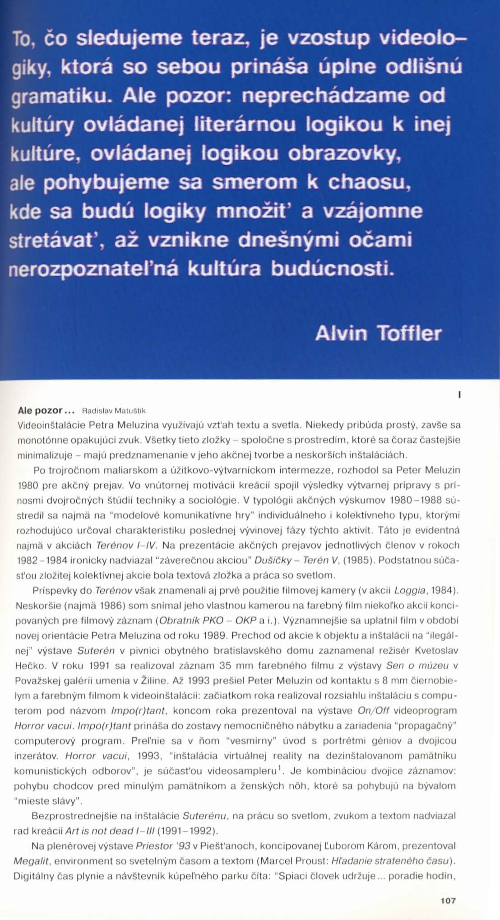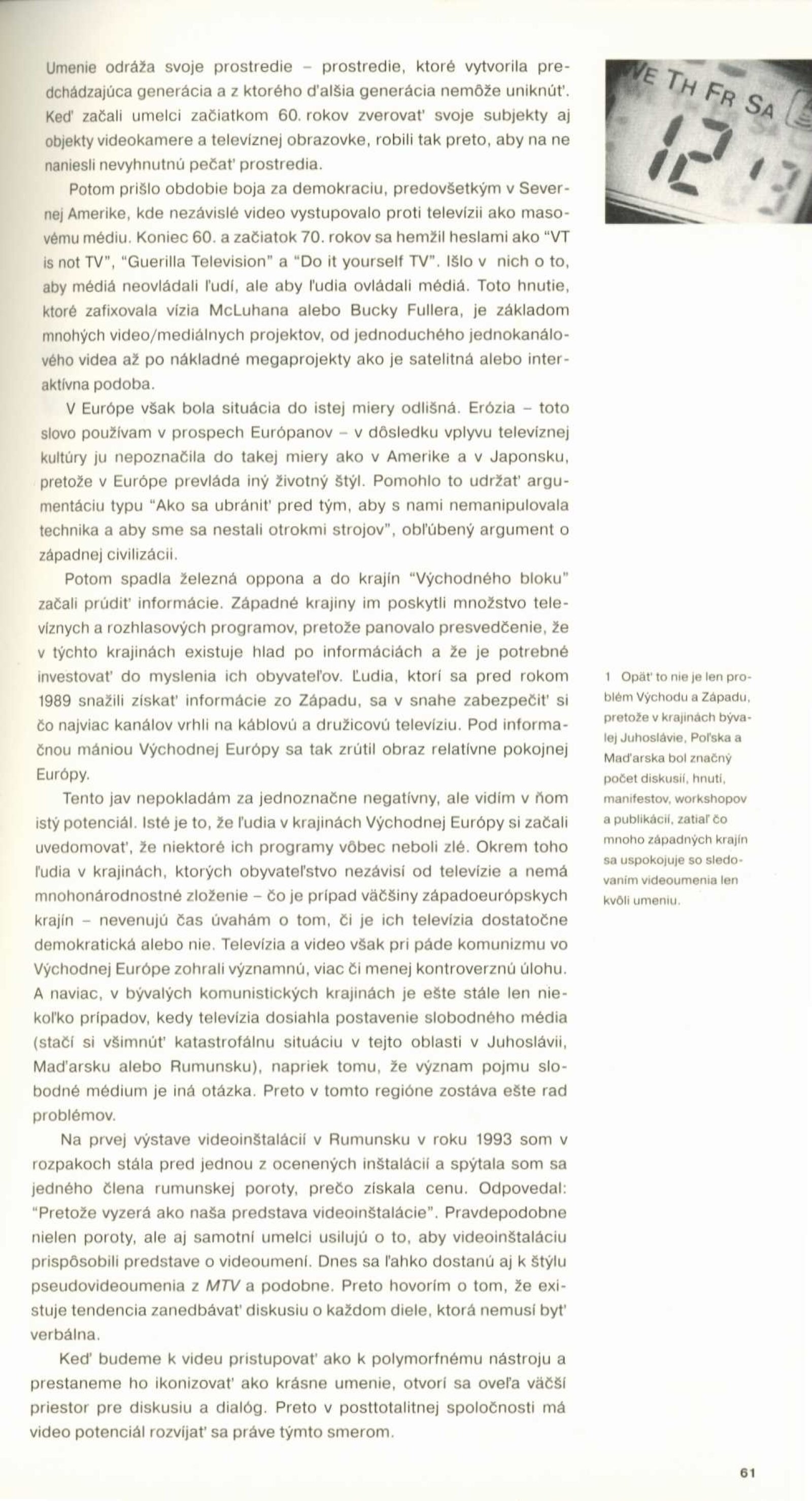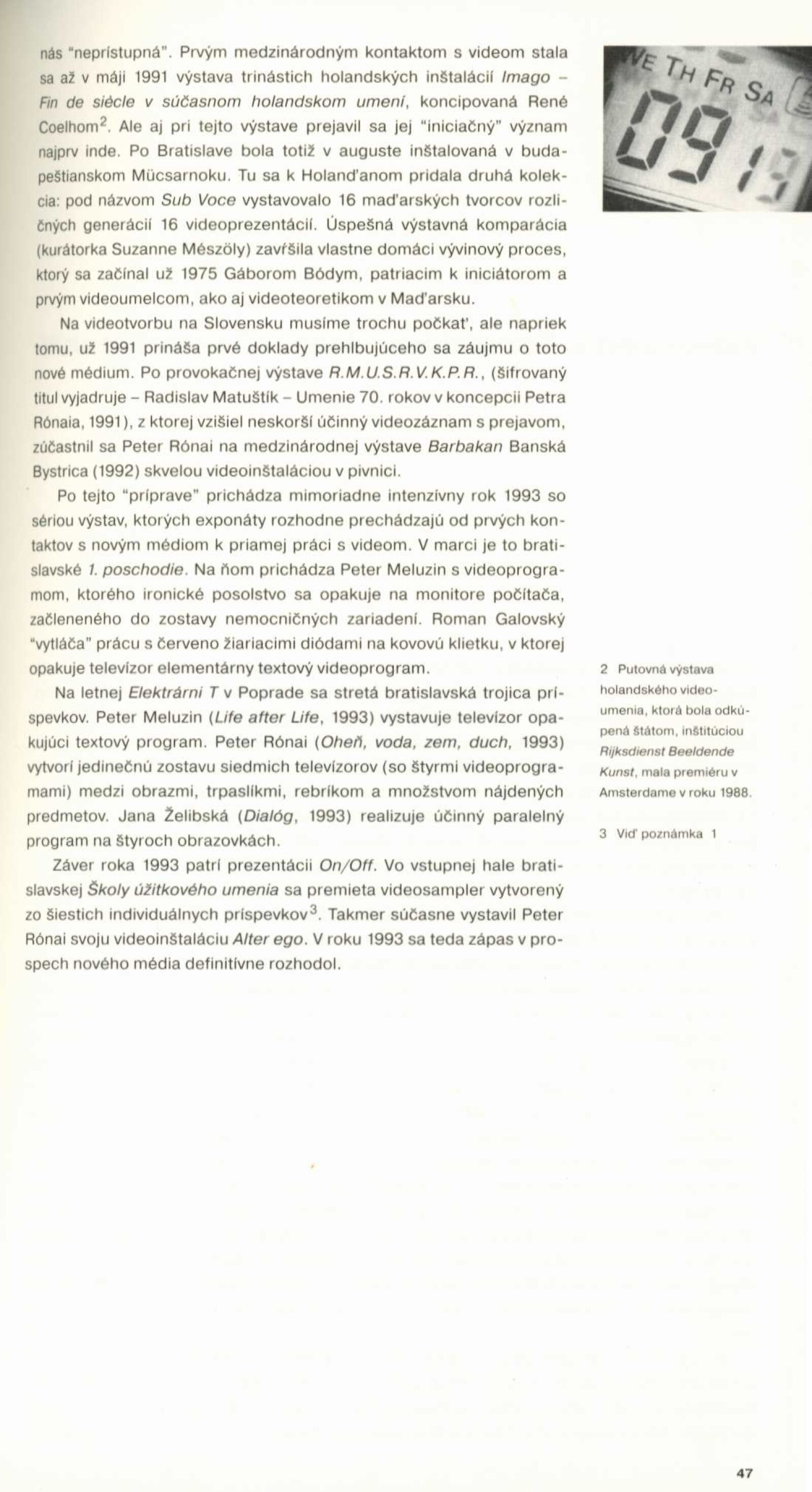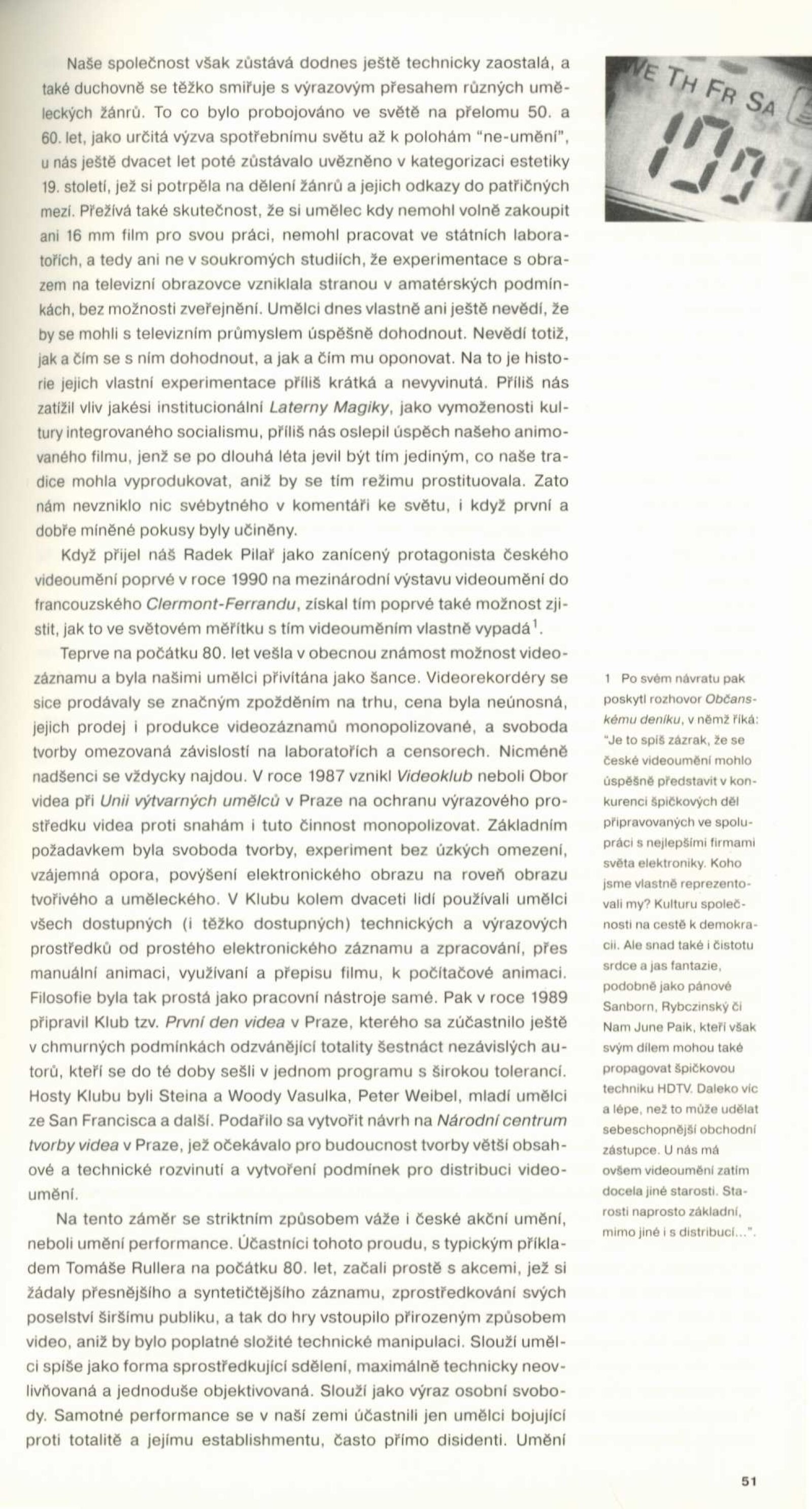 Video vidím ich sehe, slovenské, české a švajciarské videoumenie, eds. Esther Maria Jungo, Maria Smolenicka, Gerhard Blättler, Bern 1994, 145 s.