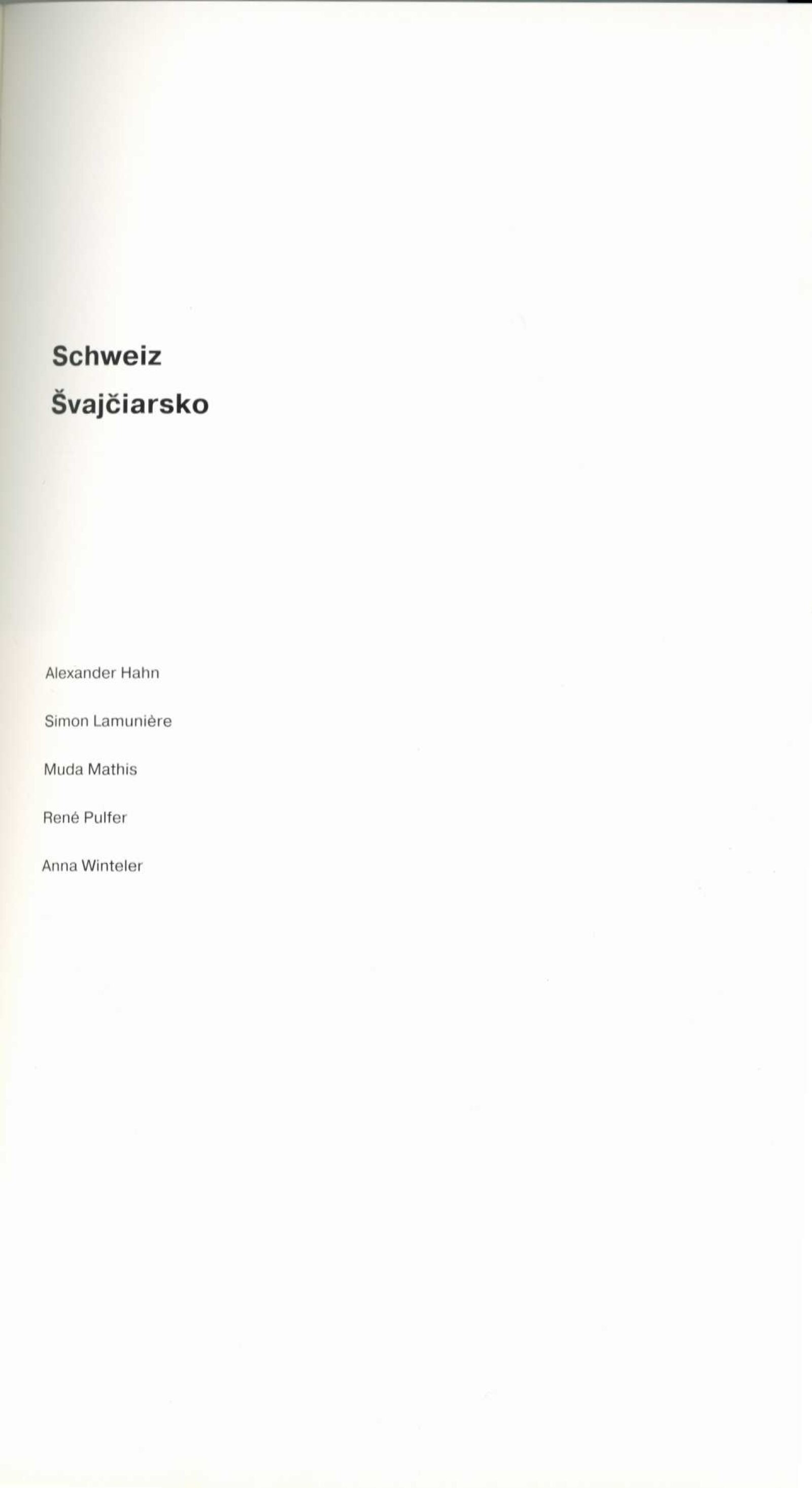 Alexander Hahn, Simon Lamunière, Muda Mathis, Tomáš Mašín, Peter Meluzin, René Pulfer, Peter Rónai, Tomáš Ruller, Anna Winteler, Jana Želibská