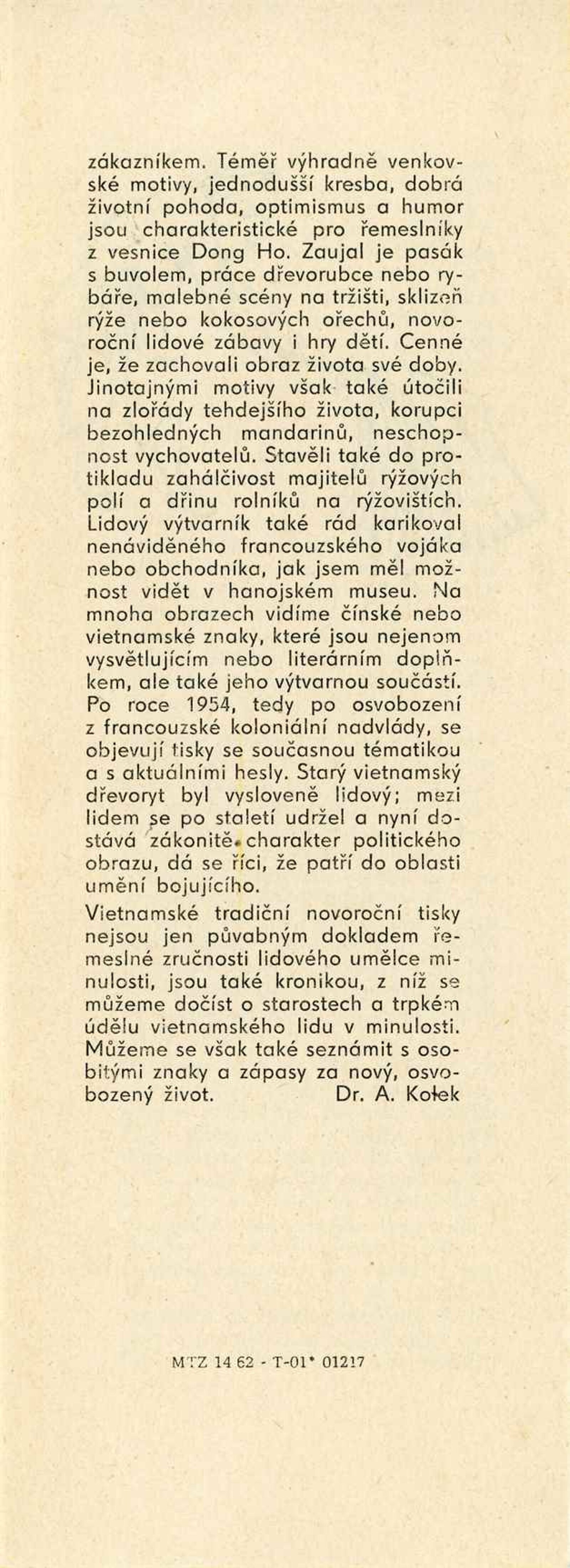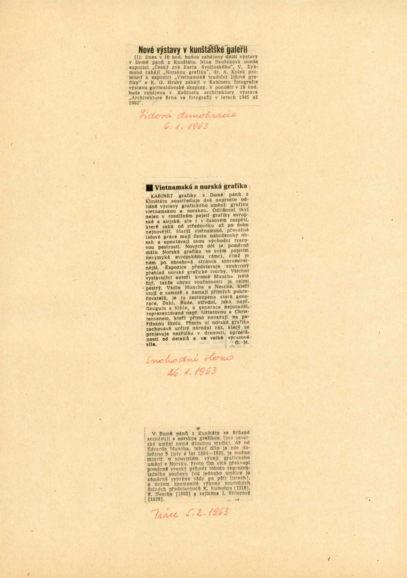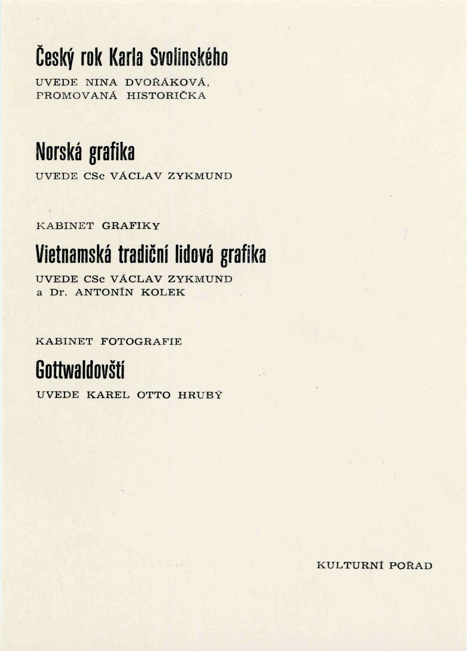 Vietnamská tradiční lidová grafika: Dům umění města Brna / Dům pánů z Kunštátu, 39. výstava Kabinetu grafiky, 6. 1. – 3. 2. 1963 / Text: Antonín Kolek. – Brno:DUmB, 1963. – skládačka, 8 s., DPK 176