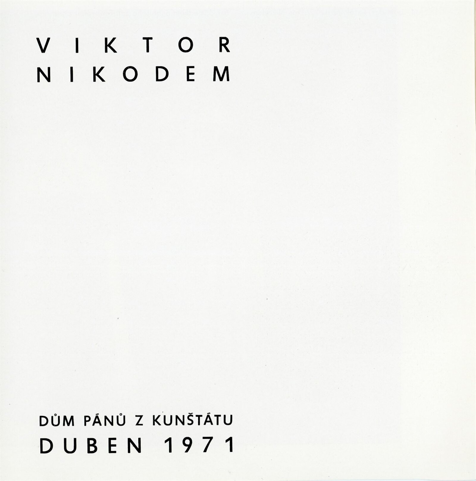 Viktor Nikodem. Obrazy a kresby: Dům umění města Brna / Dům pánů z Kunštátu, 2. 4. – 2. 5. 1971 / Text: Nina Dvořáková. – Brno: DUmB, 1971. – 14 s., obr., DPK 467. – MZK; MG; MMB