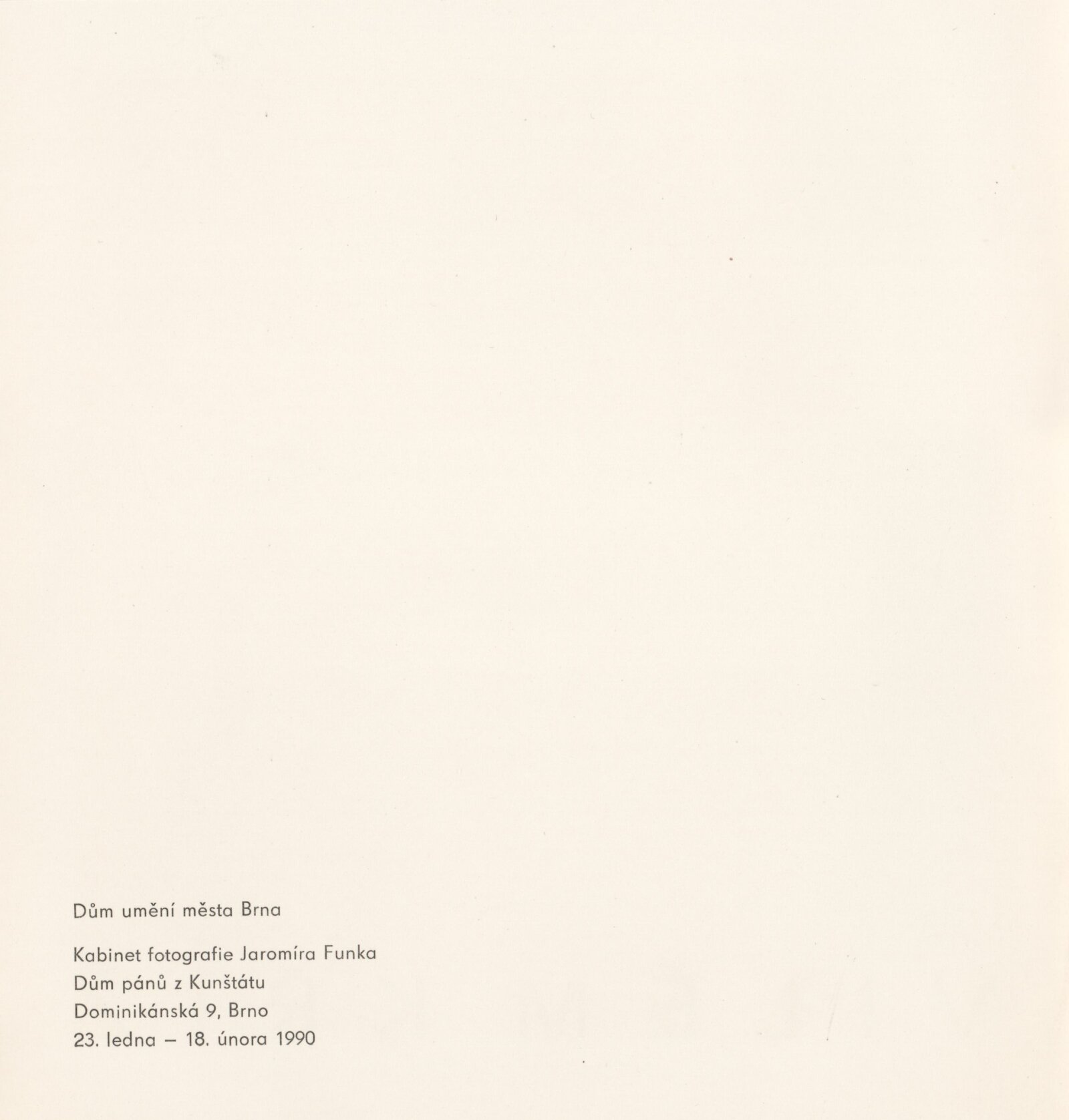 Vilém Kříž: Dům umění města Brna / Dům pánů z Kunštátu, Kabinet fotografie Jaromíra Funka, 23. 1. – 18. 2. 1990 / Text: Vladimír Remeš. – Brno: DUmB, 1990. – [8] s., obr., DPK 930. – MZK; MG