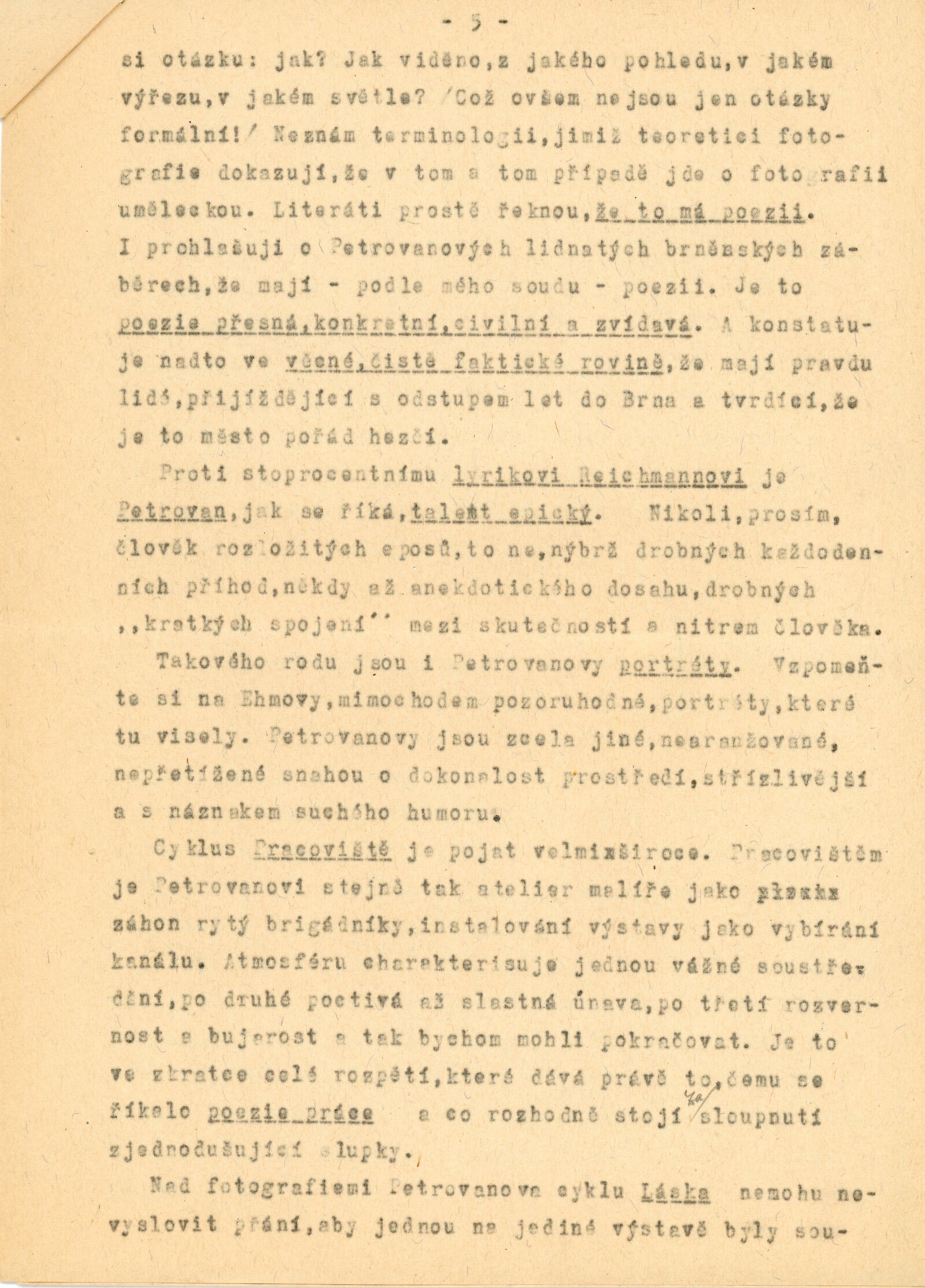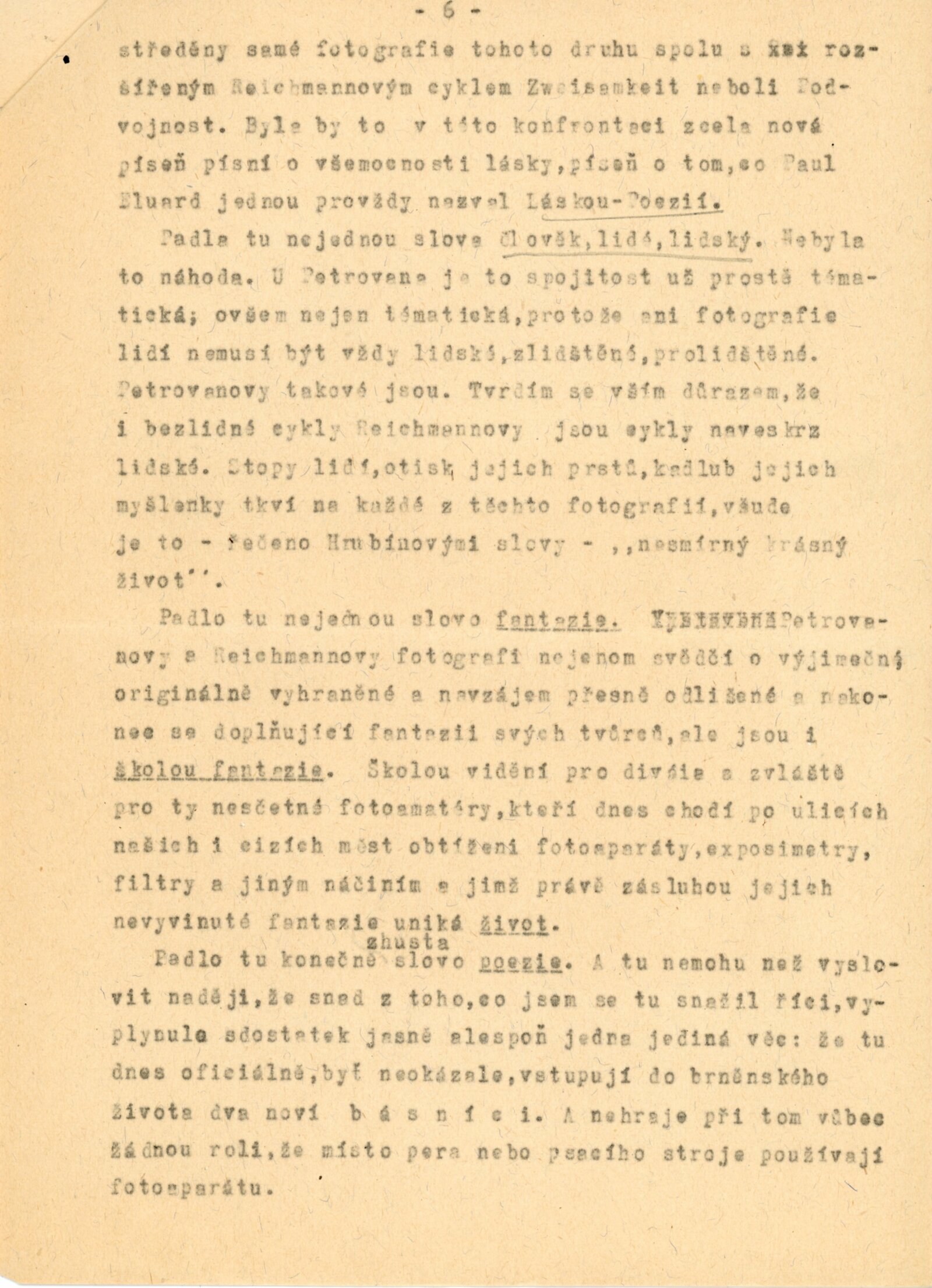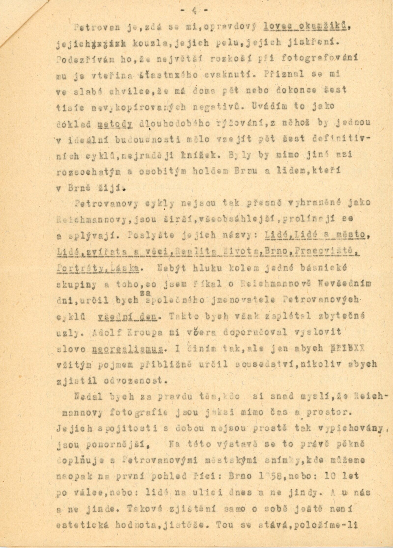 pozvánka, úvodní slovo na zahájení výstavy (Ludvík Kundera), báseň „Fotografie z Pavlova“ (Jan Skácel), fotografie z vernisáže, provozní korespondence, recenze v tisku
