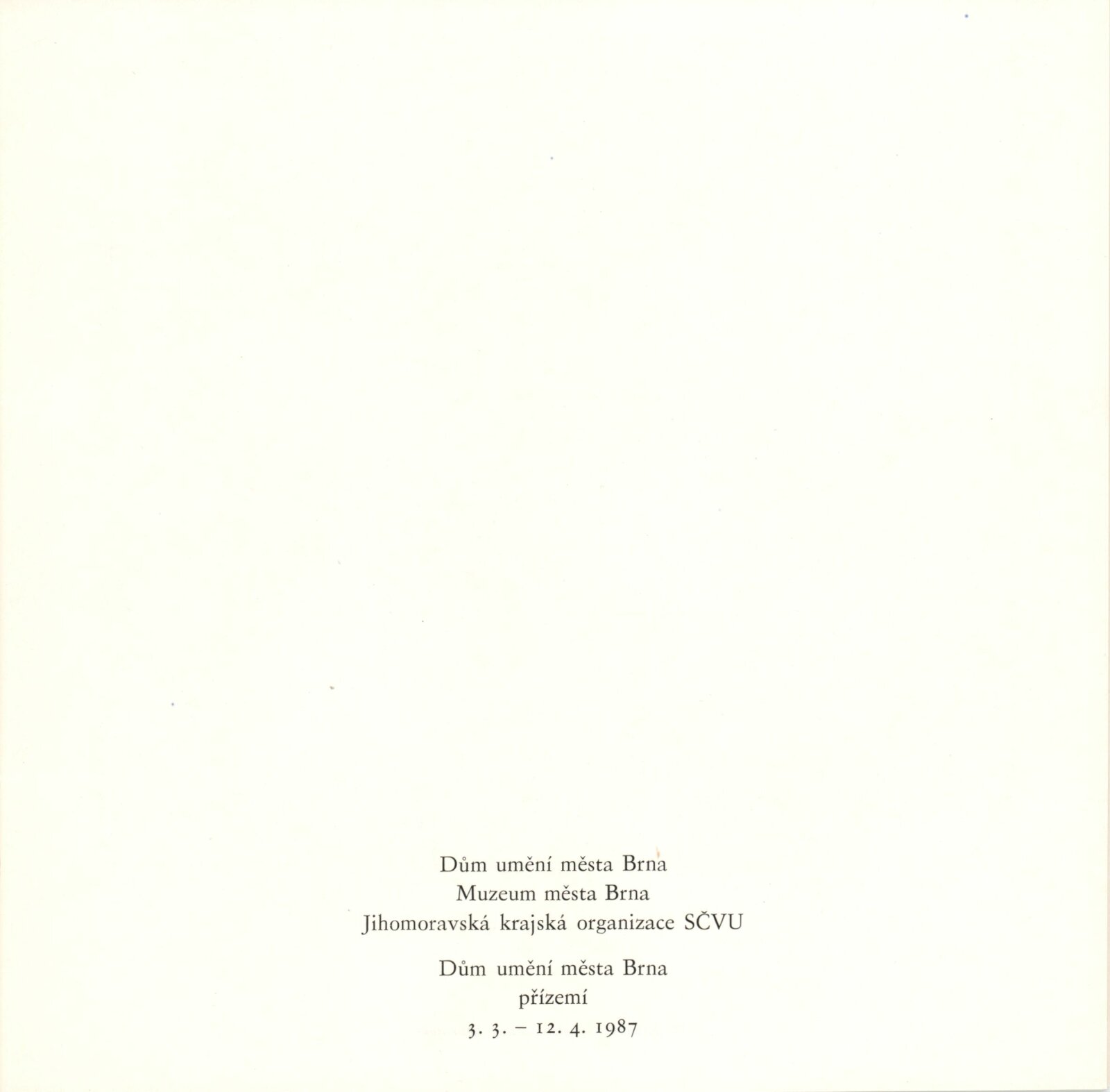 pozvánka, katalog, informace o repríze výstavy, pojistný seznam děl, provozní korespondence, hospodářská smlouva, žádost o povolení výstavy, recenze v tisku, pozvánka na výstavu Vojtěcha Štolfy v MG v Brně (1987)