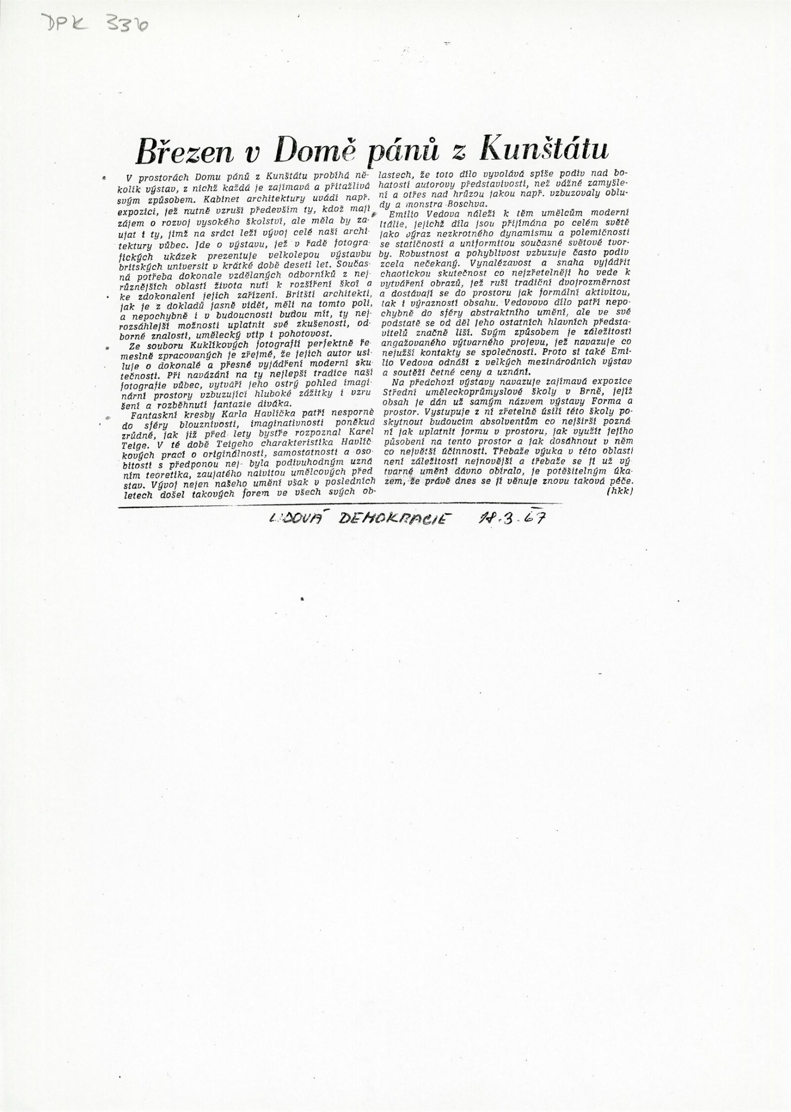 Výstava prací katedry urbanismu Vysokého učení technického v Brně: Dům umění města Brna/ Dům pánů z Kunštátu, Kabinet architektury Svazu architektů ČSSR, 18. 2. – 26. 2. 1967/ Brno: Svaz architektů ČSSR, 1967. – 4 s., obr., DPK 330