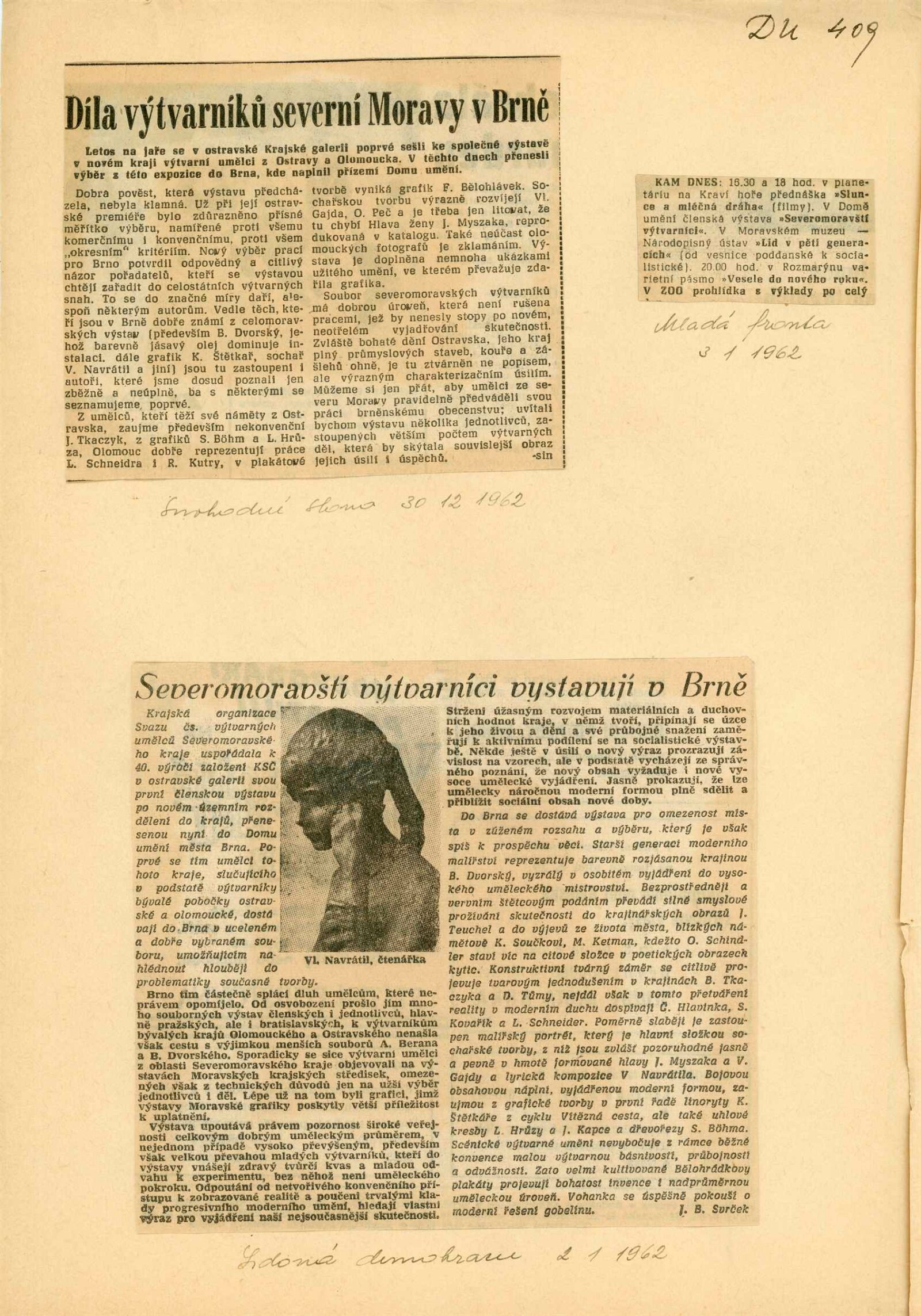 podmínky pro uspořádání výstavy, fotografie z výstavy, korespondence (o přípravě výstavy, další provozní dohody), recenze v tisku, nabídka výstavy od SČVU Ostrava