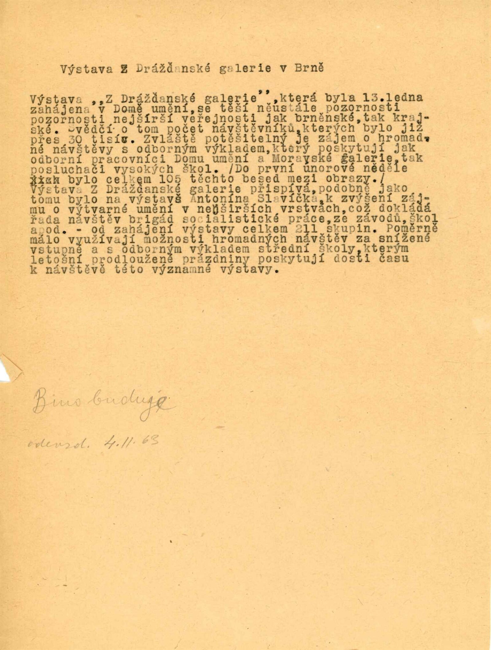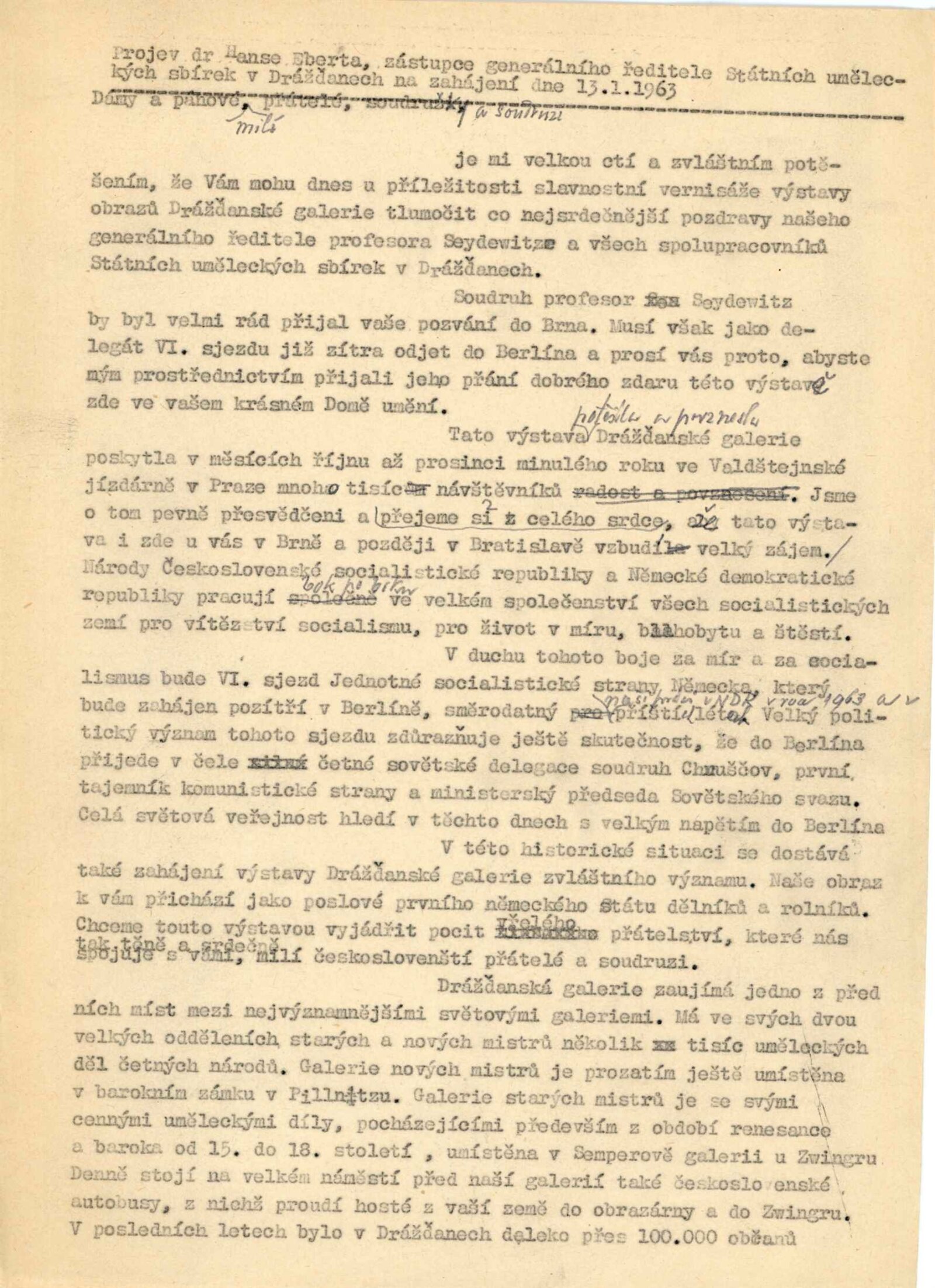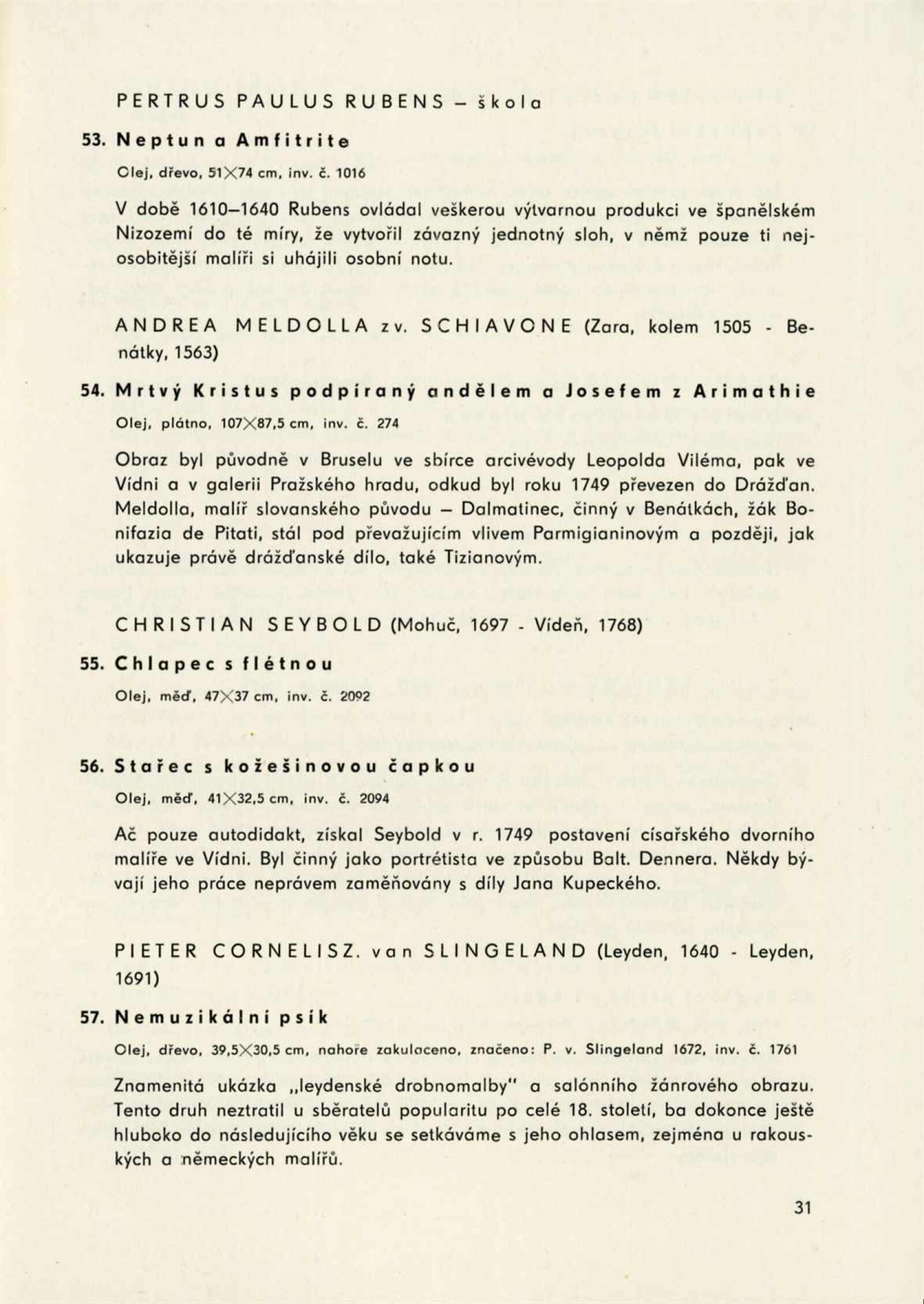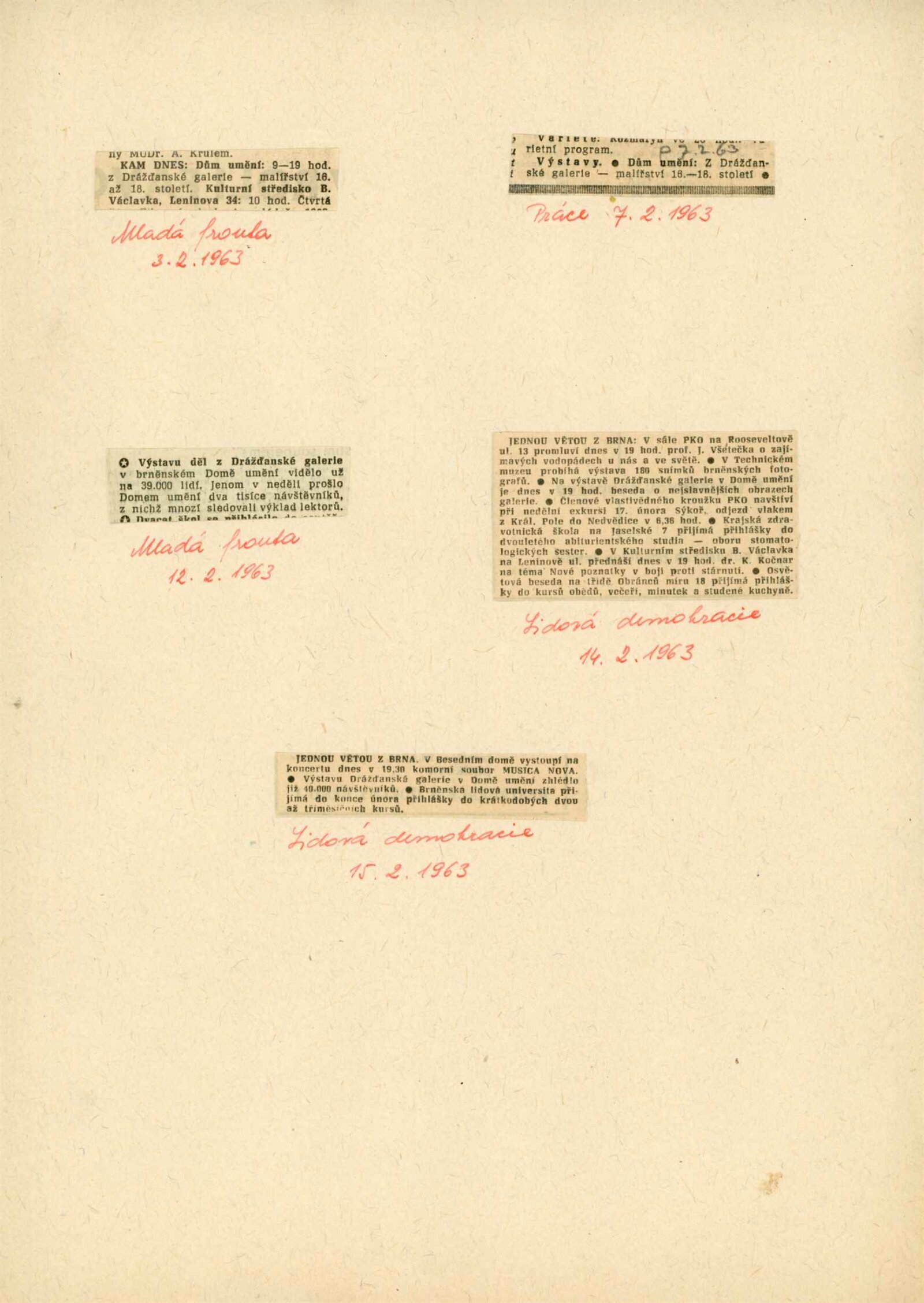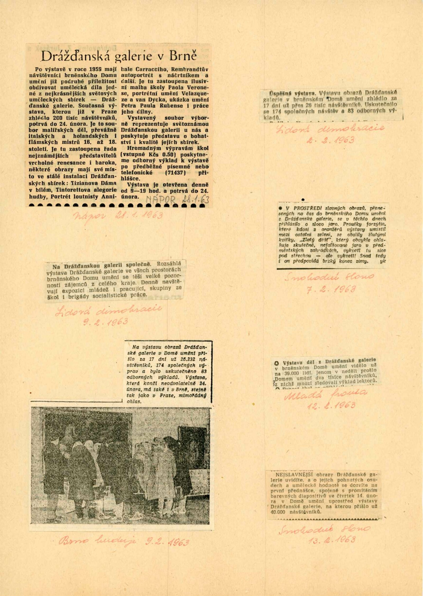 Z drážďanské galerie. Malířství 16.–18.století: Dům umění města Brna, 13. 1. – 24. 2. 1963 / Texty: Max Seydewitz, Jaromír Šíp. – Brno: DUmB, 1963. – 35 s., obr., odborné popisy, DU 420. – MG