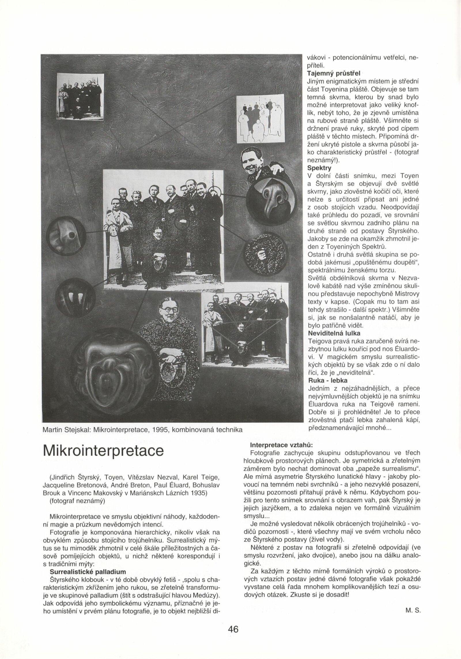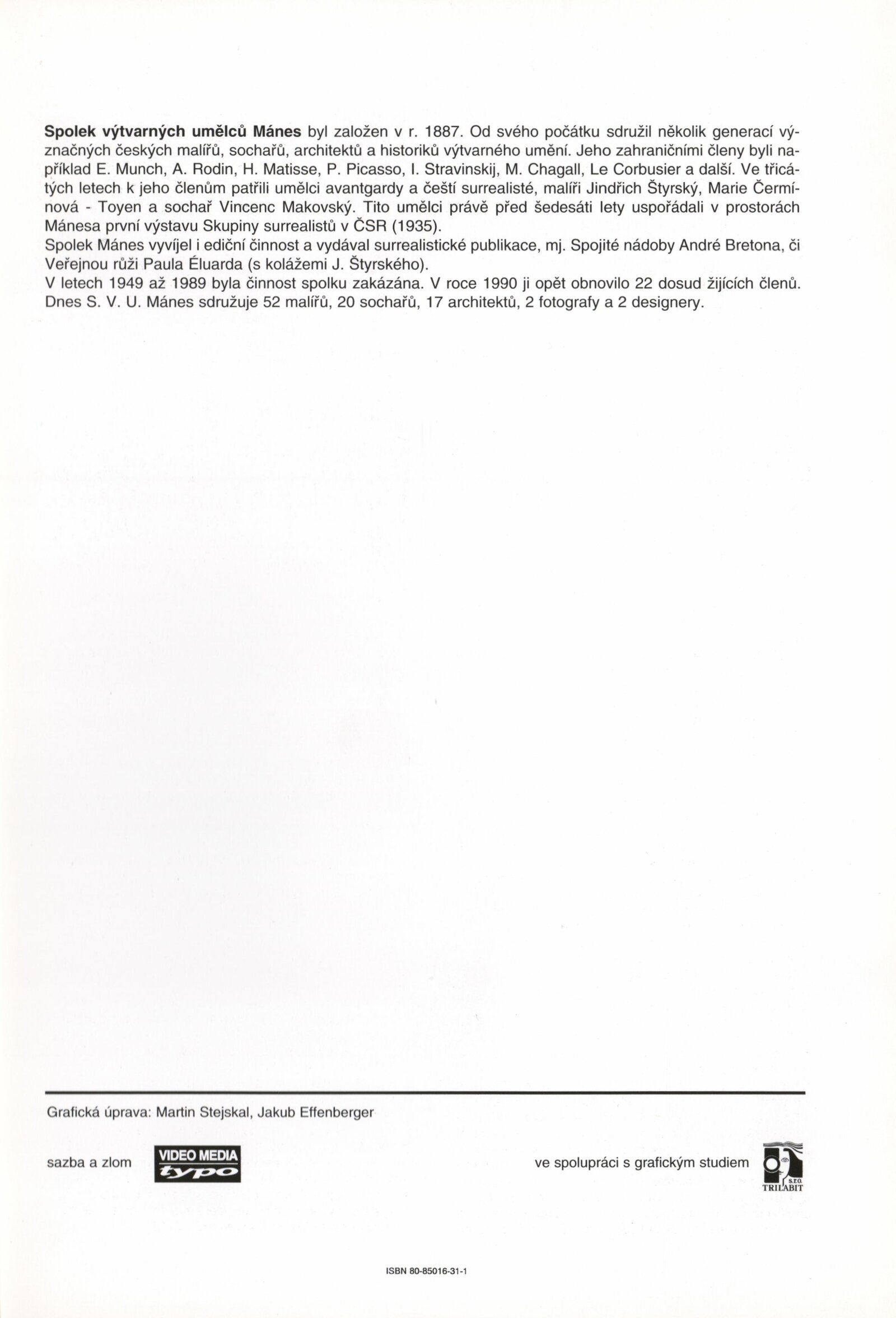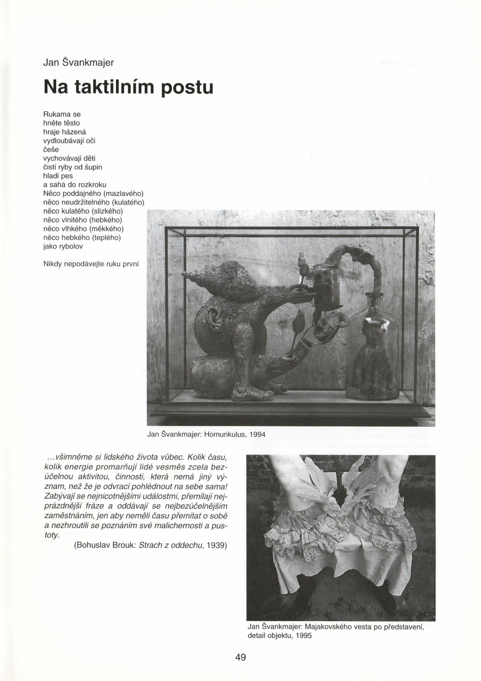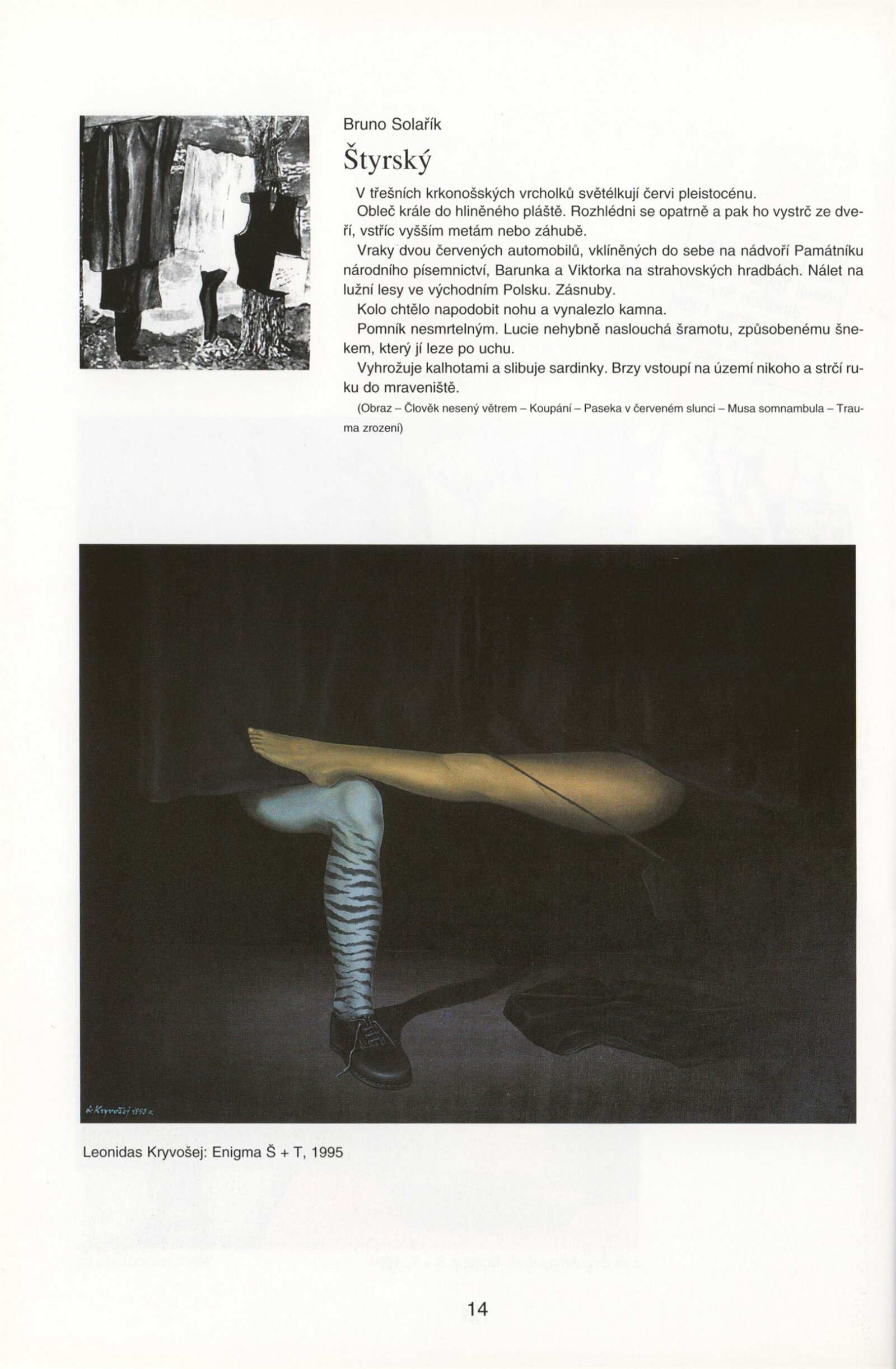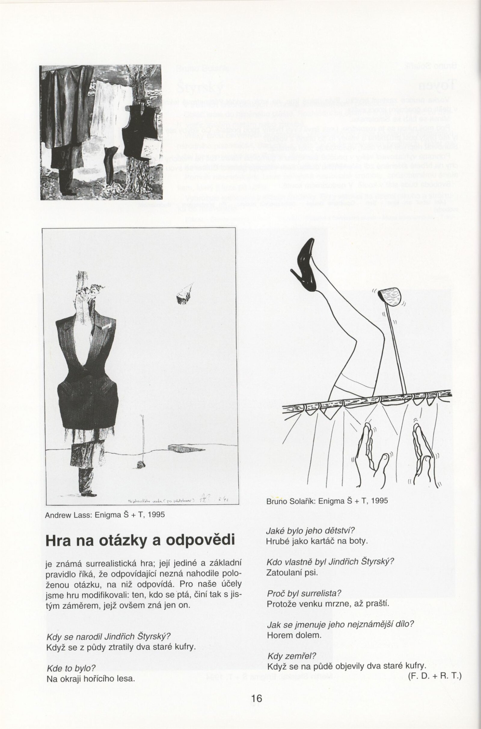 Z jednoho těsta. Pocta poválečné skupině surrealistů. Tématická výstava českých a slovenských surrealistů: Dům umění města Brna, 1. 7. – 3. 8. 1997 / Převzatý katalog. Z jednoho těsta. Pocta skupině surrealistů v ČSR. Tématická výstava Skupiny českých a slovenských surrealistů a Surrealistické skupiny A. I. V. / Texty: různých autorů. – Praha: SVU Mánes, 1997. – 50 s., obr., DU 1056. – MZK