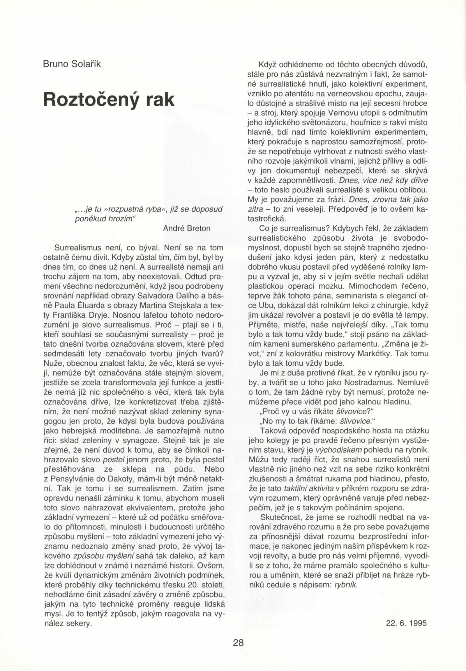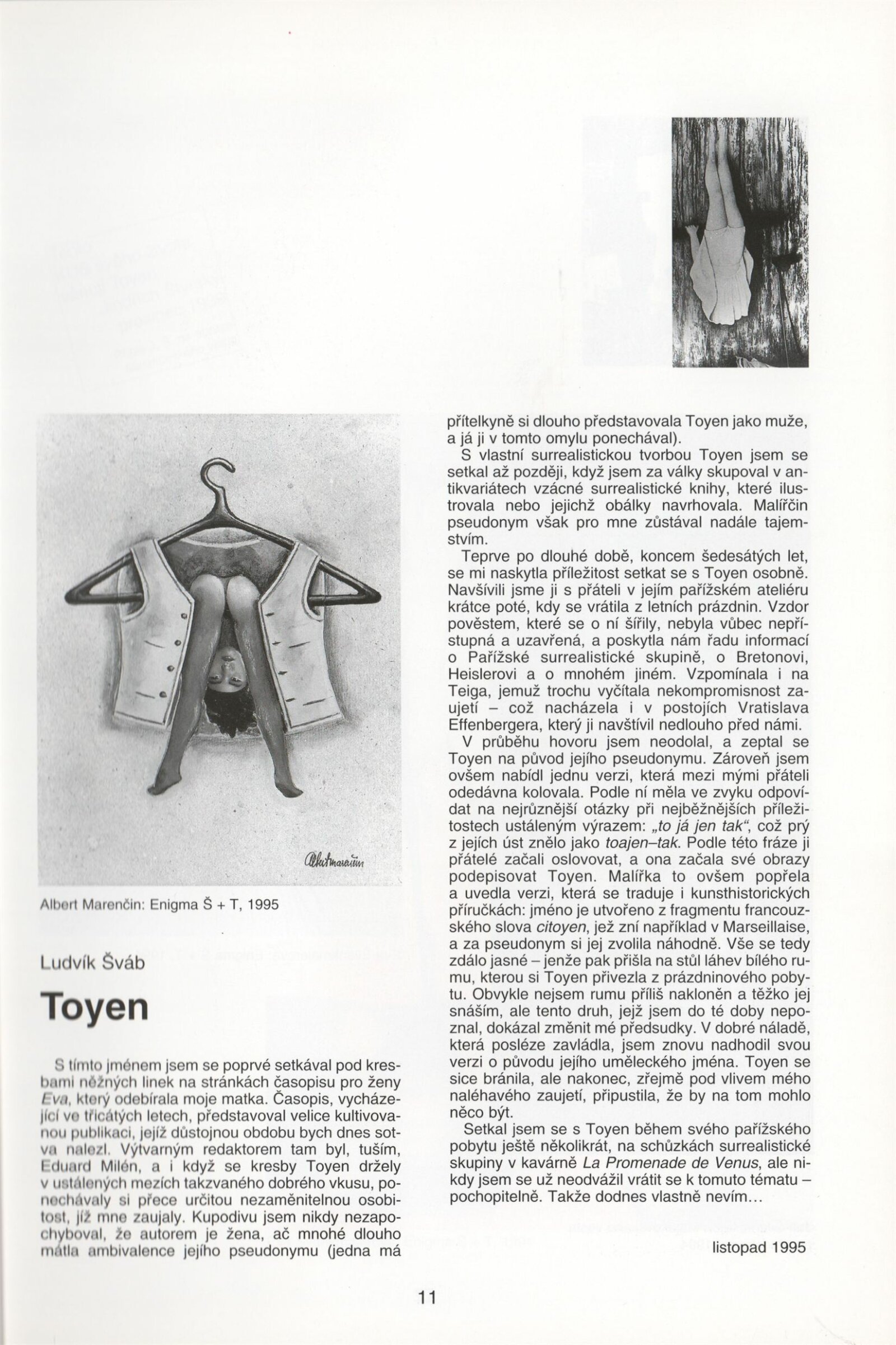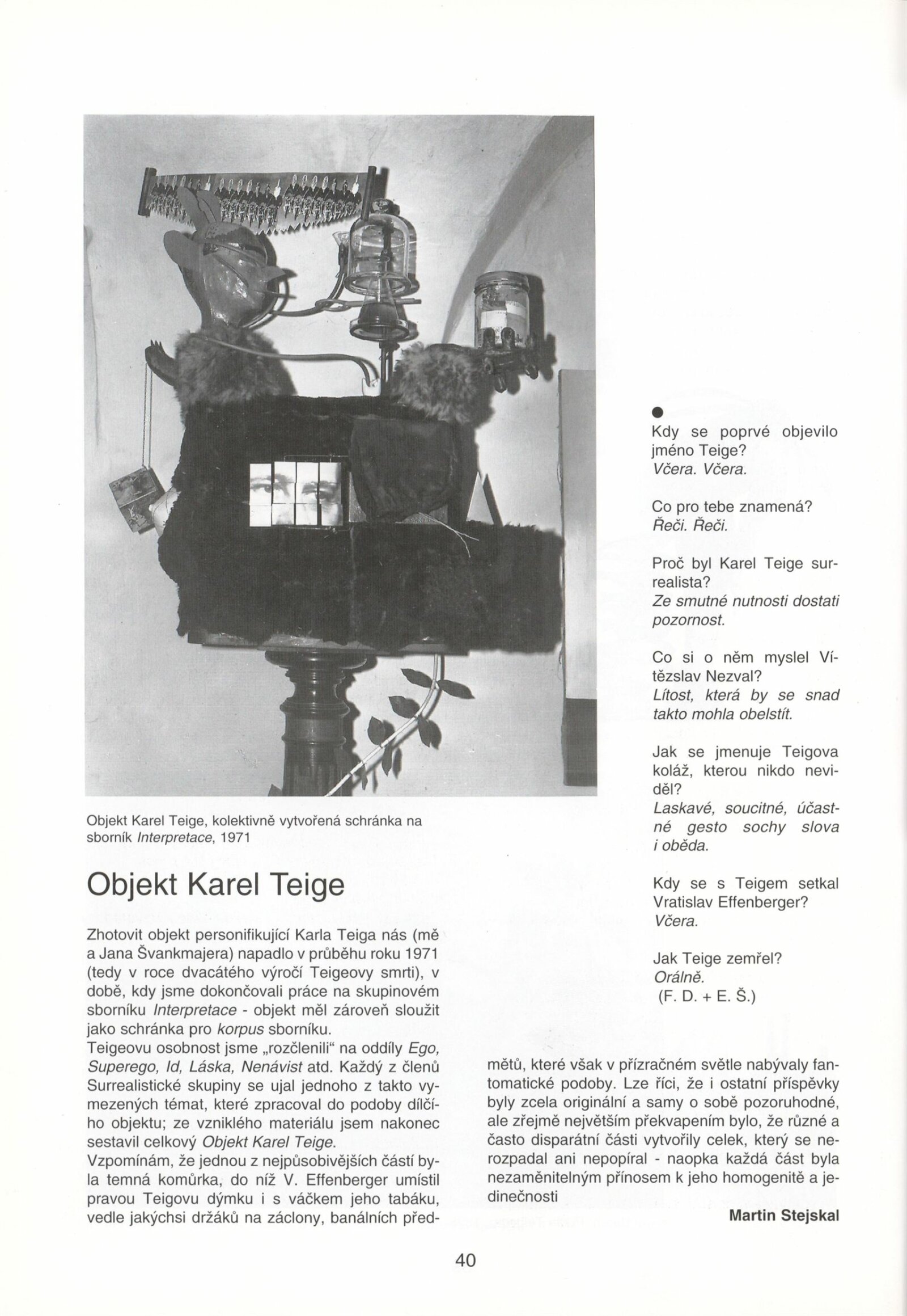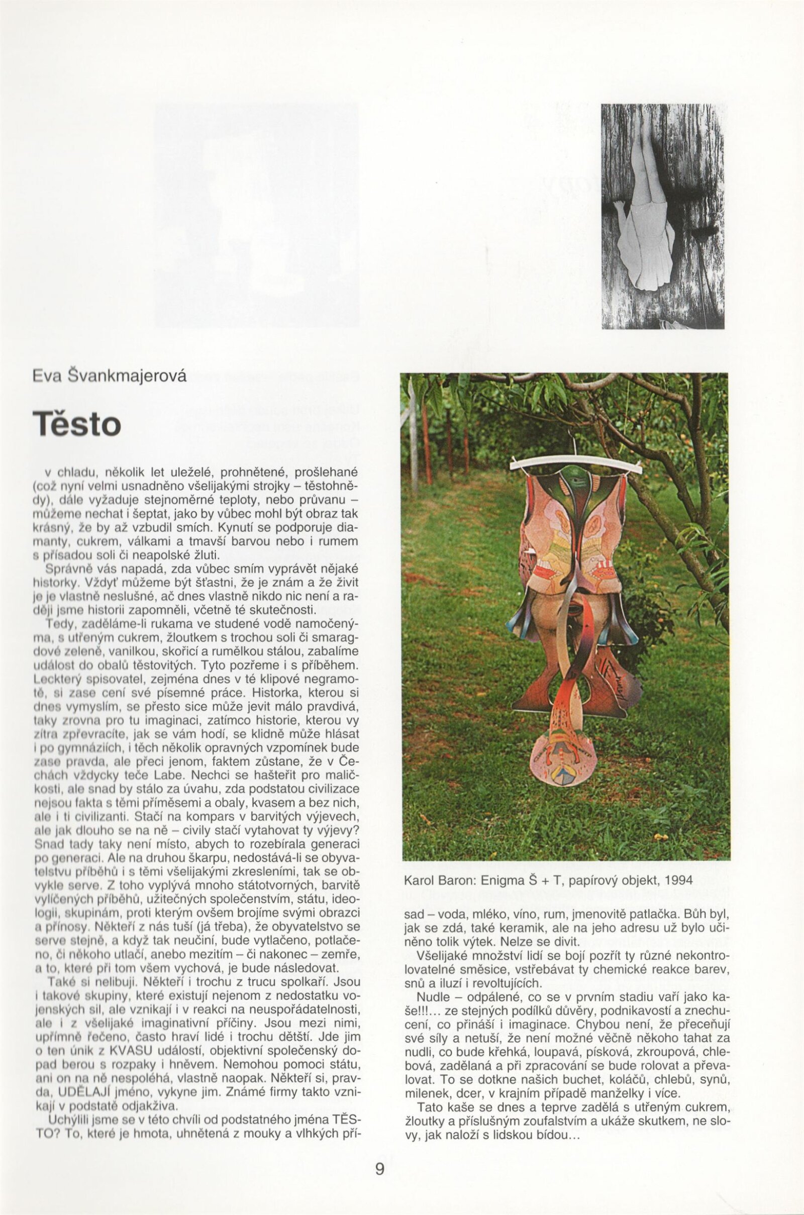 Z jednoho těsta. Pocta poválečné skupině surrealistů. Tématická výstava českých a slovenských surrealistů: Dům umění města Brna, 1. 7. – 3. 8. 1997 / Převzatý katalog. Z jednoho těsta. Pocta skupině surrealistů v ČSR. Tématická výstava Skupiny českých a slovenských surrealistů a Surrealistické skupiny A. I. V. / Texty: různých autorů. – Praha: SVU Mánes, 1997. – 50 s., obr., DU 1056. – MZK