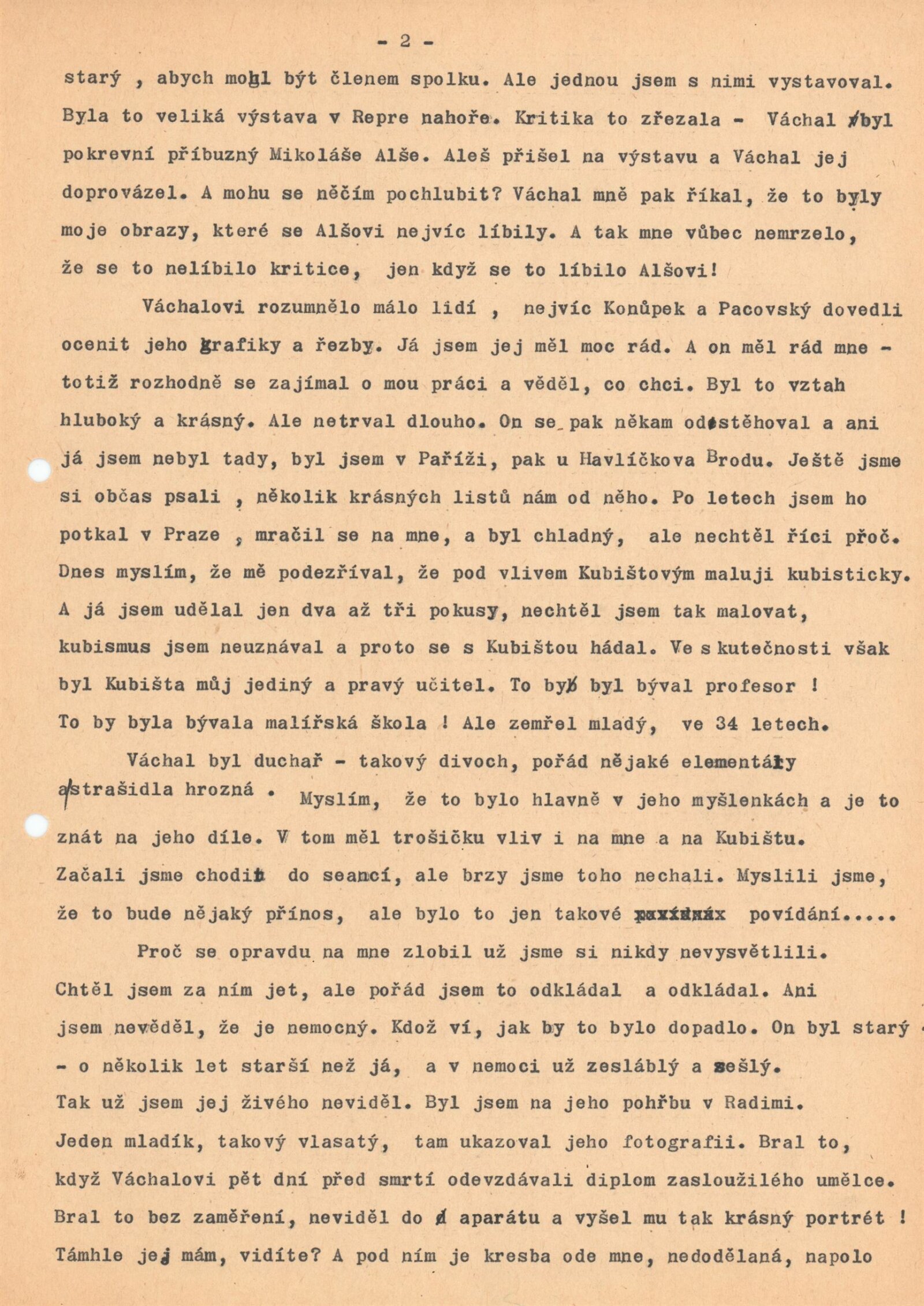 Míla Kudličková pronesla na vernisáži vzpomínku na Jana Zrzavého.