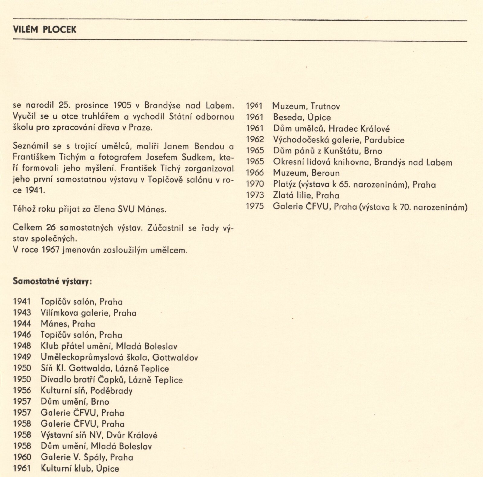 Zasloužilý umělec Vilém Plocek. Kresby: Kabinet grafiky, 183. výstava, Dům pánů z Kunštátu 14. 12. 1979 – 13. 1. 1980 / Text Jiří Valoch.- Brno: DUmB, 1979 - 9 s., obr. Životní data výstavy DPK 724; MG; MMB