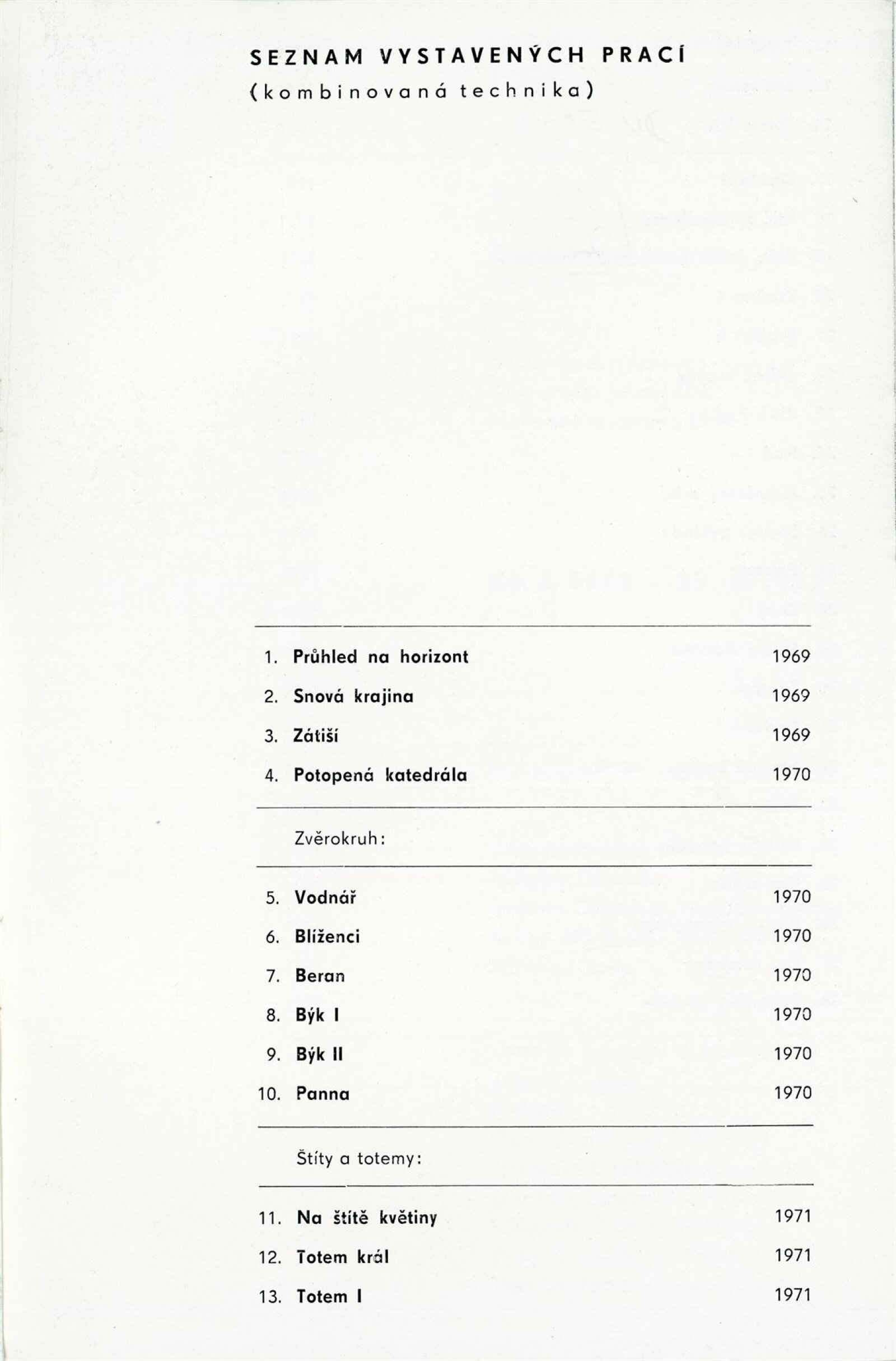katalog, seznam vystavených děl, recenze v tisku
