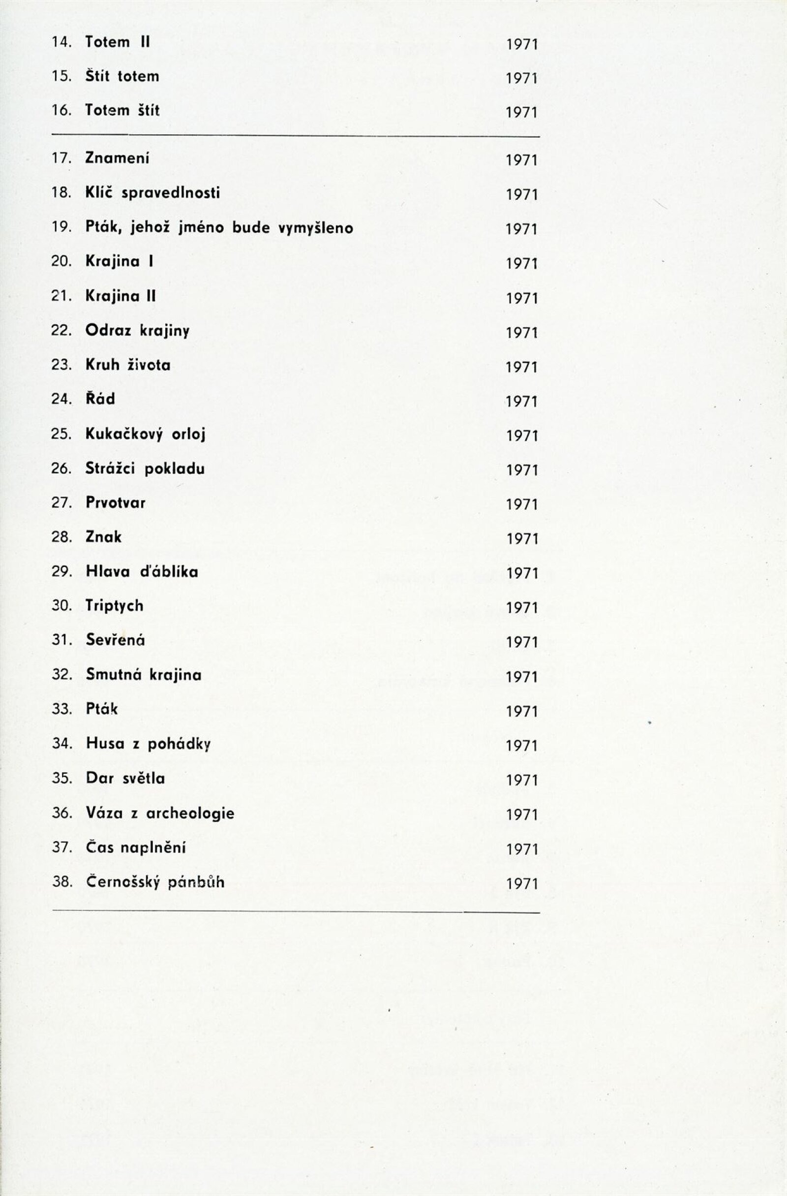 Zdeněk Dvořáček. 1970–1971: Dům umění, 43. výstava v Galerii Jaroslava Krále a Moravské muzeum, 24. 1. – 27. 2. 1972 / Text: Zdeněk Čubrda. – Brno: ČFVU, 1972. – 10 s., obr., portrét, životní data, DU 563a. – MG; MMB