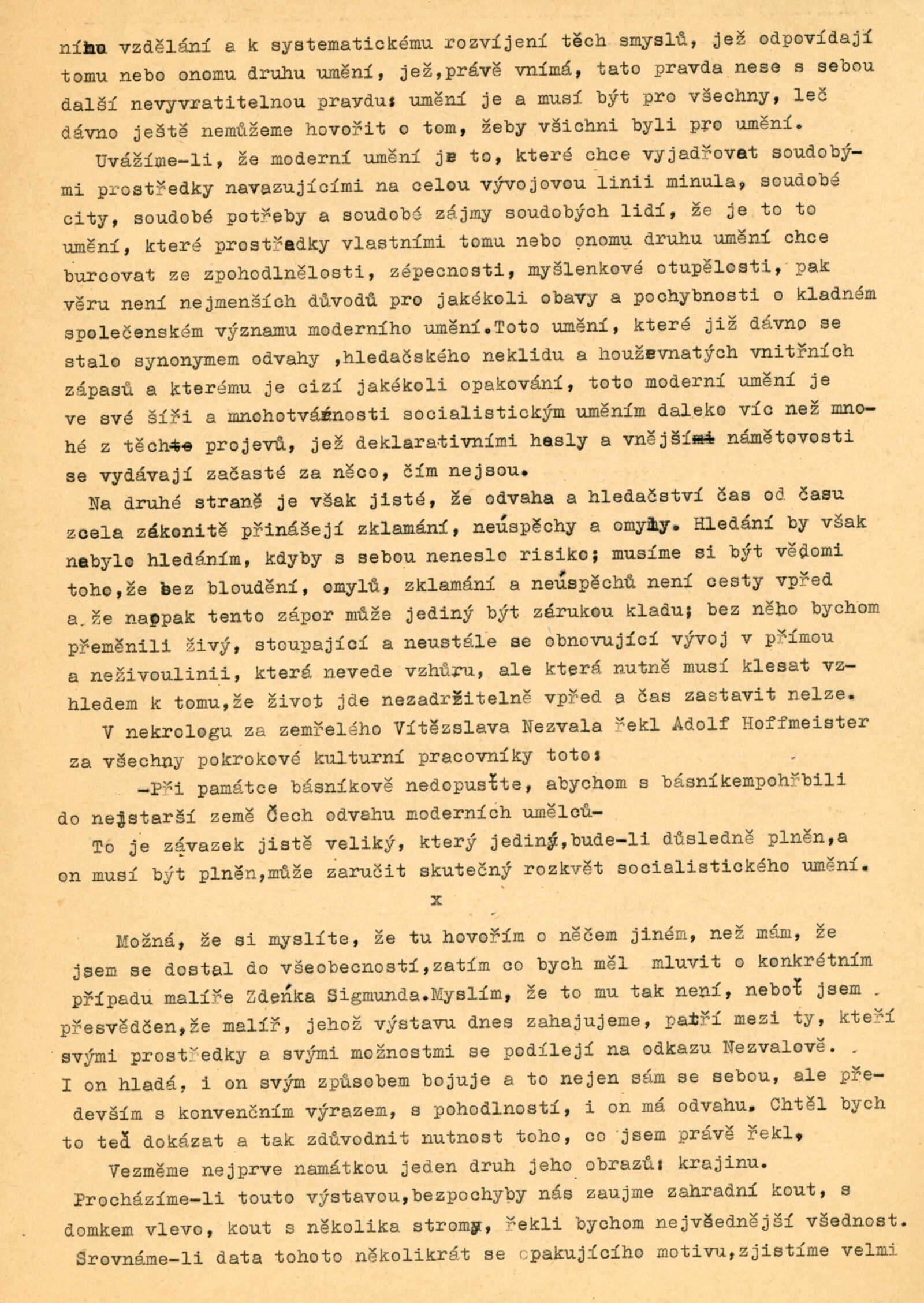 pozvánka, katalog, seznam vystavených prací, strojopis textu (M. Kundera, pro katalog), medailon autora, text k výstavě (úvodní slovo), reprodukce, korespondence (s autorem, provozní korespondence), recenze v tisku, pozvánka na výstavu Zdeňka Sigmunda v ÚLUV v Praze