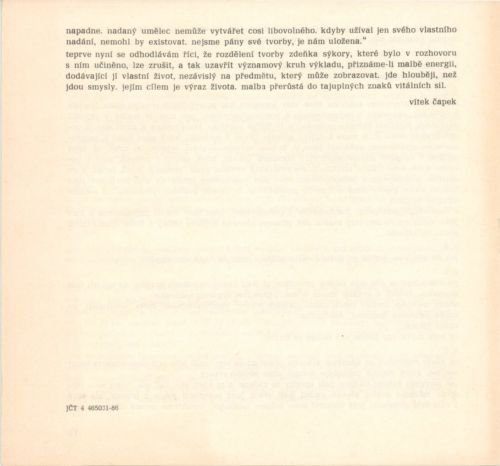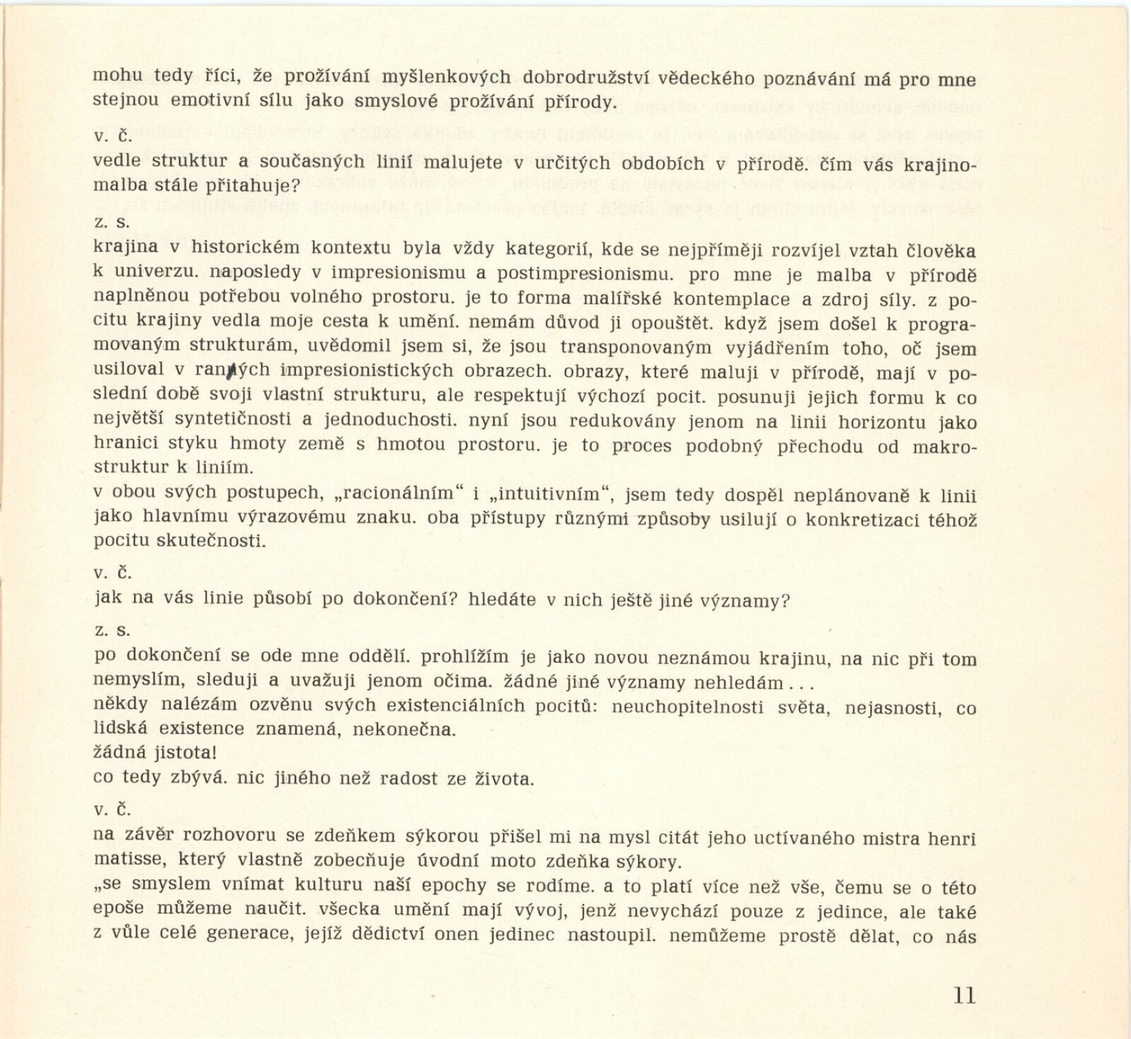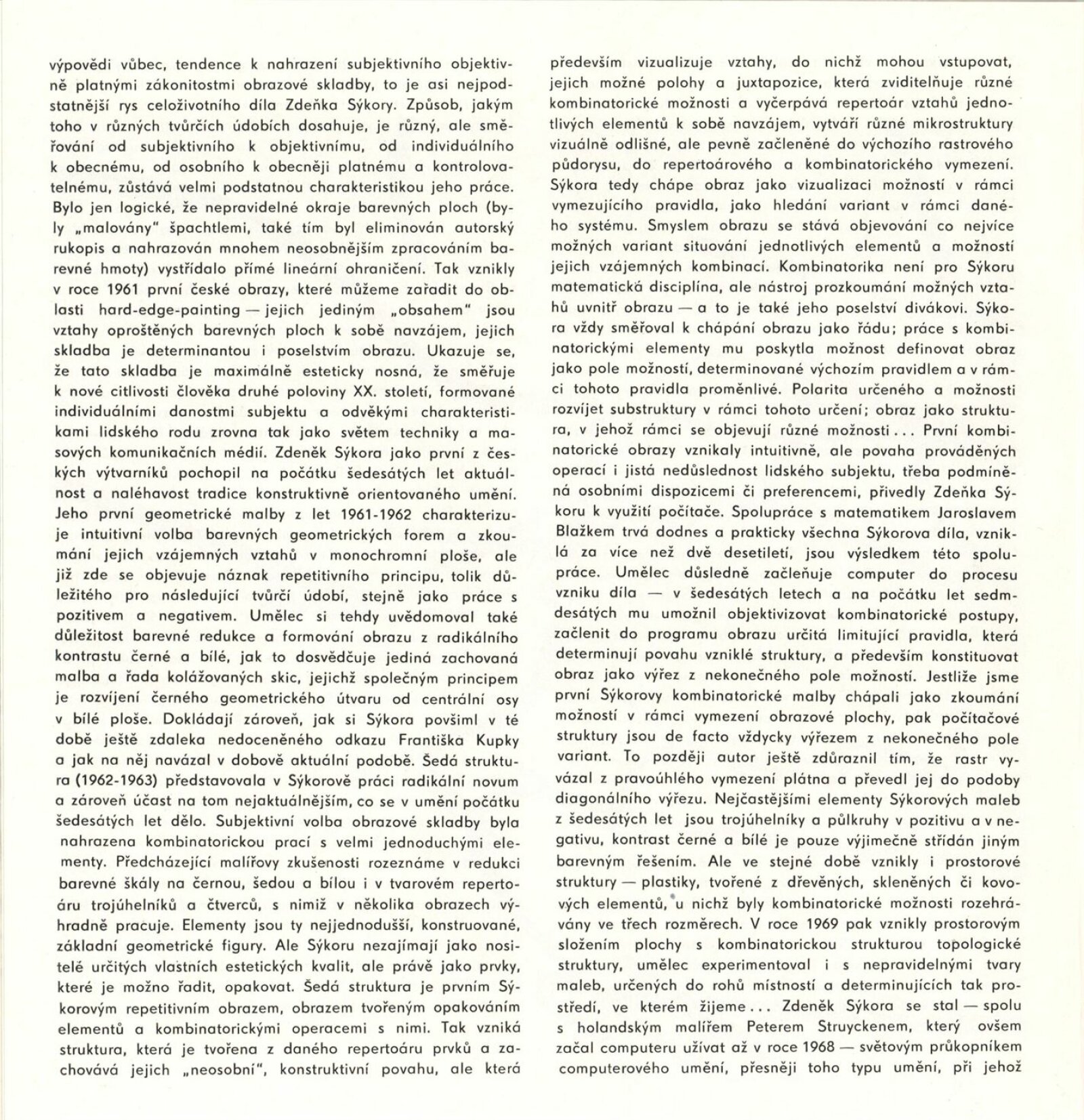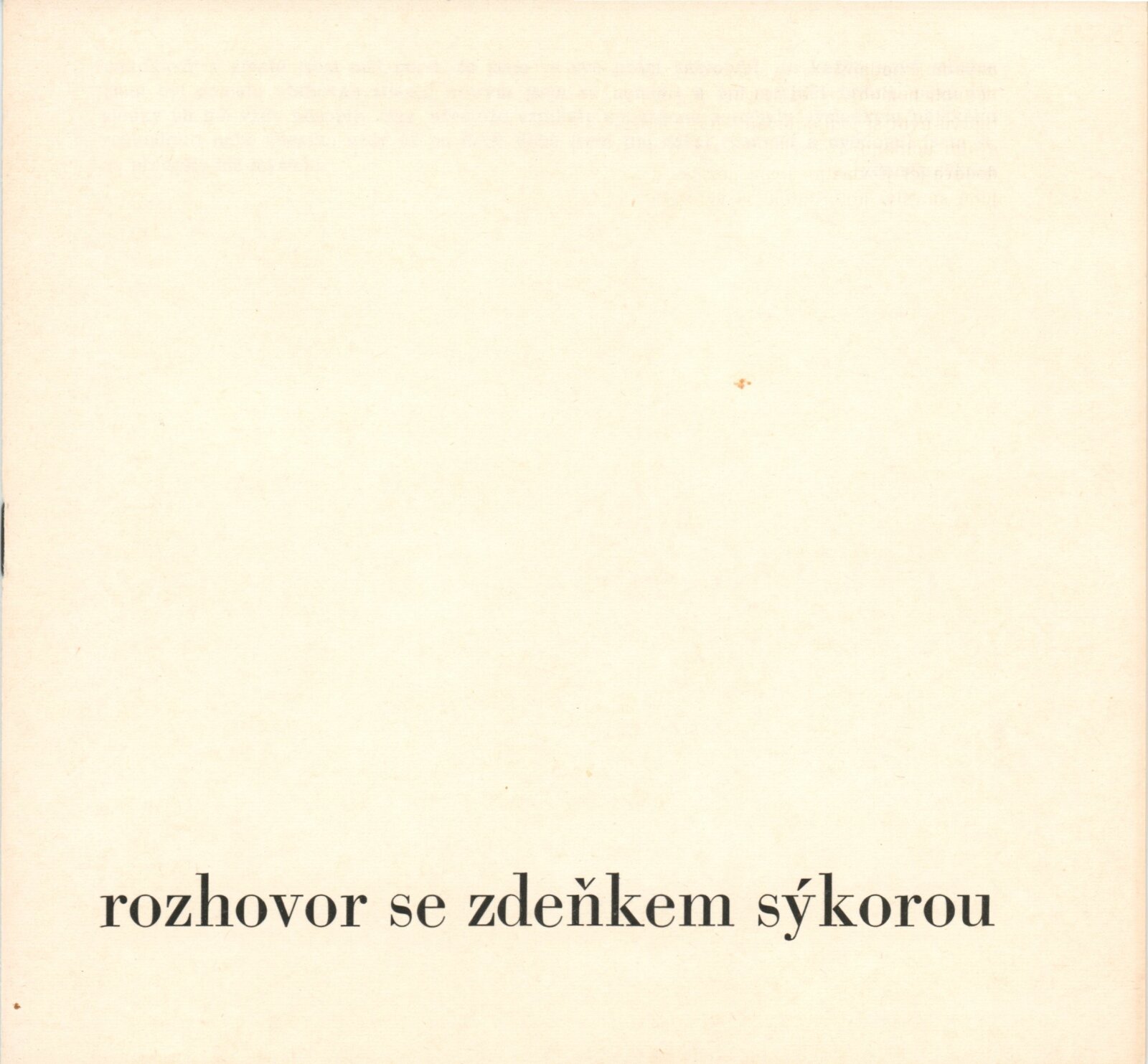 pozvánka, katalog, dodatek ke katalogu - rozhovor se Zdeňkem Sýkorou, strojopis katalogu, (text Jiřího Valocha v němčině), fotografie pro katalog z výstavy a z vernisáže, seznam vystavených děl, pojistný seznam, provozní korespondence, žádost autora o výstavu, žádost a potvrzení o konání výstavy, recenze v tisku, poznámky, vizuál písma, díla Zdeňka Sýkory - náhledy/tisky