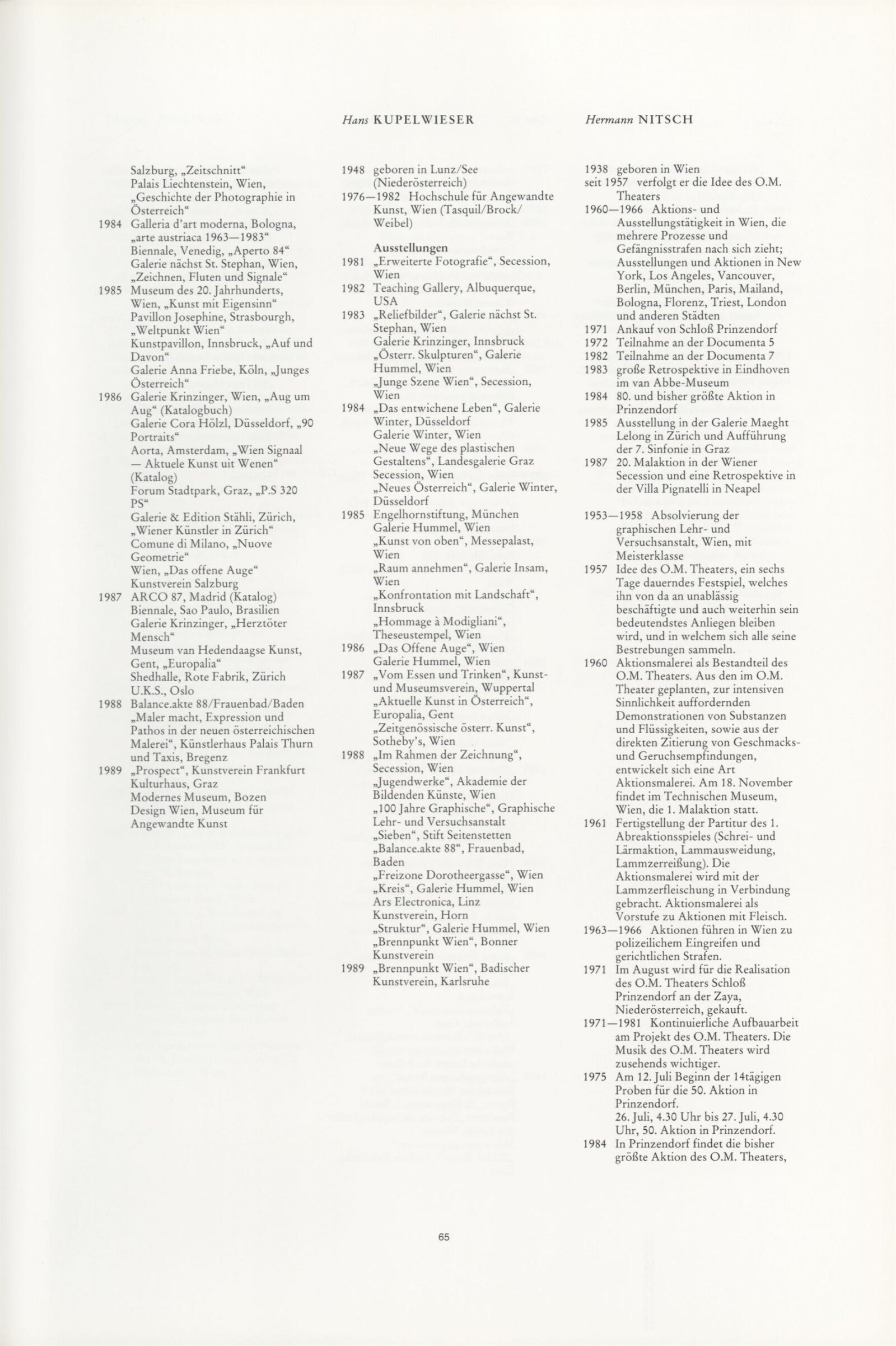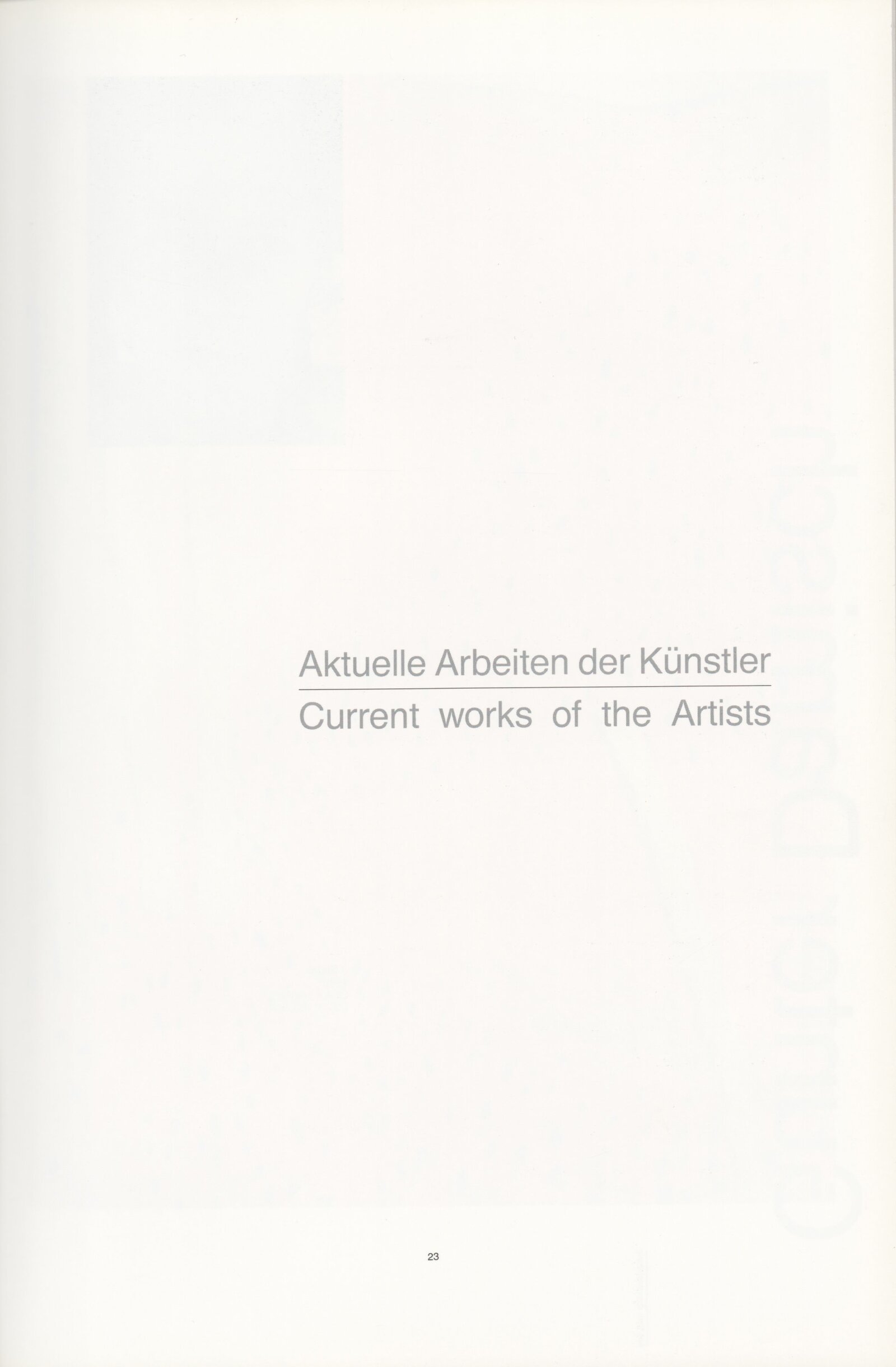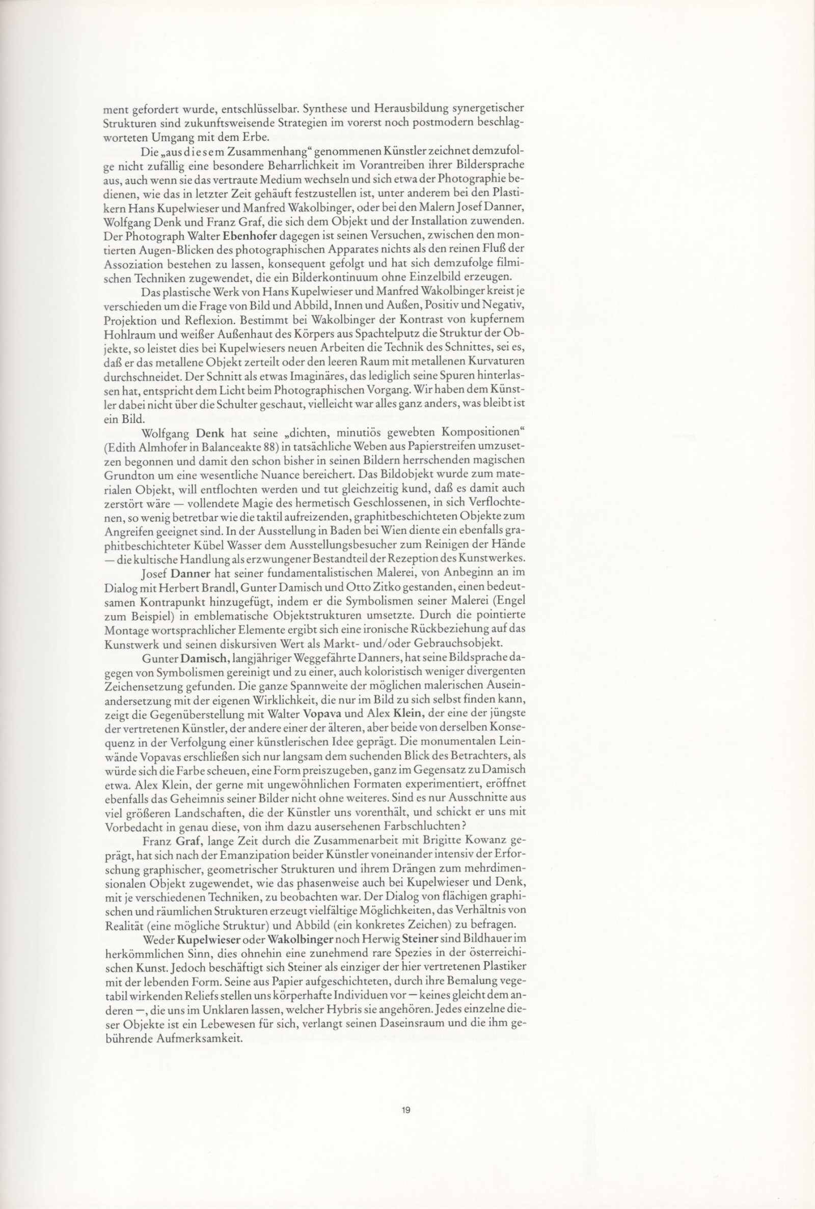 Gunter Damisch, Josef Danner, Wolfgang Denk, Walter Ebenhofer, Adolf Frohner, Franz Graf, Johanna Kandl, Alex Klein, Brigitte Kowanz, Hans Kupelwieser, Hermann Nitsch, Ona B., Christine Pellikan, Helmut Rainer, Herwing Steiner, Walter Vopava, Manfred Wakolbinger
