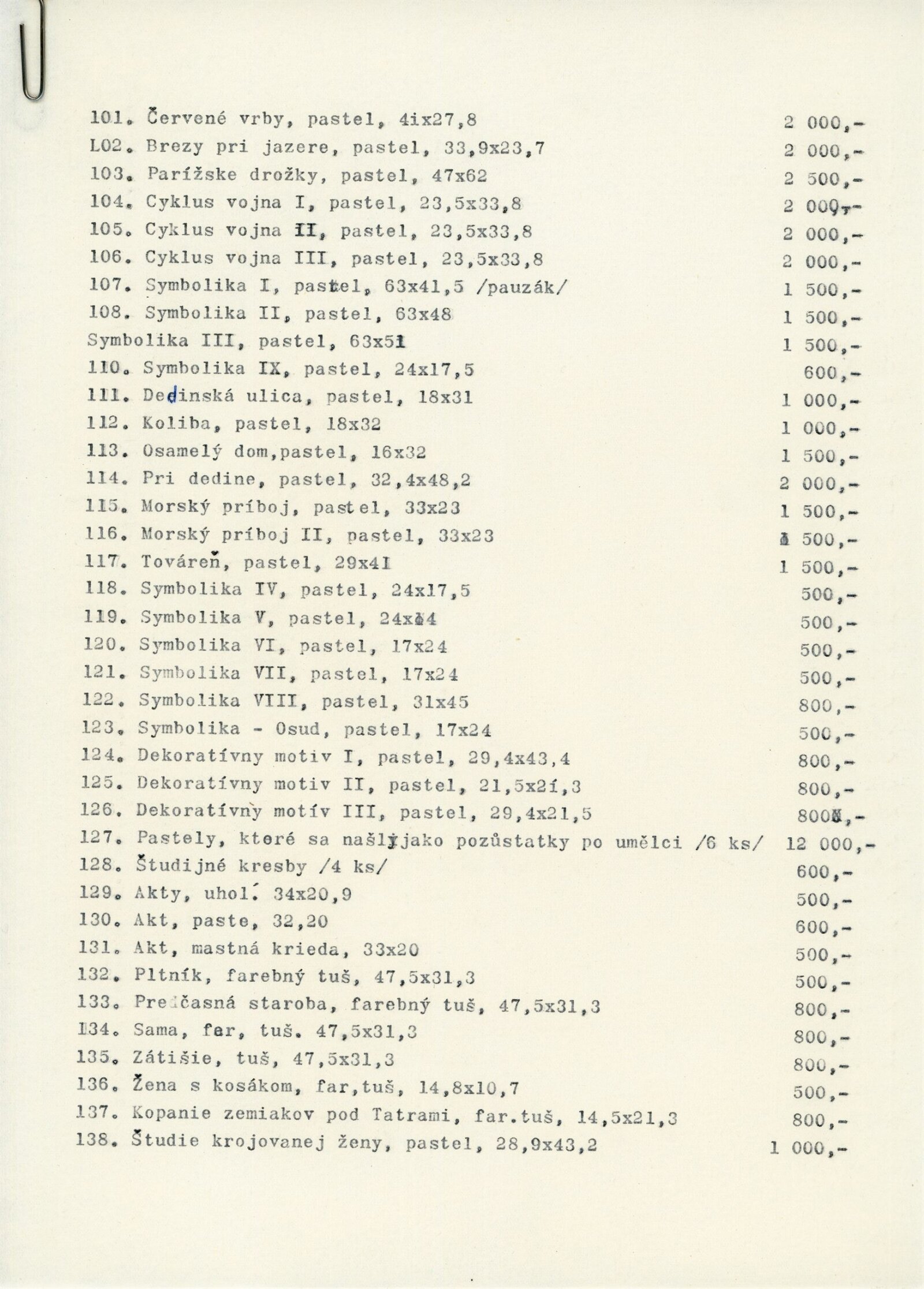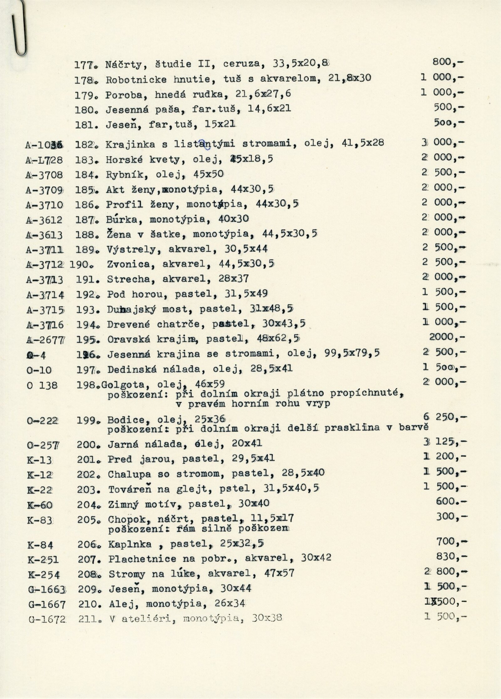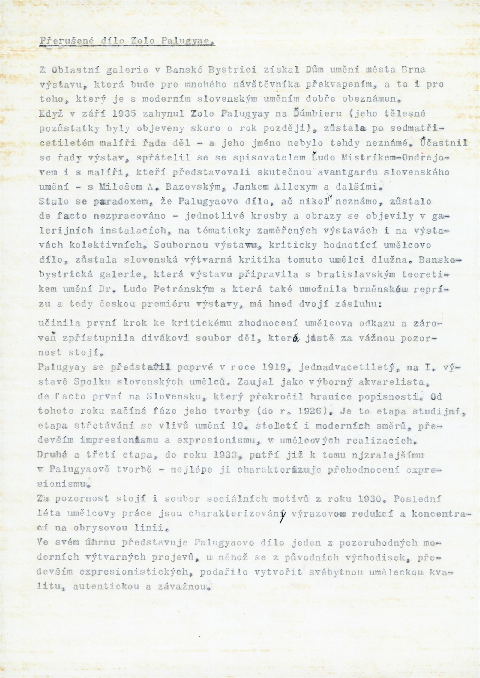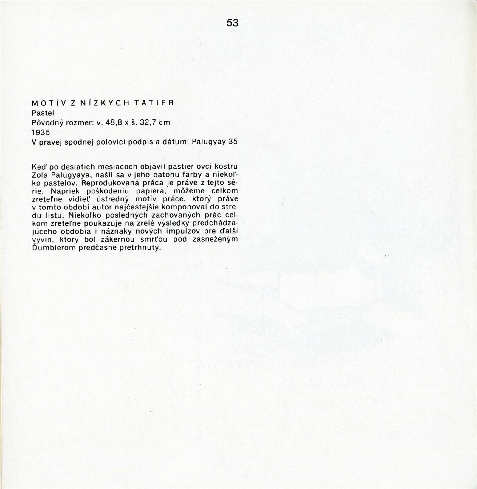 pozvánka, katalog převzatý z původní výstavy v Banské Bystrici, fotografie vernisáže a výstavy, seznam vystavených obrazů, text o umělci, zpráva o ukončení výstavy, revers, korespondence (E. Ricotti, dcera Martina Heřmanského), provozní korespondence, žádost o povolení výstavy, dohoda o pořádání výstavy, nabídka výstavy z OG Banská Bystrica, plakát Východoslovenská galéria Košice, recenze v tisku