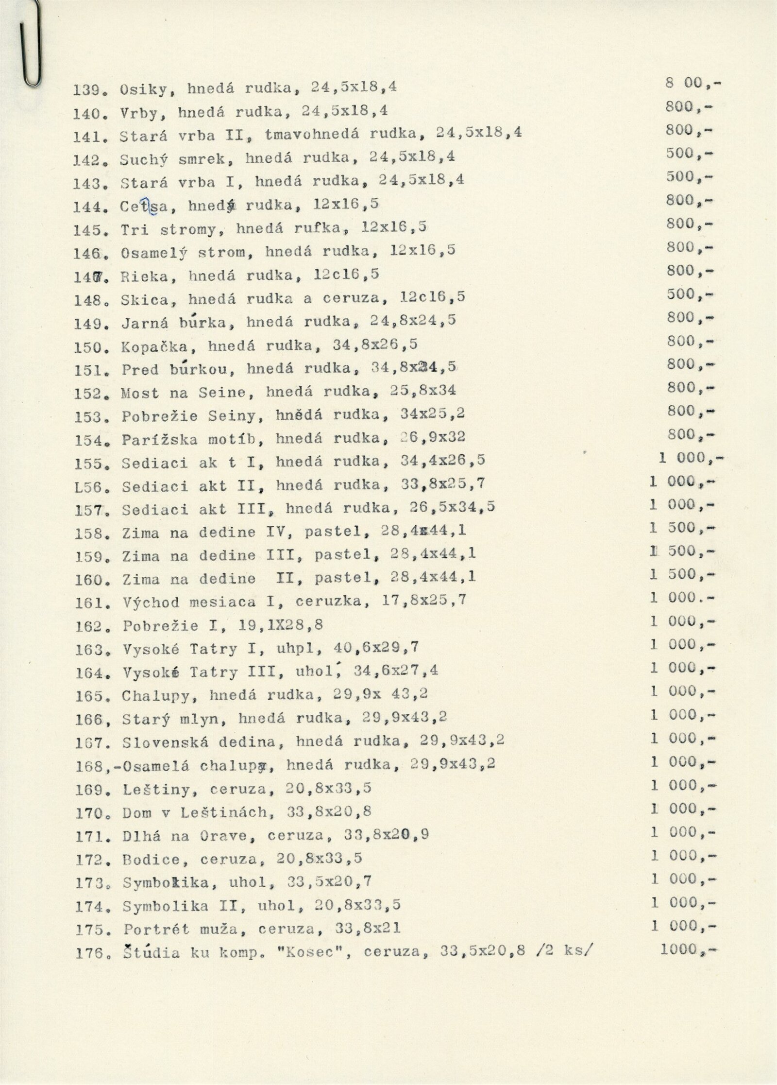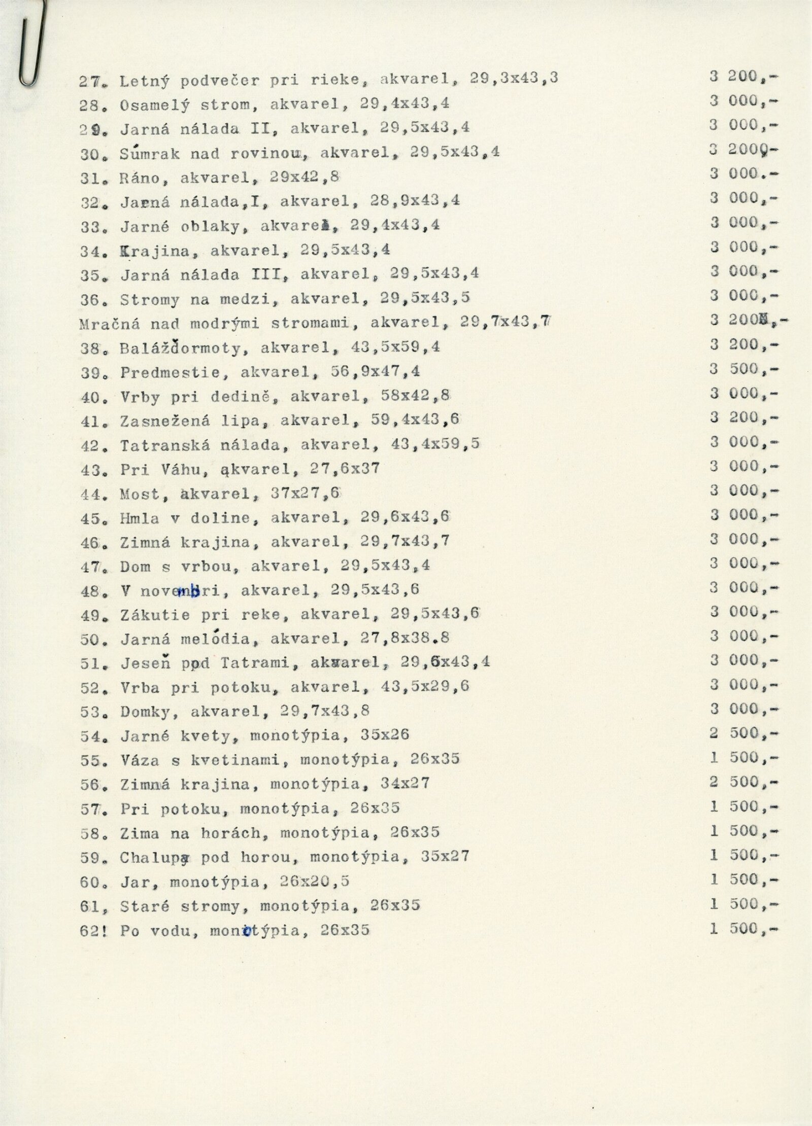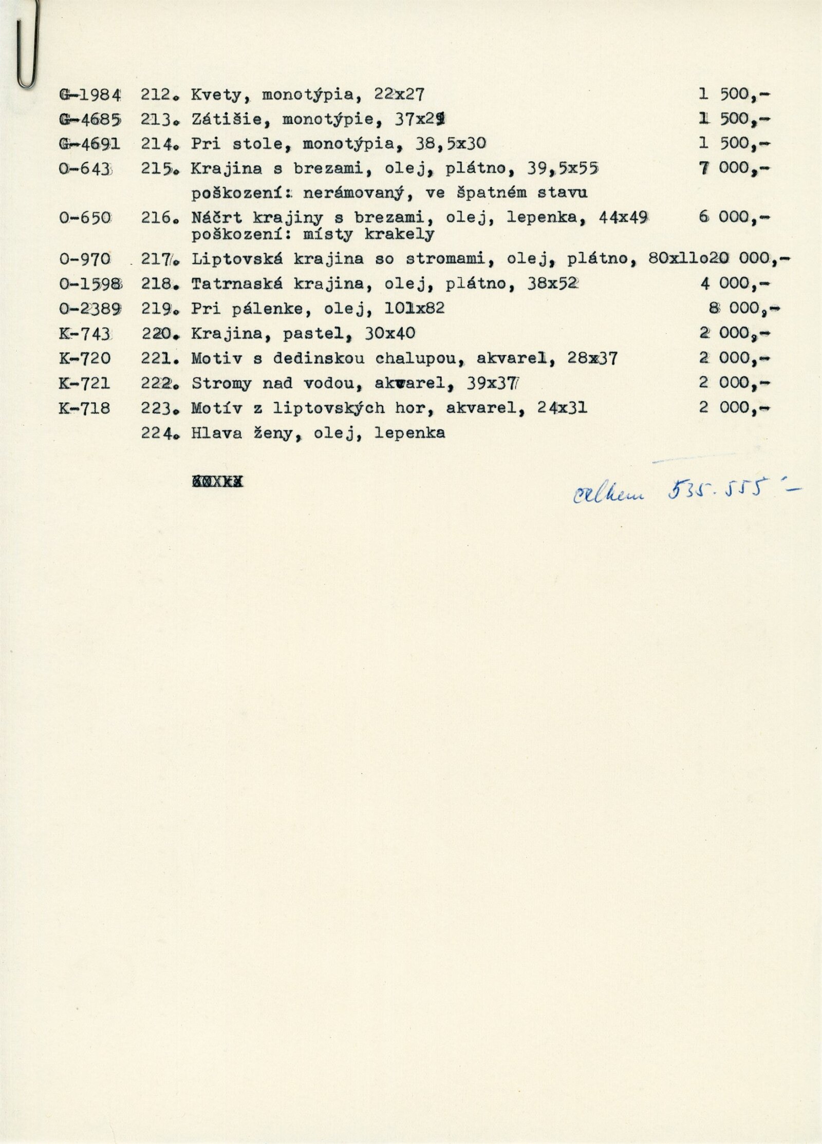 pozvánka, katalog převzatý z původní výstavy v Banské Bystrici, fotografie vernisáže a výstavy, seznam vystavených obrazů, text o umělci, zpráva o ukončení výstavy, revers, korespondence (E. Ricotti, dcera Martina Heřmanského), provozní korespondence, žádost o povolení výstavy, dohoda o pořádání výstavy, nabídka výstavy z OG Banská Bystrica, plakát Východoslovenská galéria Košice, recenze v tisku