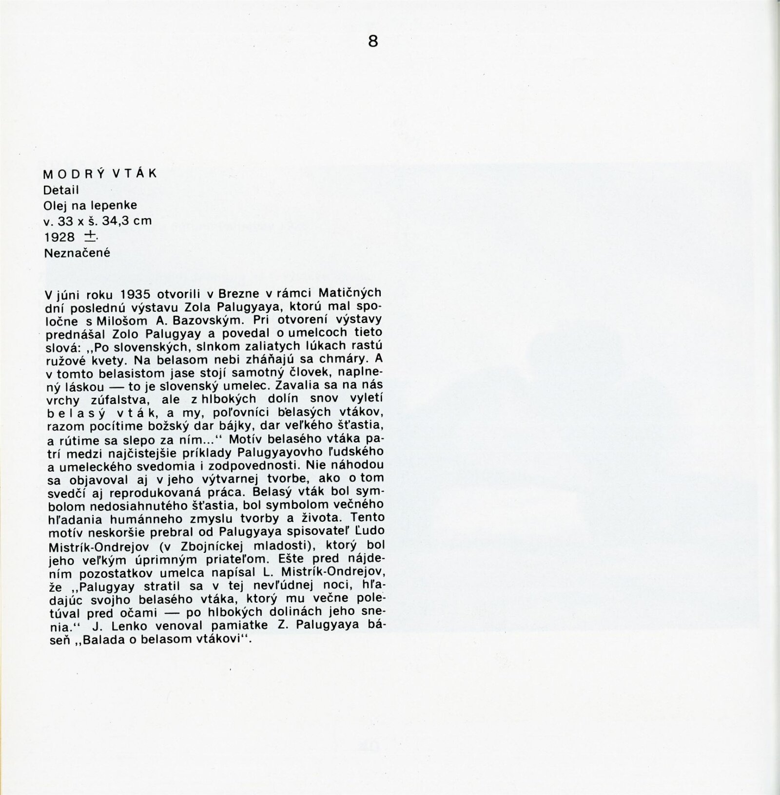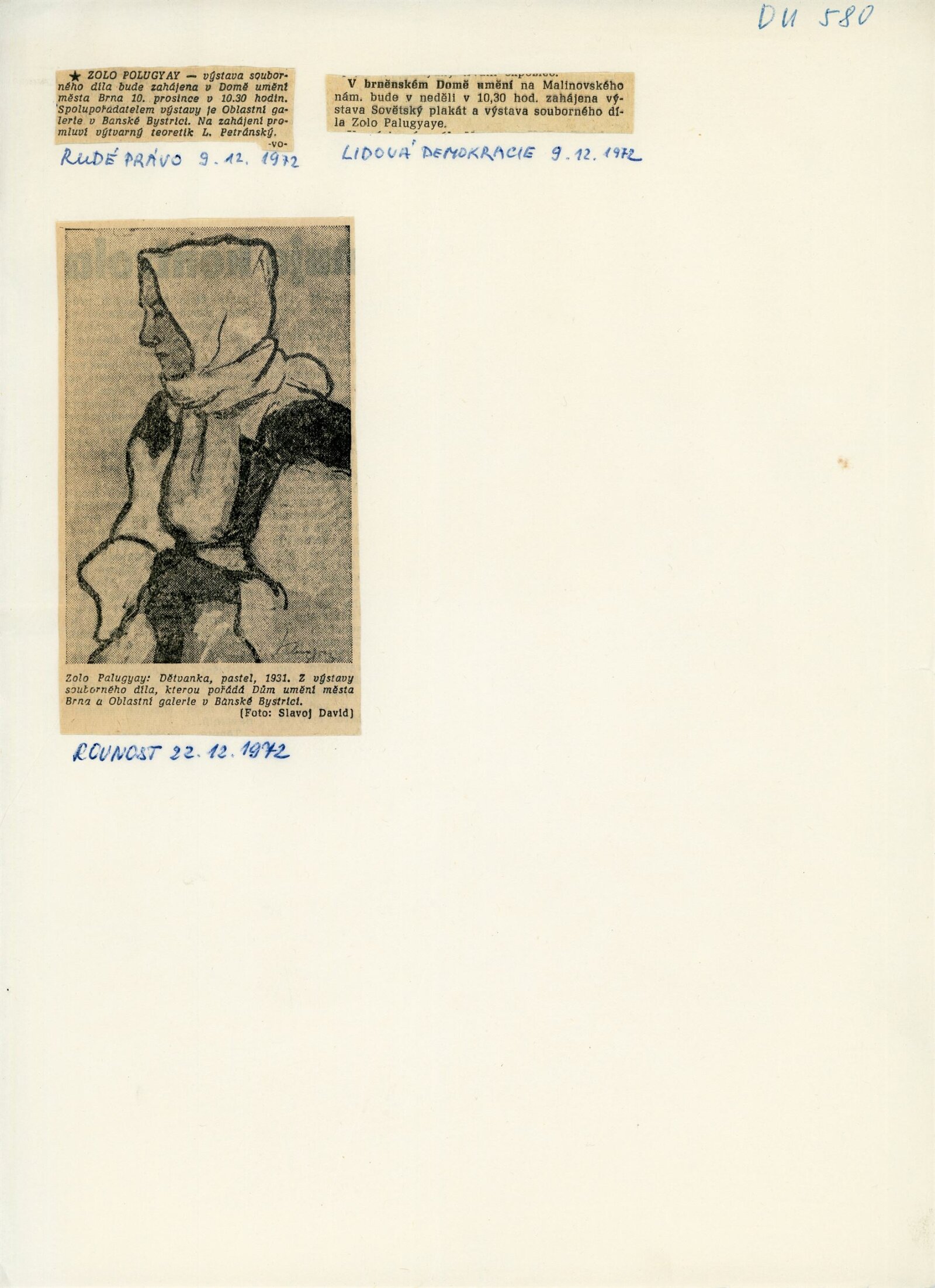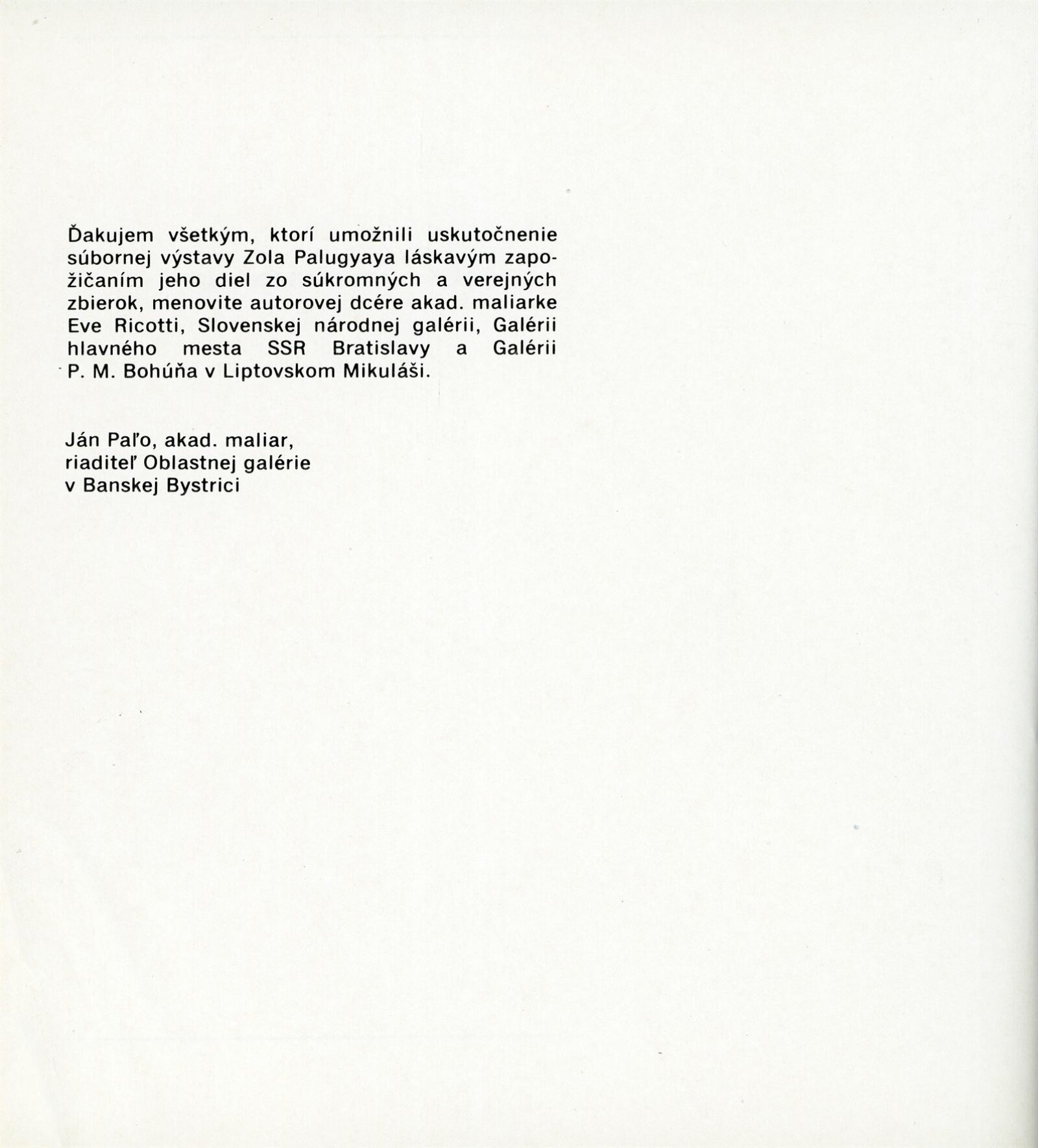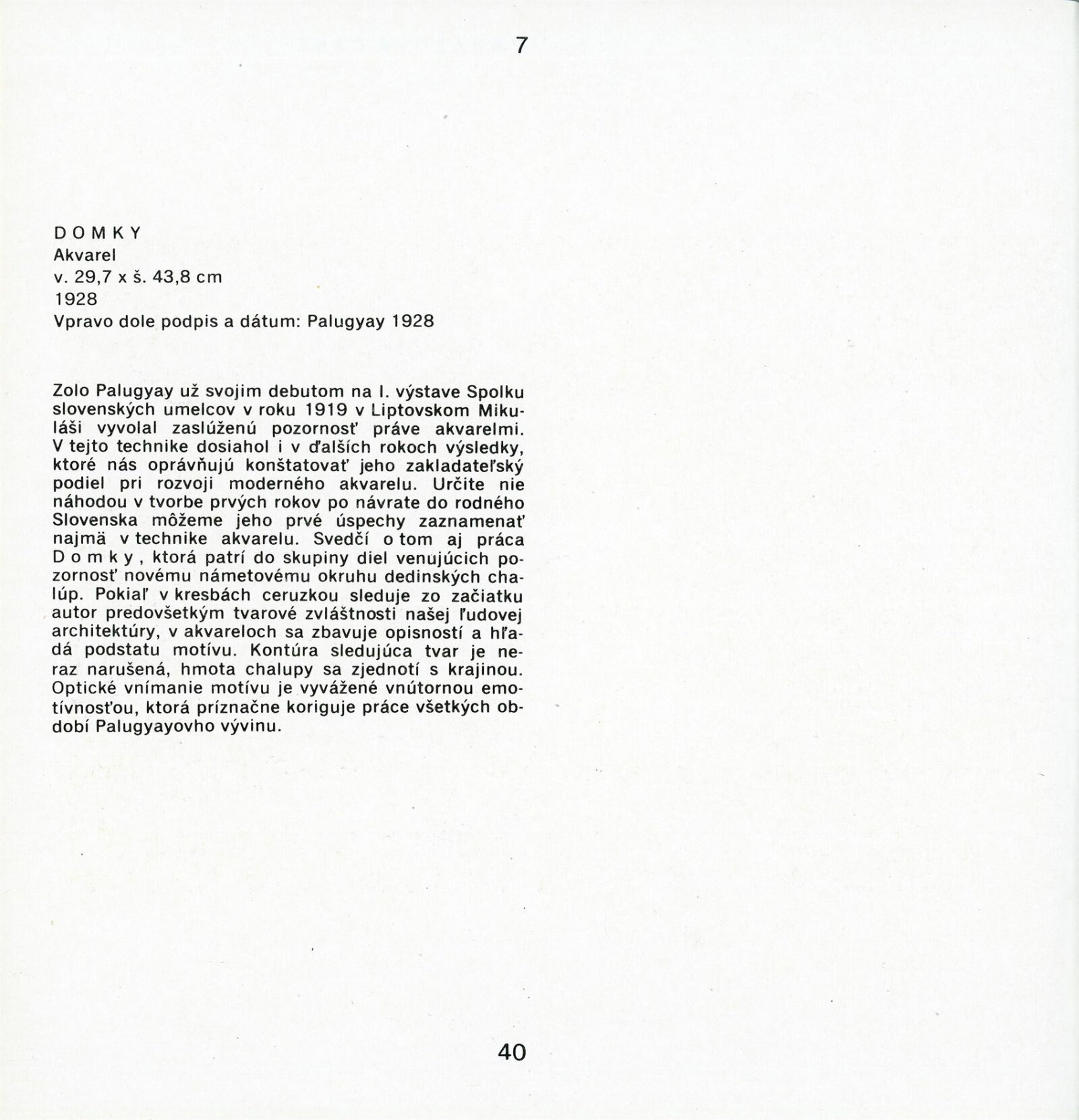 pozvánka, katalog převzatý z původní výstavy v Banské Bystrici, fotografie vernisáže a výstavy, seznam vystavených obrazů, text o umělci, zpráva o ukončení výstavy, revers, korespondence (E. Ricotti, dcera Martina Heřmanského), provozní korespondence, žádost o povolení výstavy, dohoda o pořádání výstavy, nabídka výstavy z OG Banská Bystrica, plakát Východoslovenská galéria Košice, recenze v tisku