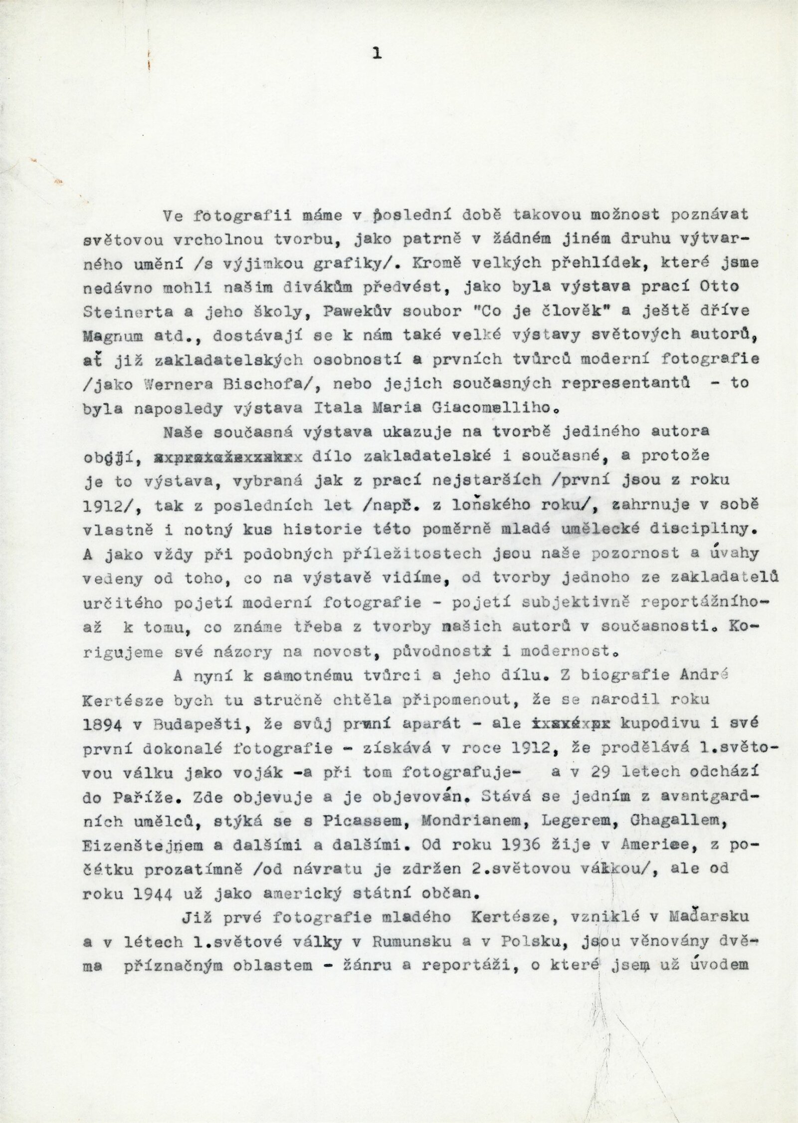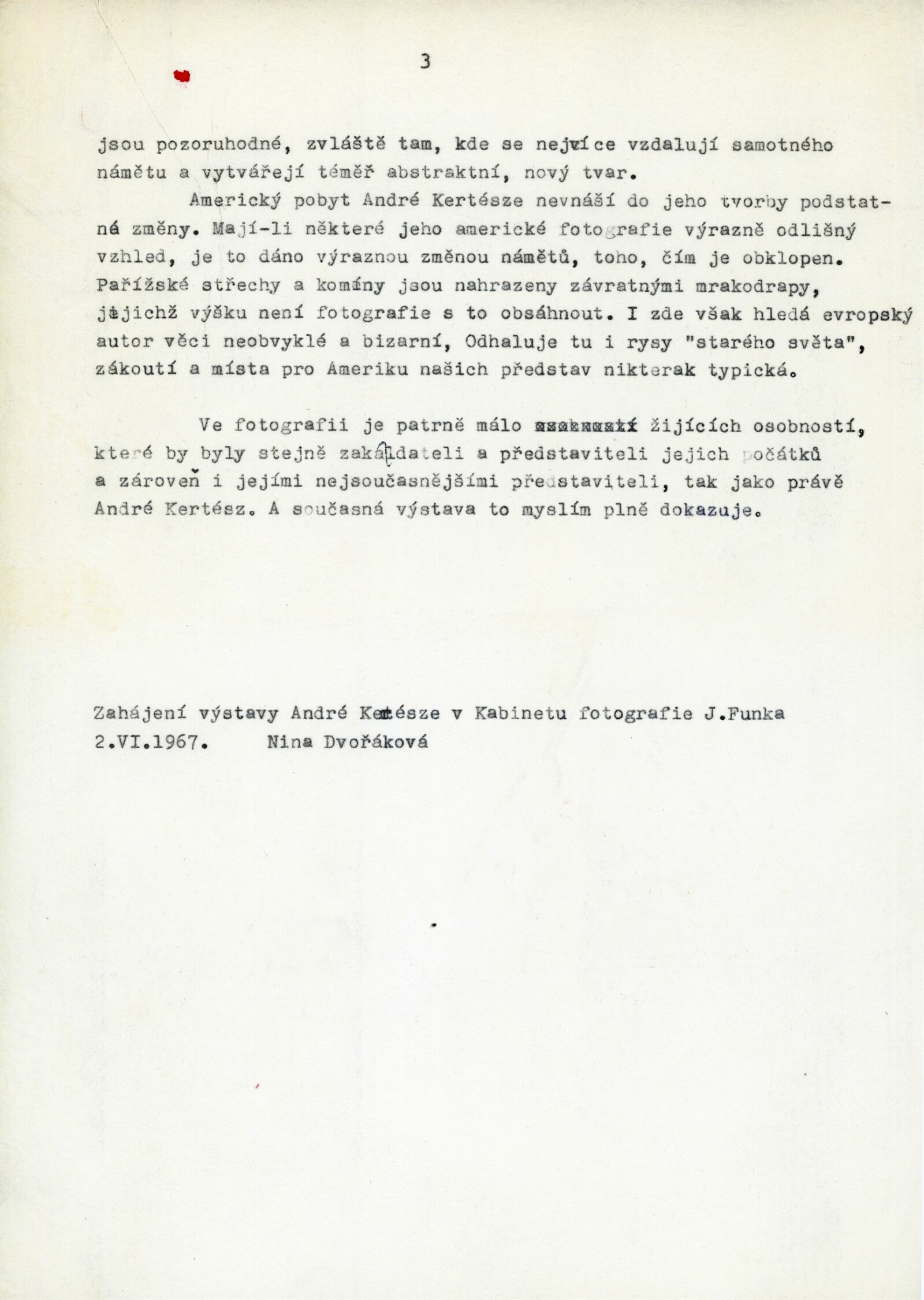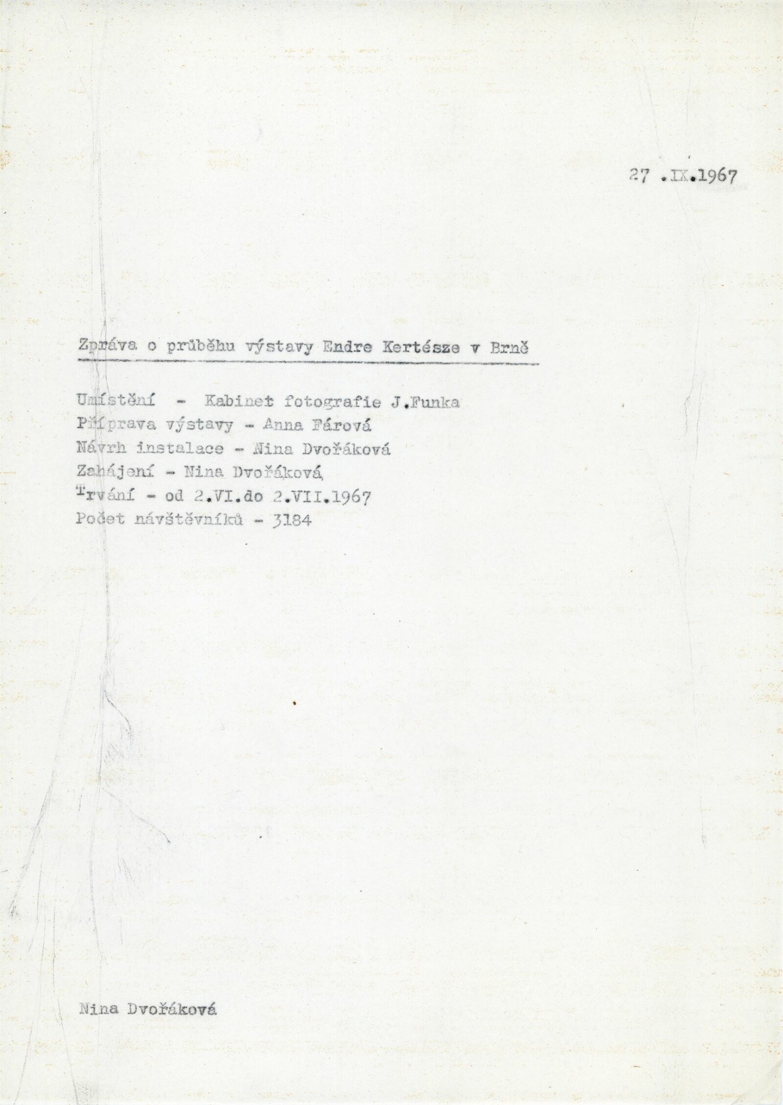 pozvánka, zpráva o výstavě, fotografie výstavy, korespondence (Anna Fárová – Adolf Kroupa, Nina Dvořáková o realizaci výstavy, provozní korespondence)