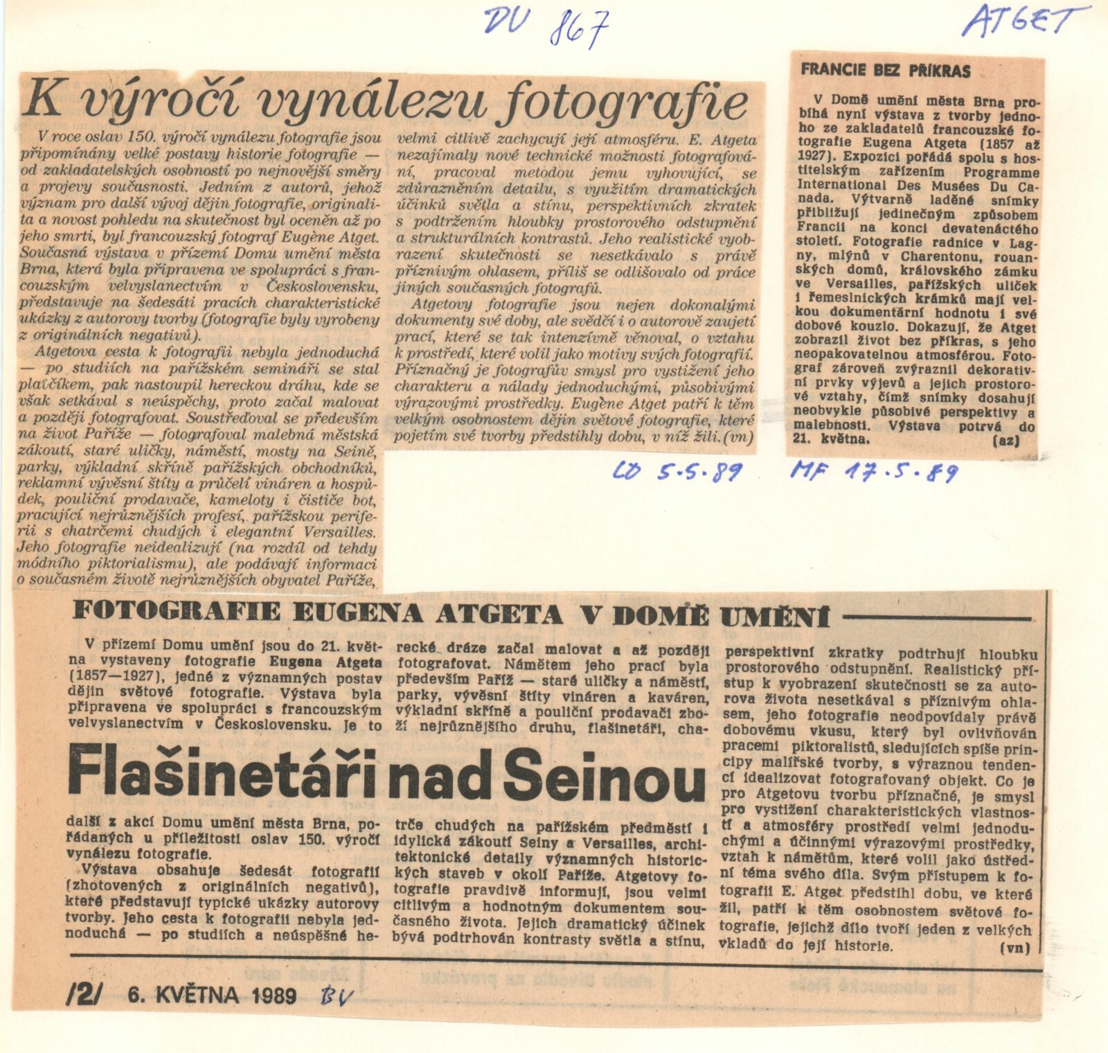 pozvánka, seznam vystavených děl (F), korespondence, předávací protokol mezi VČG v Pardubicích a DU, žádost a potvrzení o konání výstavy, recenze v tisku
