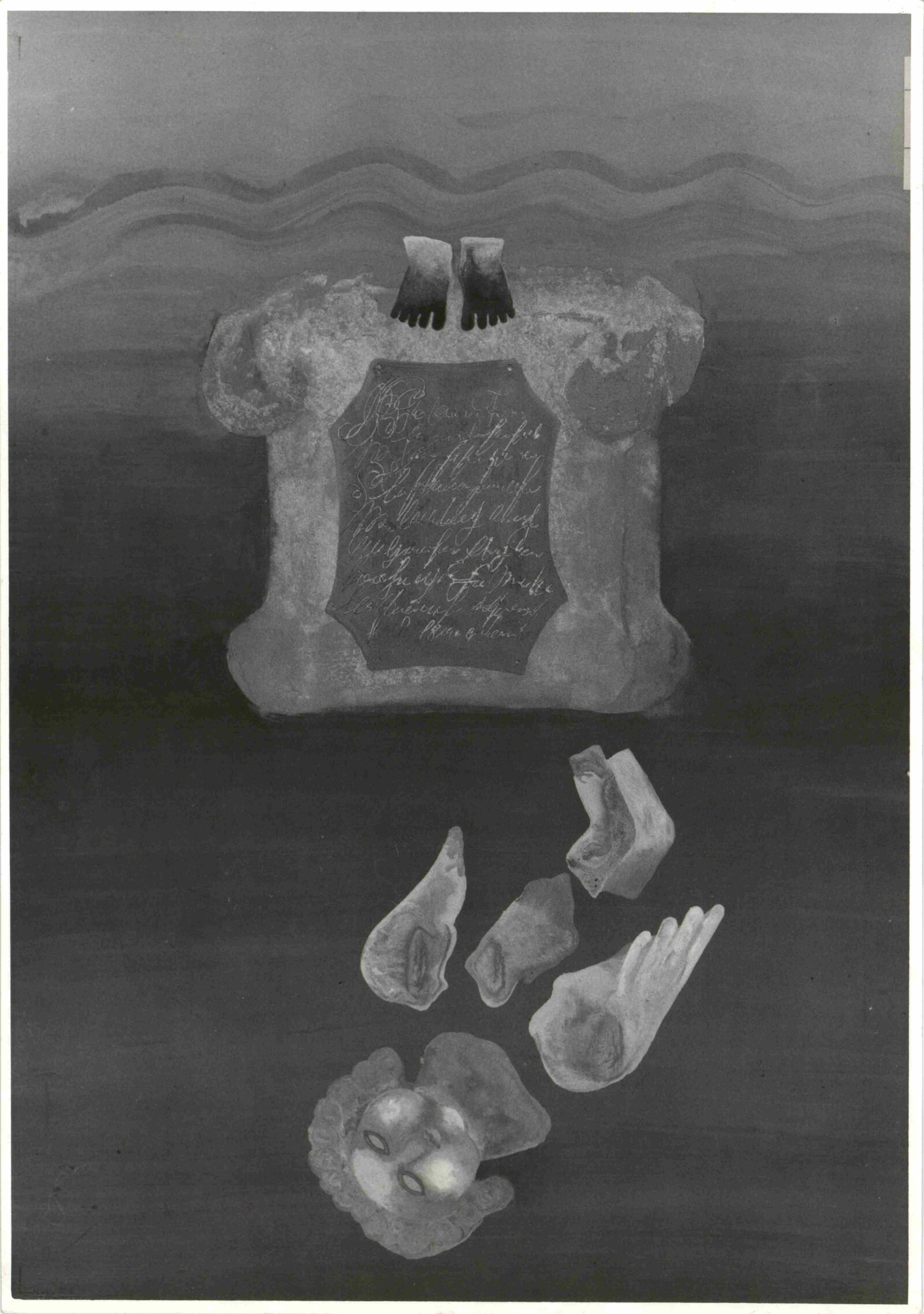 pozvánka, katalog, fotografie děl, seznam děl s pojistnými cenami, pozvánka na tiskovou besedu a zpráva pro tisk, korespondence (s autorkou, zprávy o služebních cestách), strojopis textu katalogu, recenze v tisku