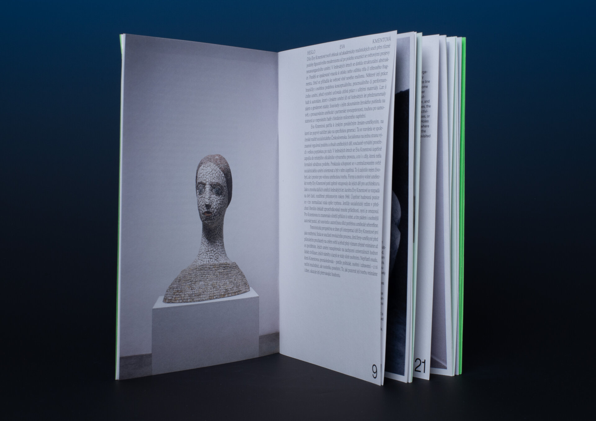 Katalog k monografické výstavě celoživotního díla sochařky Evy Kmentové otevírá úryvek jejího dopisu Jindřichovi Chalupeckému, na nějž navazuje kurátorský text Tomáše Pospiszyla. Ten představuje hlavní témata tvorby Evy Kmentové, které na výstavě prezentovaly úzce vybrané okruhy děl. Text doplňují ilustrační fotografie z archivu Nadačního fondu Kmentová Zoubek a chronologický životopis.