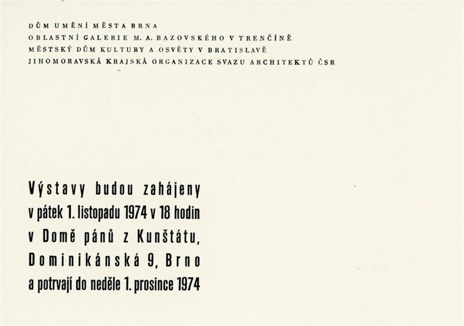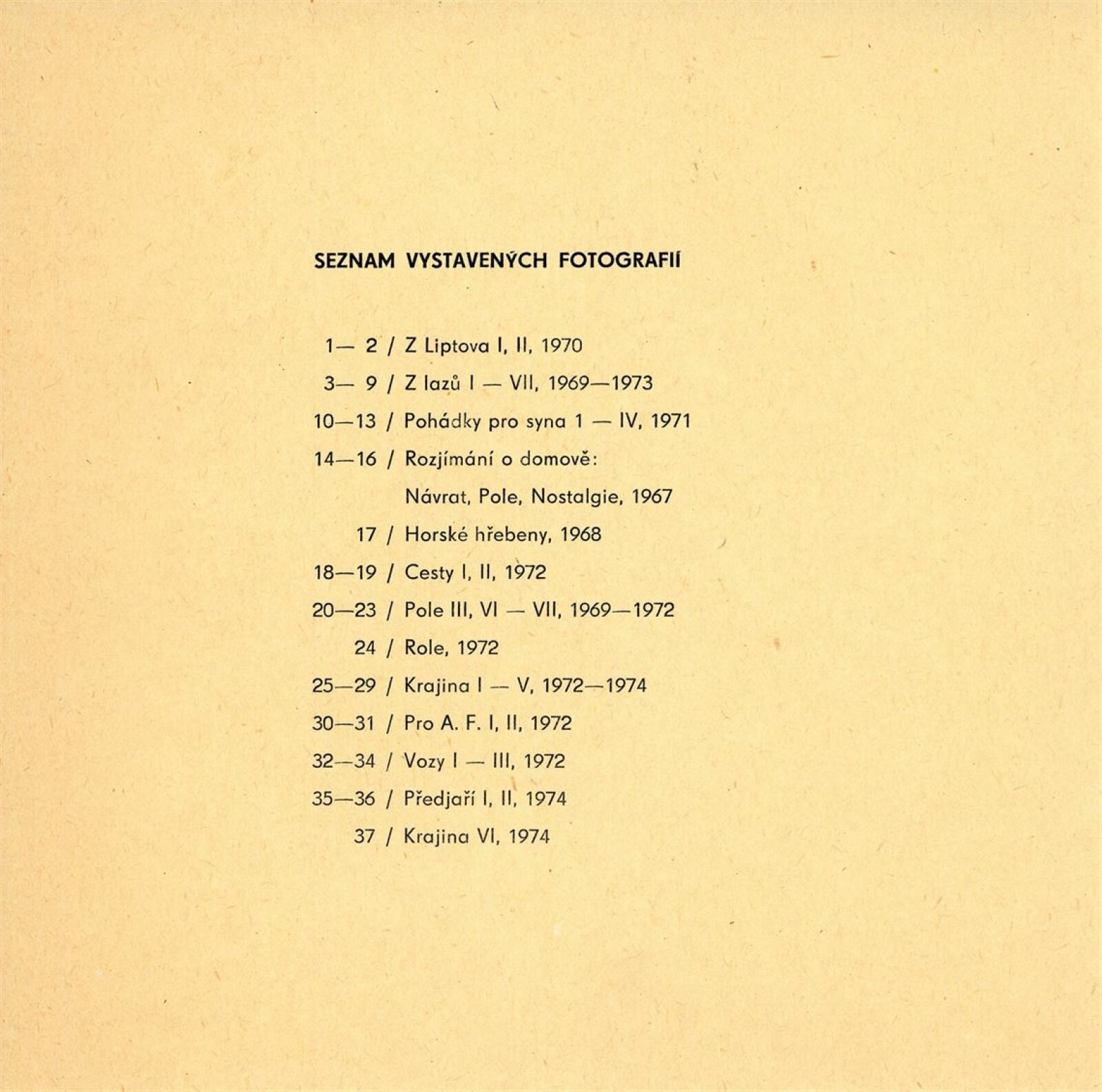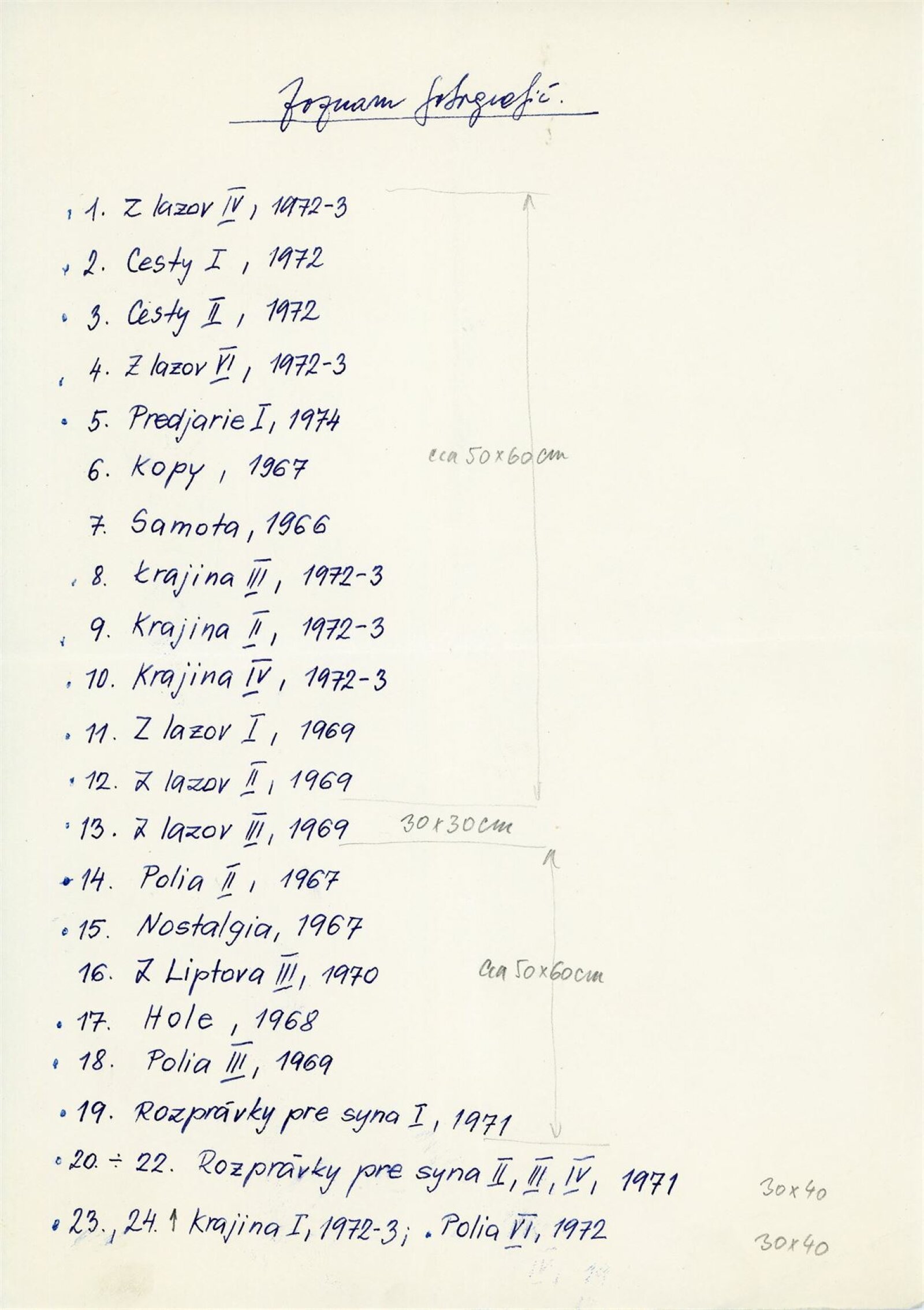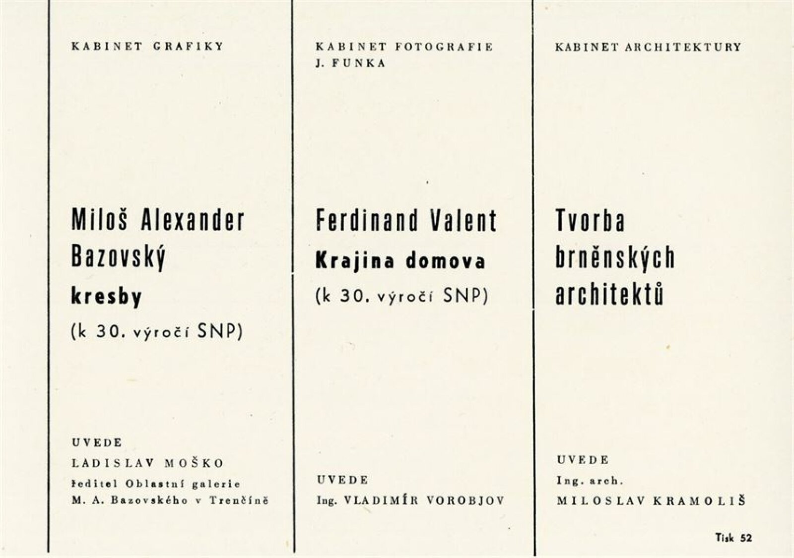 společná pozvánka DPK 578–580, katalog, fotografie, seznam vystavených prací (rukopis autora), strojopis textu pro katalog, schválení tisku katalogu, korespondence (vernisáž, uspořádání výstavy v DU), smlouva, žádost o povolení výstavy, recenze v tisku, pozvánka a katalog (Bratislava, říjen 1973)
