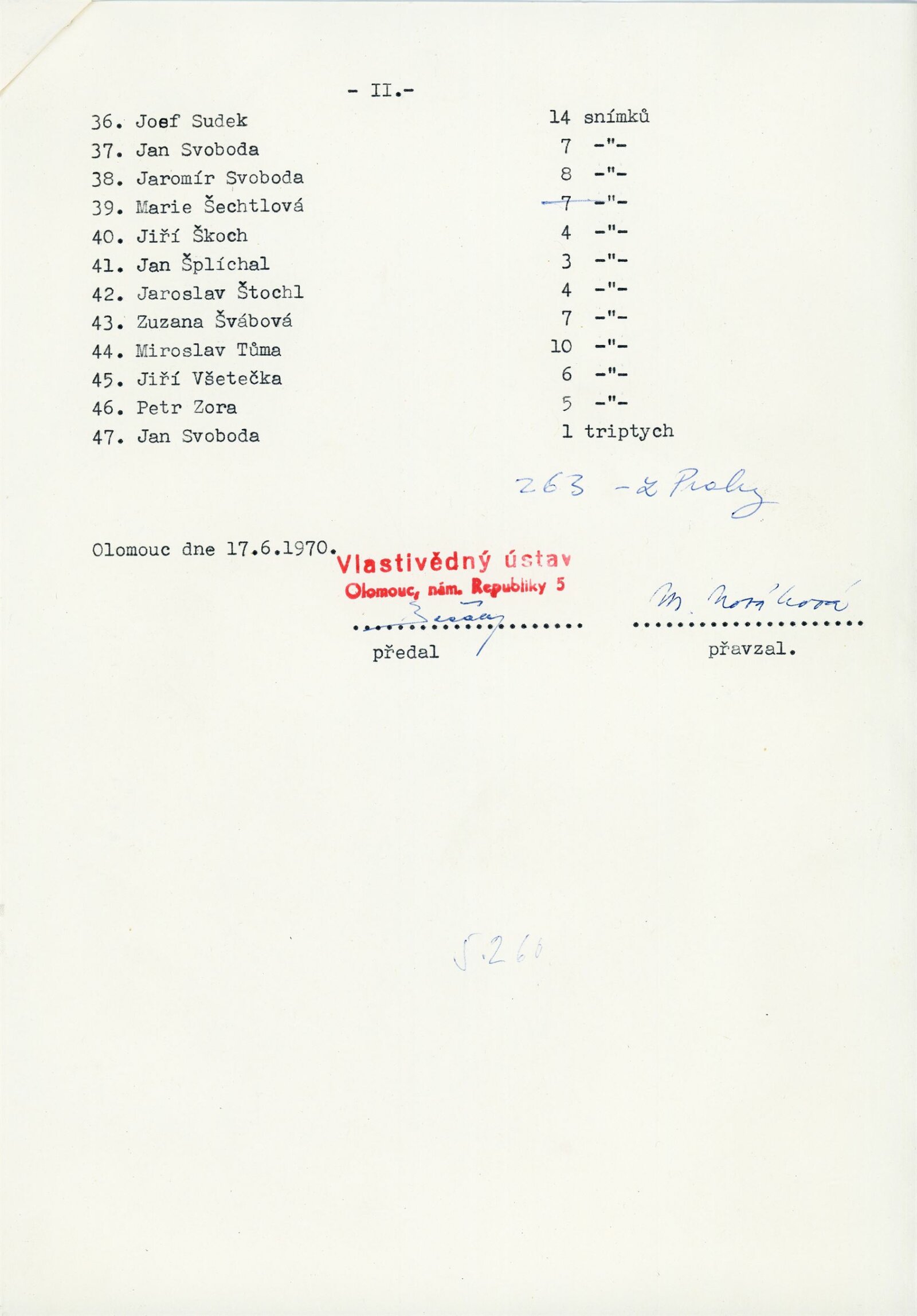 Antonín Daňhel, Pavel Dias, Karel Dirka, František Dvořák, Zdenko Feyfar, Antonín Gribovský, Karel Hájek, Dagmar Hochová, Tibor Honty, Miroslav Hucek, Pavel Hudec-Ahasver, Václav Chochola, Ladislav Janský, Václav Jírů, Miroslav Jodas, Josef Koudelka, Čestmír Krátký, Karel Kuklík, Taras Kuščynskyj, Rupert Kytka, Markéta Luskačová, Miroslav Matoušek, Emilie Medková, Olga Michálková, Leoš Nebor, Miloň Novotný, Alois Nožička, Ladislav Postupa, Josef Prošek, Ivo Přeček, Vilém Reichmann, Jiří Sever, Jan Schrőder, Ladislav Sitenský, Jiří Stach, Miloslav Stibor, Josef Sudek, Jan Svoboda, Jaromír Svoboda, Daniela Sýkorová, Marie Šechtlová, Jiří Škoch, Jan Šplíchal, Jaroslav Štochl, Zuzana Švábová, Miroslav Tűma, Jiří Všetečka, Petr Zora