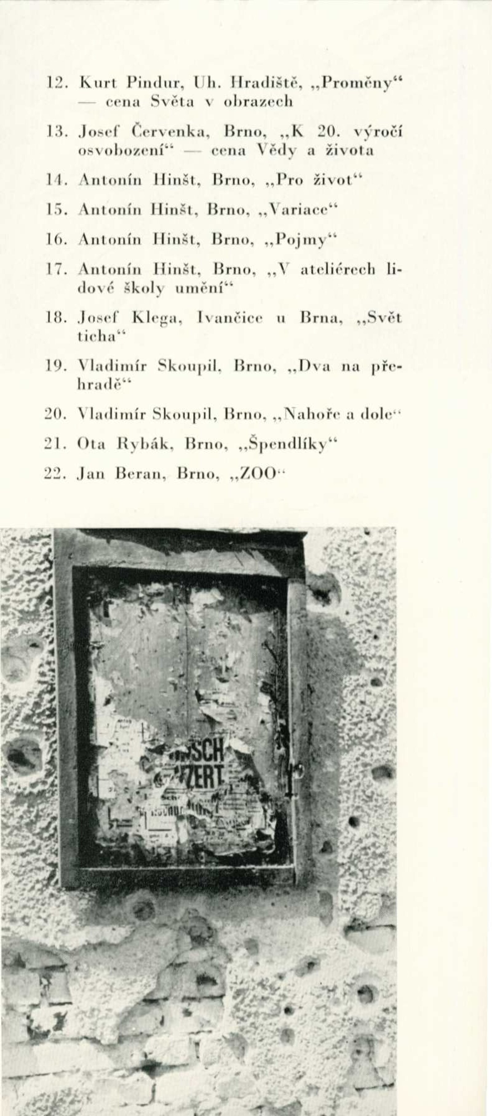 Fotografické seriály: Dům umění města Brna / Dům pánů z Kunštátu, 65. výstava Kabinet fotografie Jaromíra Funka, 7. 5. – 30. 5. 1965 / Brno: Krajská soutěžní komise STMP, 1965. – skládačka, 6 s., obr., DPK 270. – MZK; MG