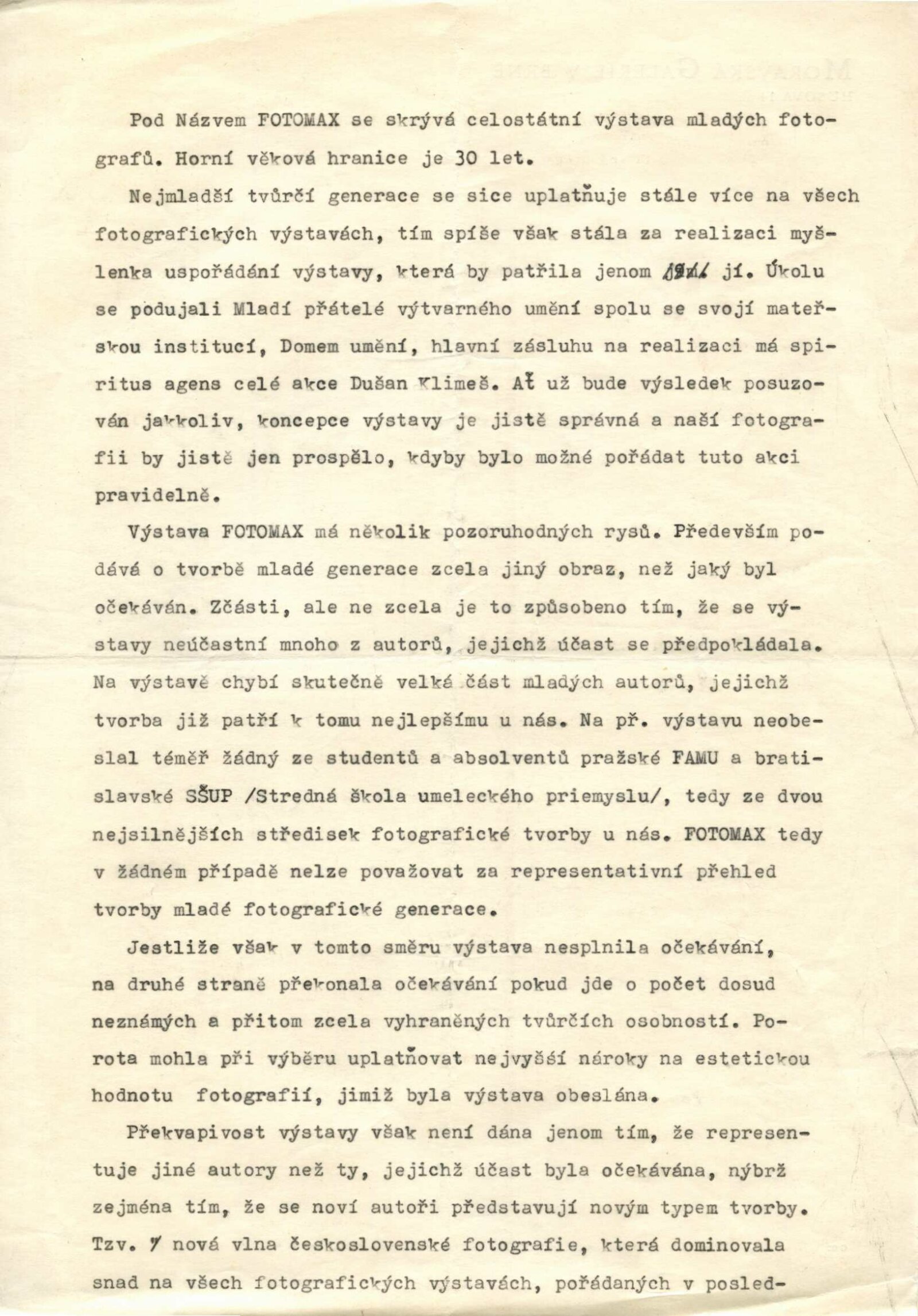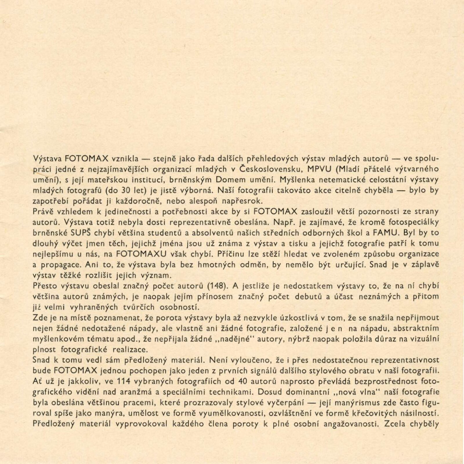FOTOMAX. Výstava mladých československých fotografů: Dům umění města Brna / Dům pánů z Kunštátu 6. 10. – 29. 10. 1972 / Text: Antonín Dufek. – Brno: DUmB, 1972. – 16 s., obr., DPK 514