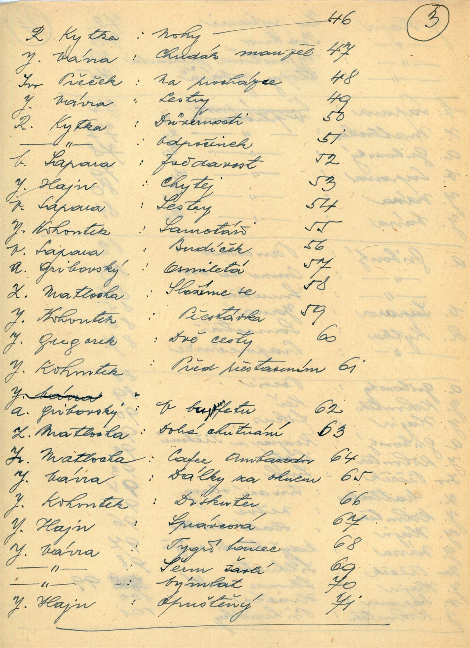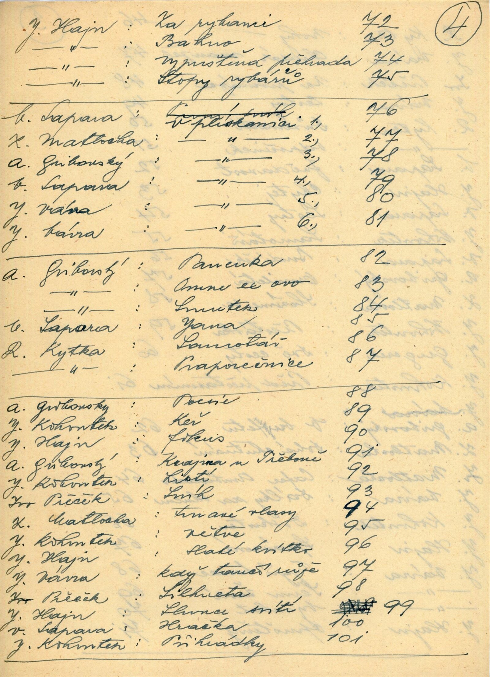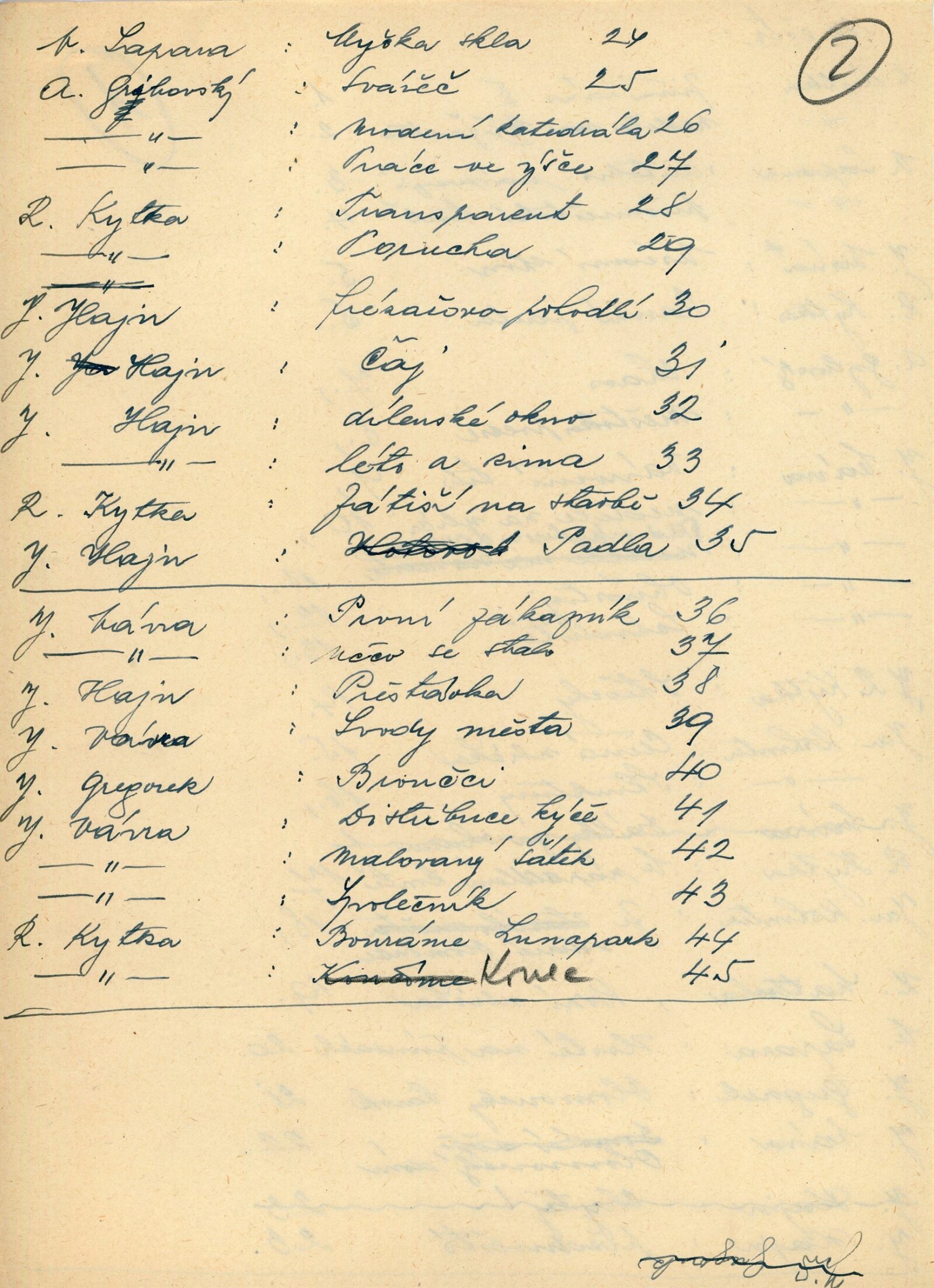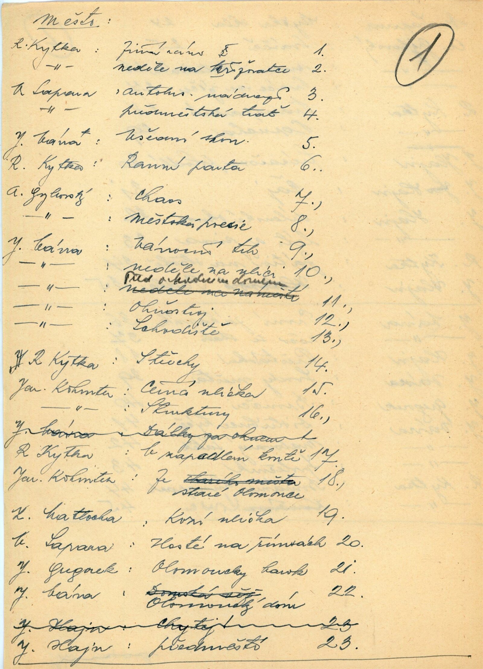 Jiří Gregorek, Antonín Gribovský, Jan Hajn, Jaromír Kohoutek, Rupert Kytka, Zdeněk Matlocha, Ivo Přeček, Vojtěch Sapara, Jaroslav Vávra
