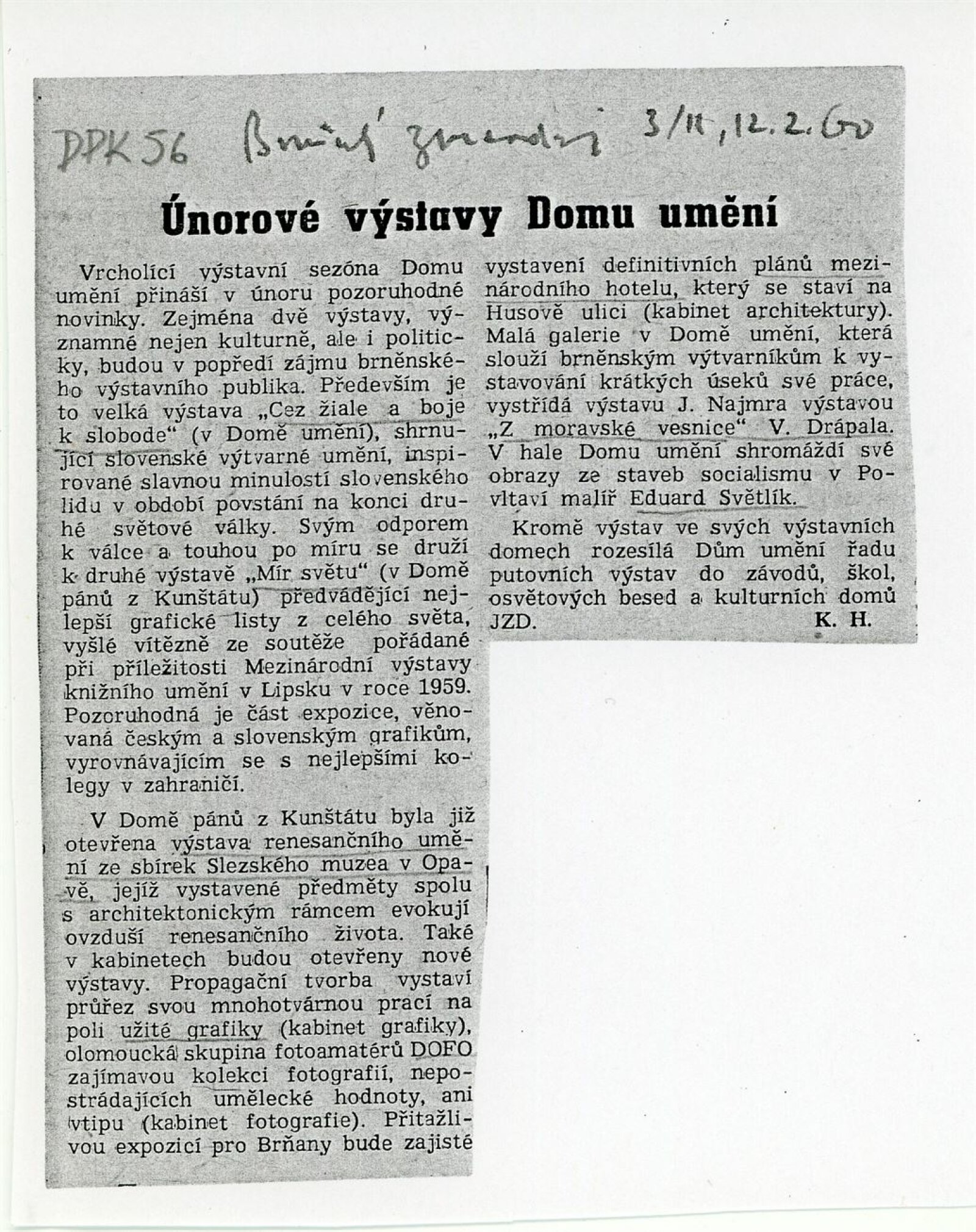 Fotoskupina DOFO Olomouc: Dům umění města Brna / Dům pánů z Kunštátu, 10. výstava Kabinetu fotografie Jaromíra Funka, 11. 2. – 6. 3. 1960 / Text: Karel O. Hrubý. – Brno: DUmB, 1960. – skládačka, 6 s., obr., DPK 56. – MG