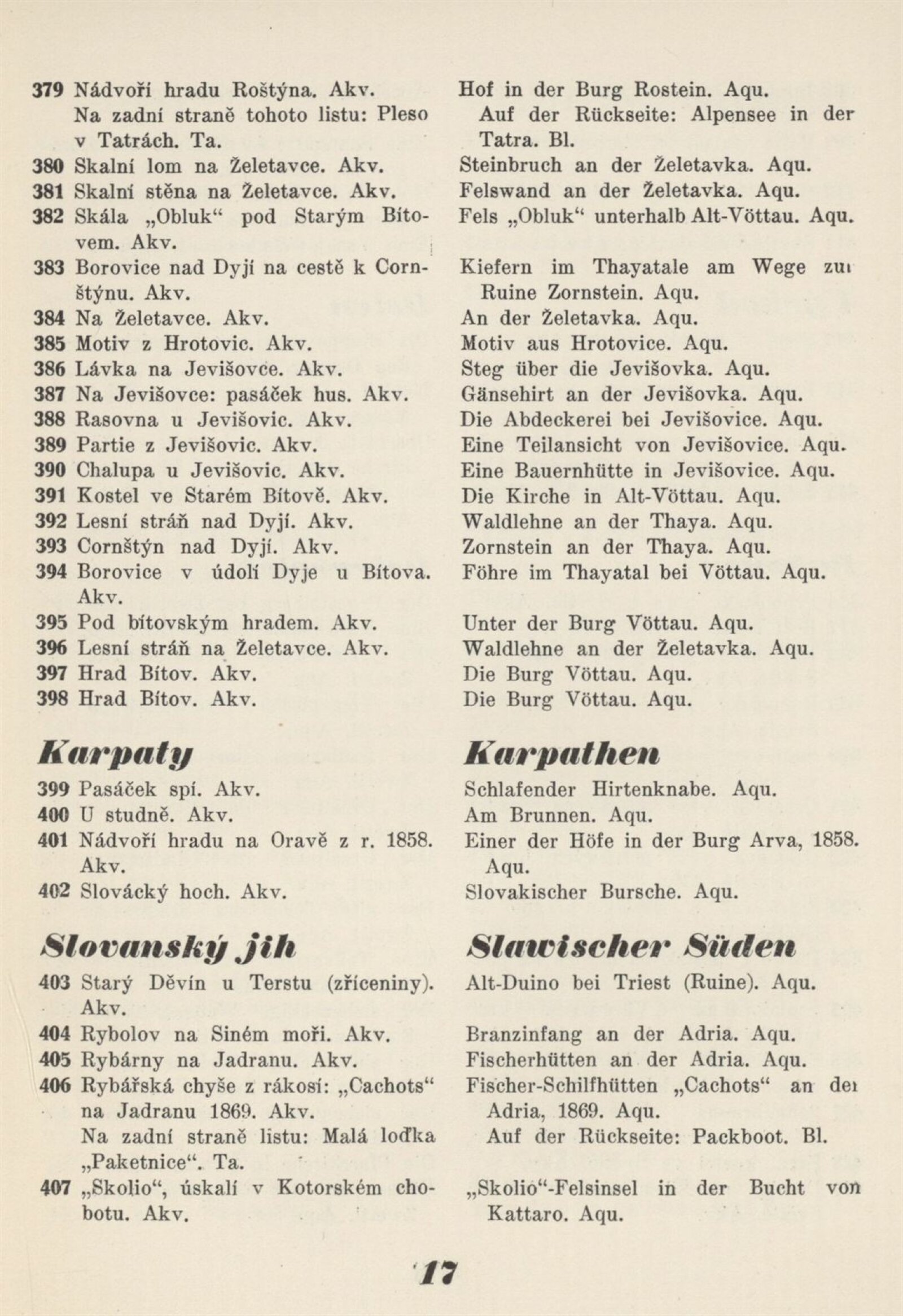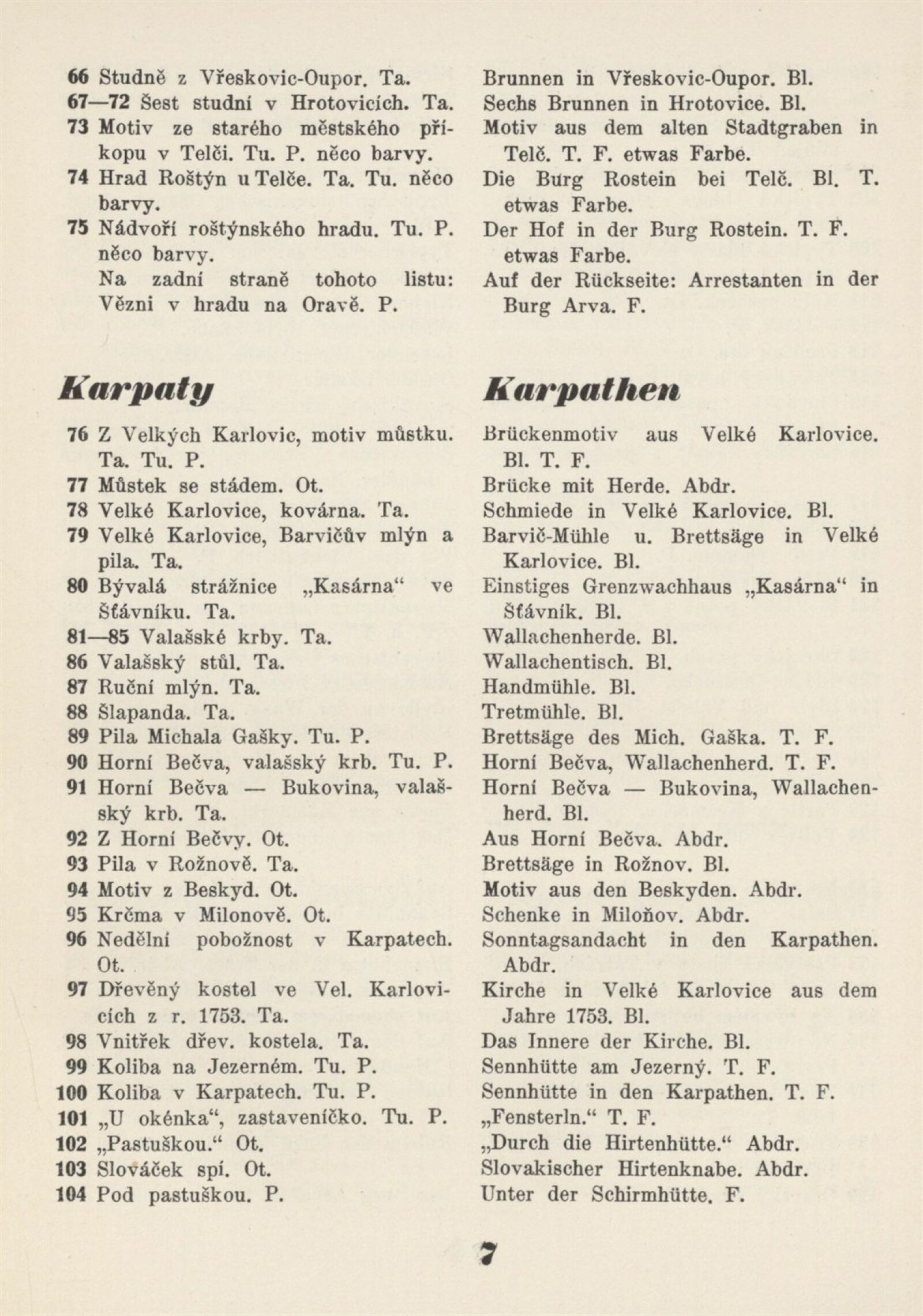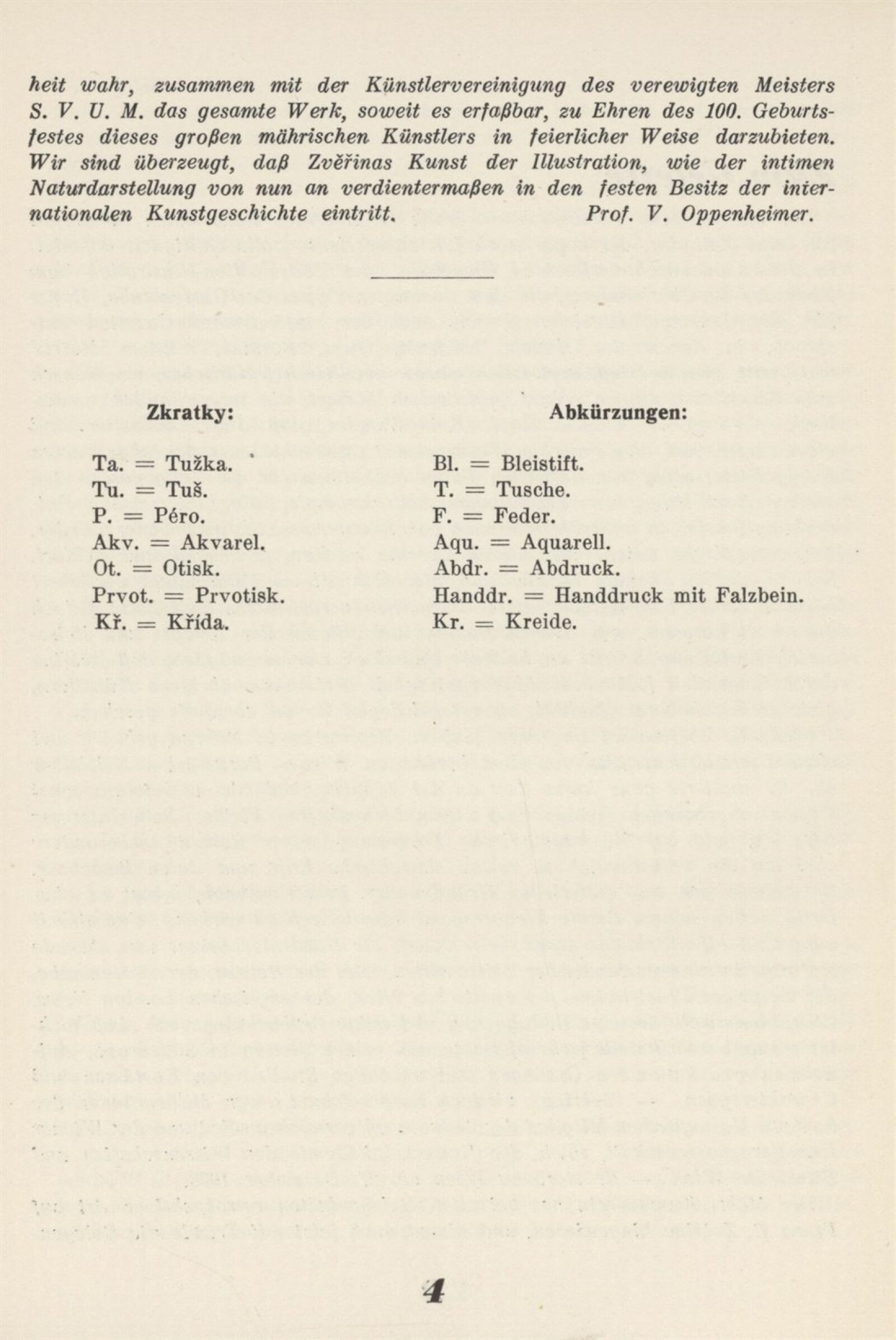 Souborná výstava Prof. Františka Boh. Zvěřiny: Künstlerhaus 31. 3. – 28. 4. 1935 / Texty: rys a V. Oppenheimer. – Brno: Mährischer Kunstverein, – 19 s. + ceník 4 s. Souběžný text německy Gedächtnisausstellung Prof. Franz B. Zvěřina 1835–1908: Brünn 31. 3. – 28. 4. 1935 / Brünn: Mährischer Kunstverein, 1935. – 14 l. – Kubíček 8021; MZK; MG