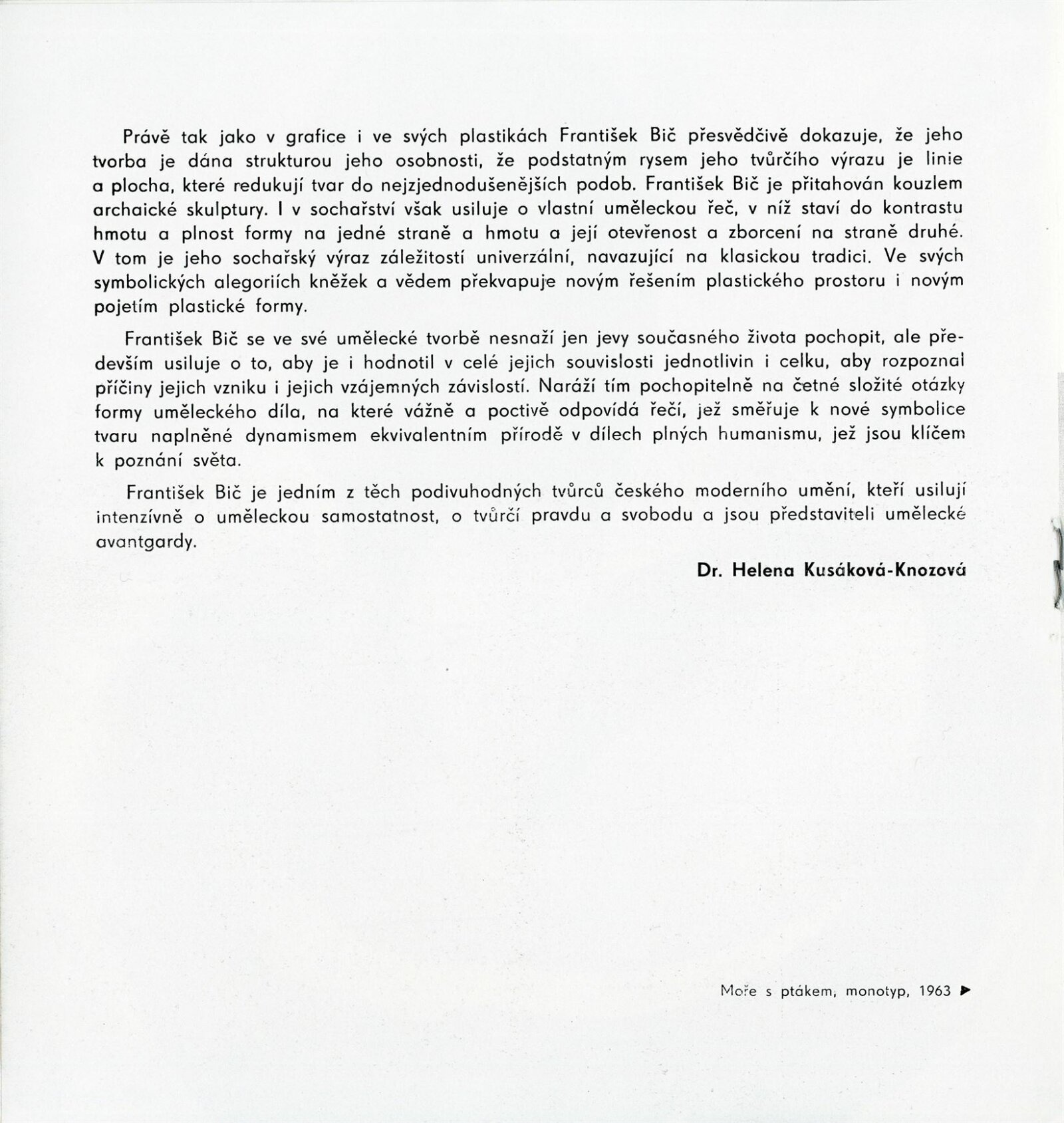 František Bič. 1960–1970: Dům umění města Brna, 1. 3. – 4. 4. 1970 / Text: Helena Kusáková-Knozová. – Brno: SČVU, 1970. – 16 s., obr., životopis, DU 543a. – MZK; MG; MMB