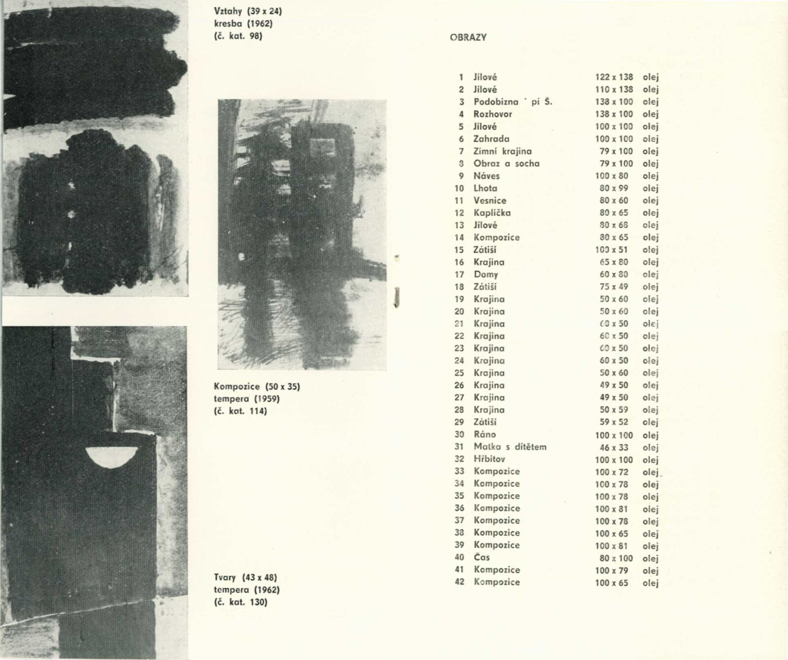 katalog se seznamem děl, recenze v tisku